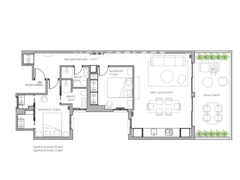 , 2 rooms and 2 bathrooms, Lift, Furnished and Air conditioning.