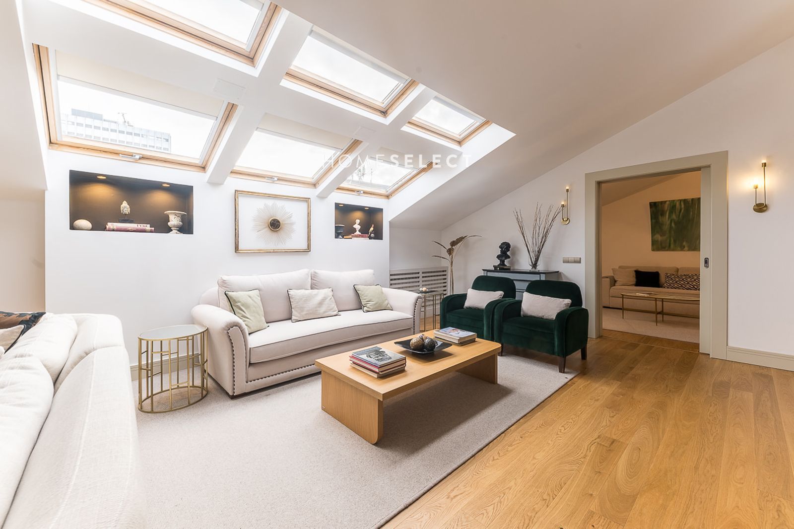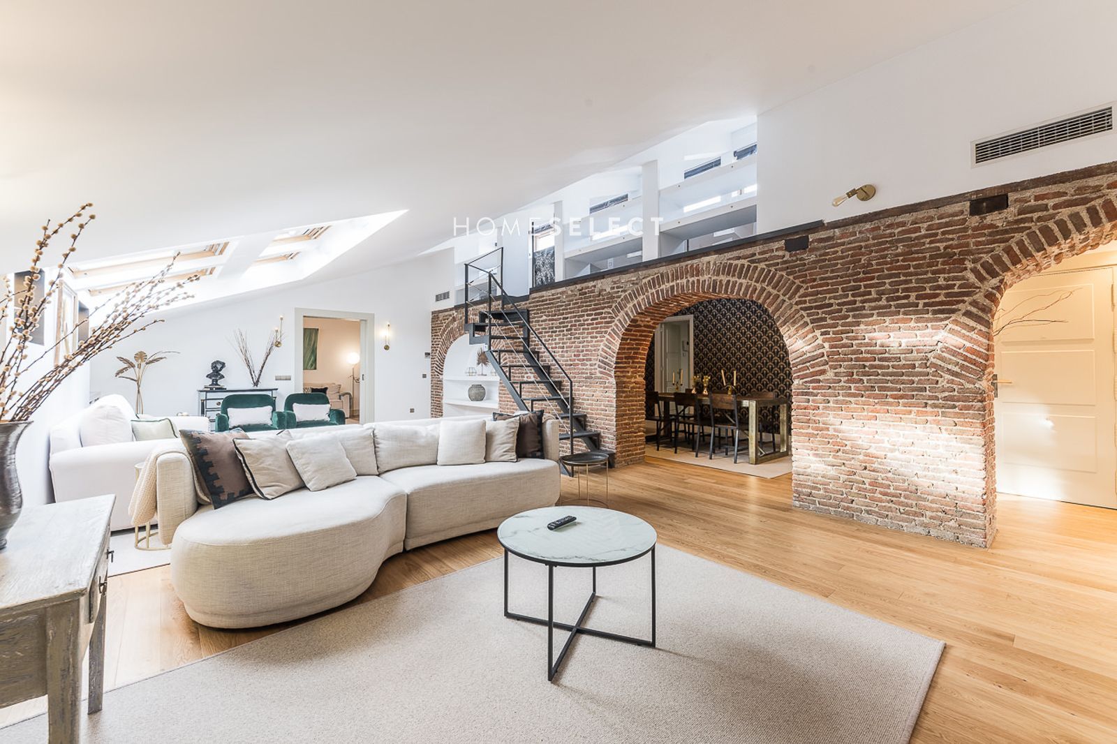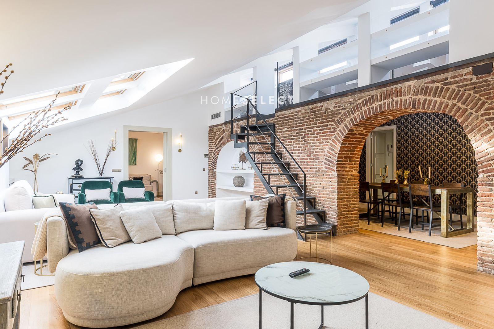 El piso es amueblado, tiene 180m2, es muy especial, ya que aunque sea abuhardillado, tiene techos muy altos. Tieneun un gran salón con diferentes ambientes, despacho y comedor cerca de la cocina equipada con los principales electrodomésticos con zona de lavado y almacenaje. La zona de noche esta compuesta por tres dormitorios (el principal con zona de vestidor) y 3 baños (2 de ellos en suite).