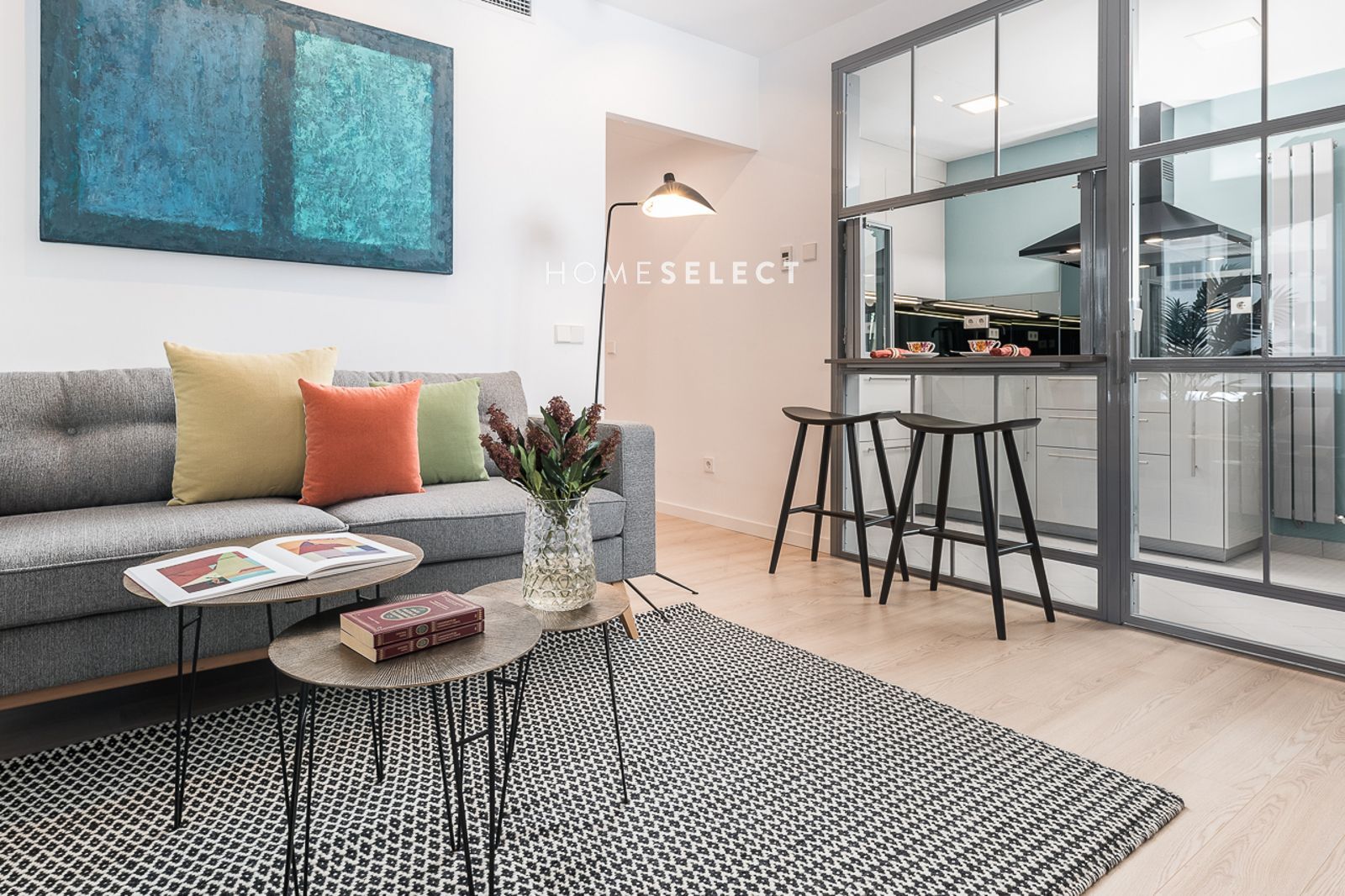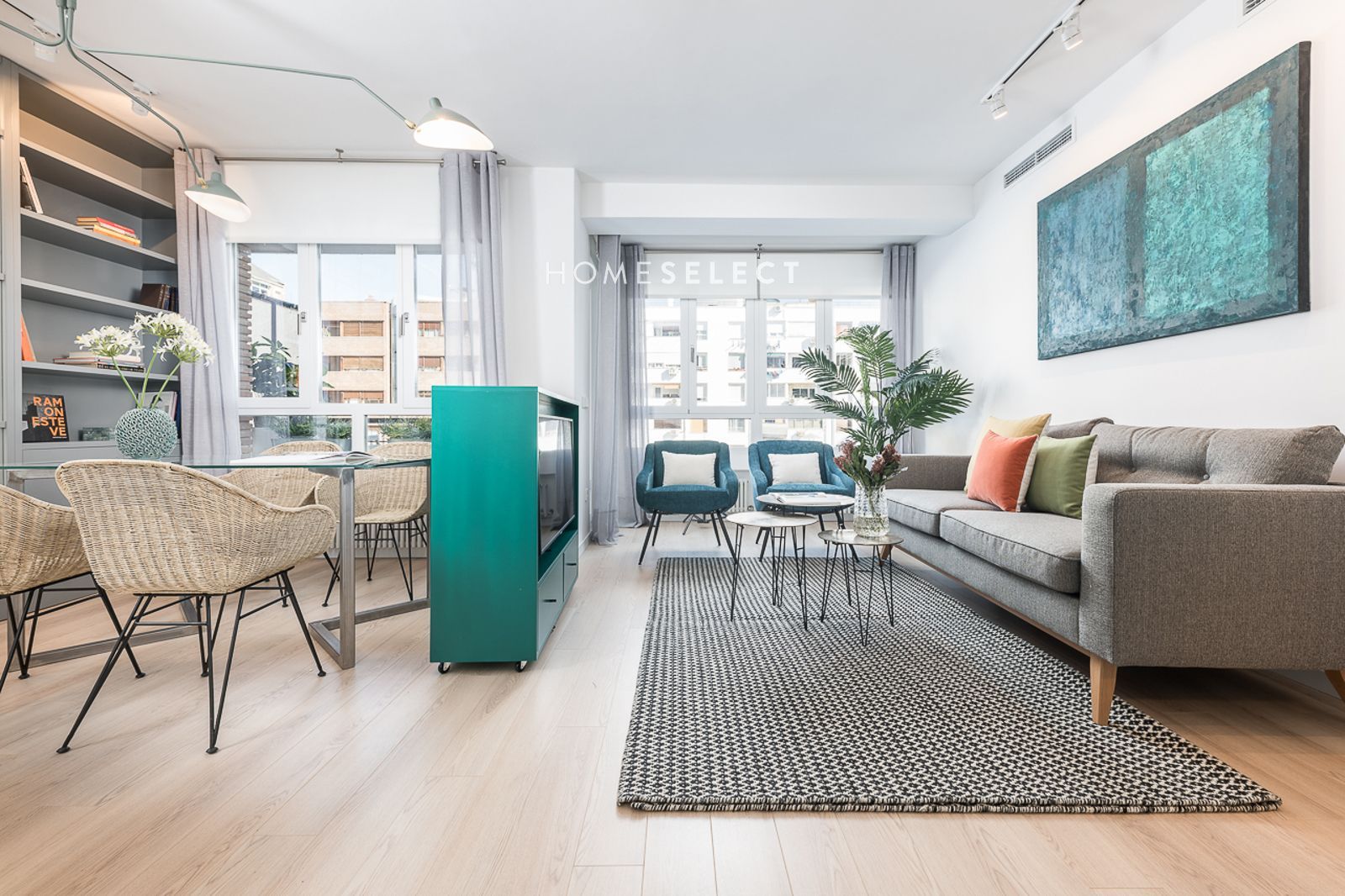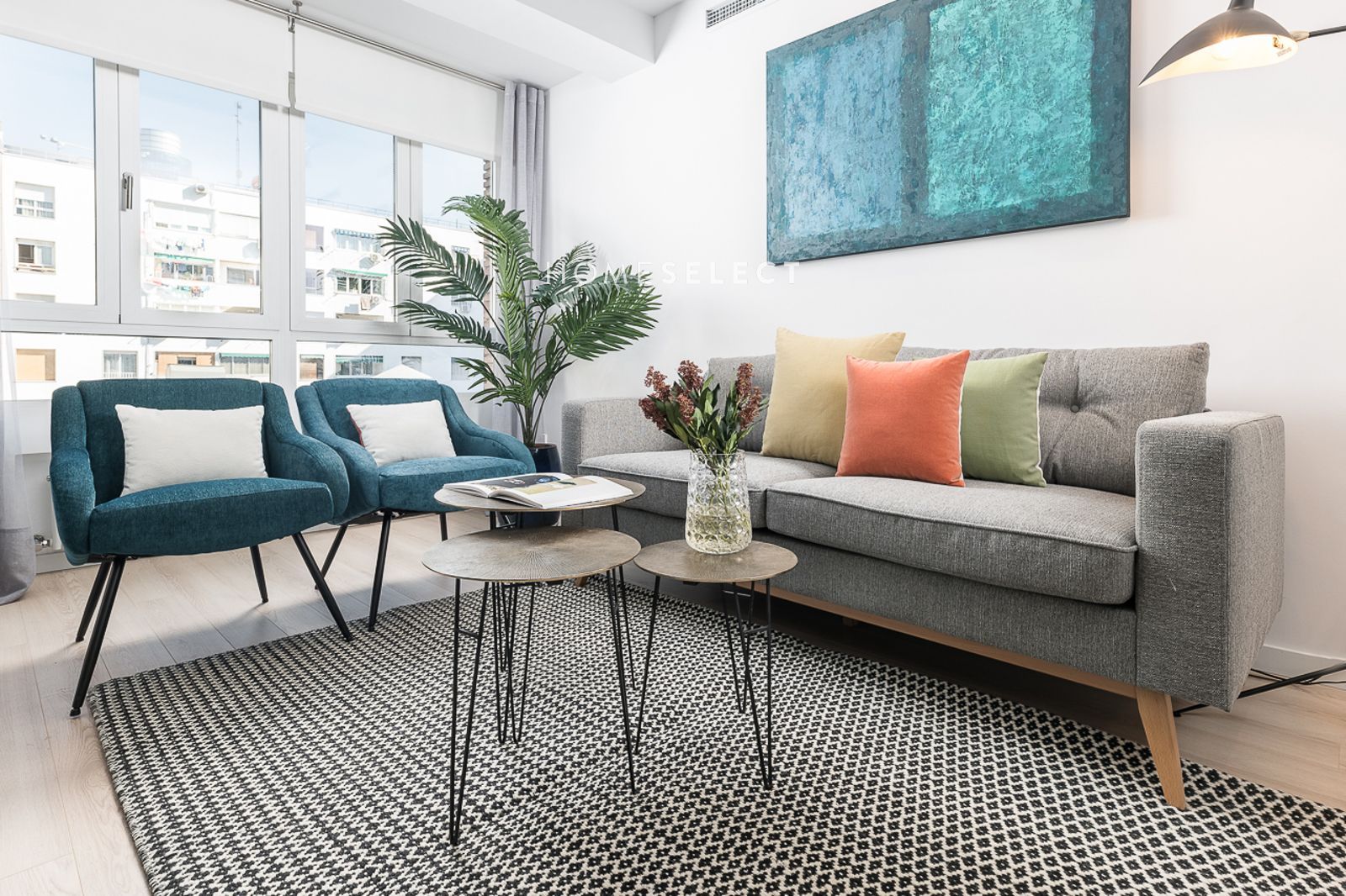 Home Select alquila elegante piso situado muy próximo al distrito financiero de Azca, cercano a la estación de Nuevos Ministerios, por lo que goza de una excelente comunicación con otras partes de la ciudad. En sus alrededores, hay una gran variedad de restaurantes, cafeterías e innumerables tiendas, especialmente en el Paseo de la Castellana que se encuentra a tan sólo unos minutos del apartamento. También del Santiago Bernabéu, casa del club deportivo del Real Madrid. Con todo, una ubicación inmejorable sobre todo para aquellos que viajen a Madrid por negocios o busquen hospedarse en una zona céntrica con todas las comodidades.
