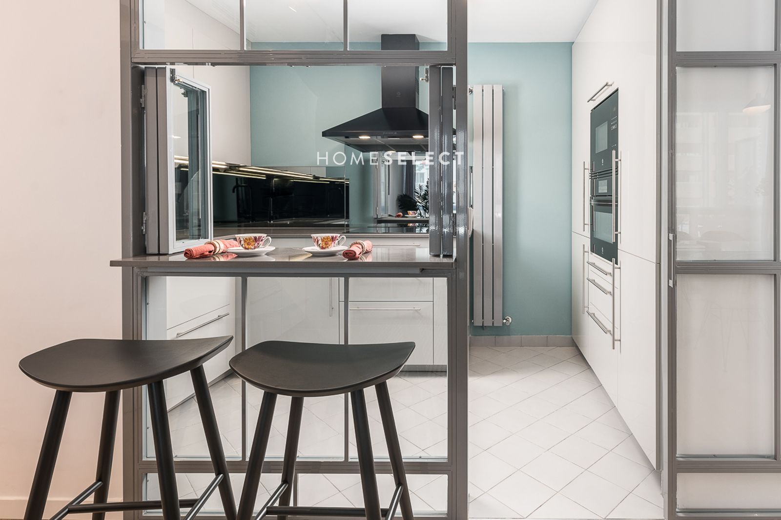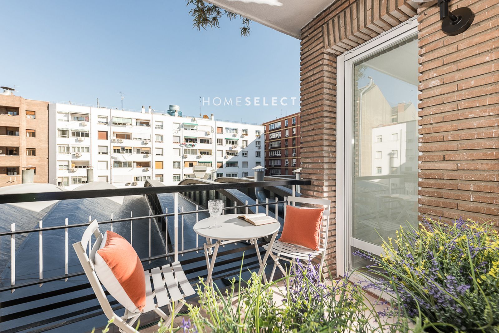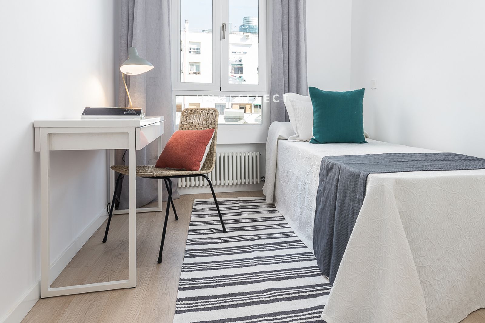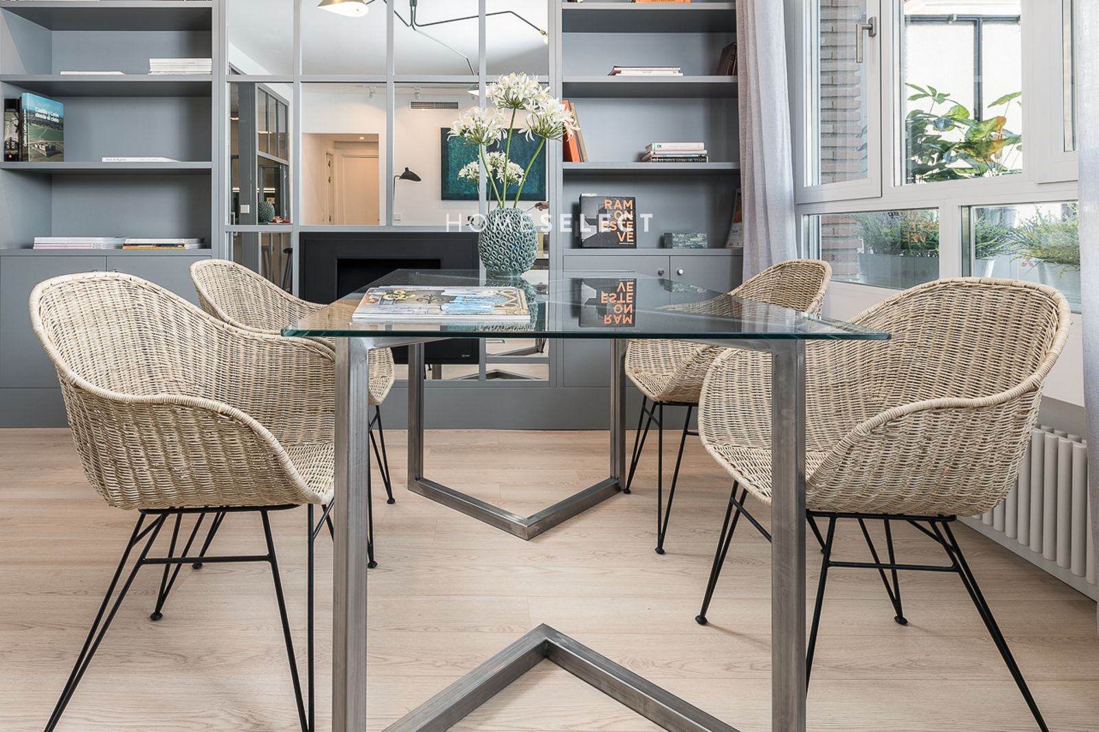 Home Select alquila elegante piso situado muy próximo al distrito financiero de Azca, cercano a la estación de Nuevos Ministerios, por lo que goza de una excelente comunicación con otras partes de la ciudad. En sus alrededores, hay una gran variedad de restaurantes, cafeterías e innumerables tiendas, especialmente en el Paseo de la Castellana que se encuentra a tan sólo unos minutos del apartamento. También del Santiago Bernabéu, casa del club deportivo del Real Madrid. Con todo, una ubicación inmejorable sobre todo para aquellos que viajen a Madrid por negocios o busquen hospedarse en una zona céntrica con todas las comodidades.
