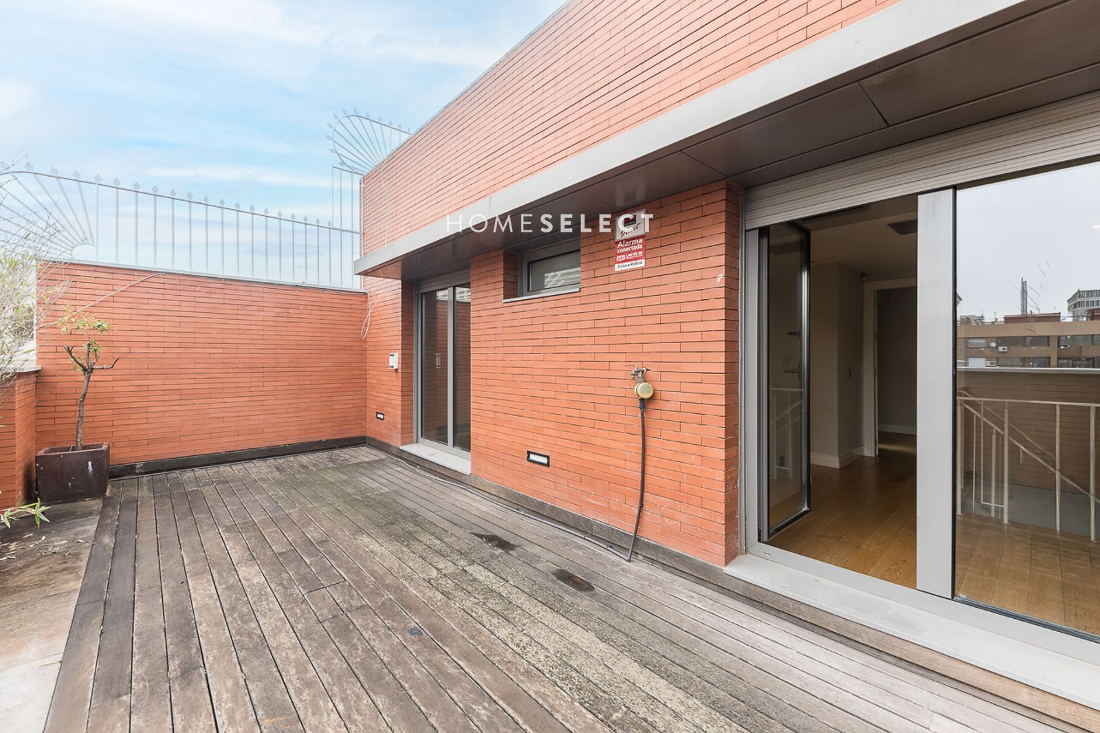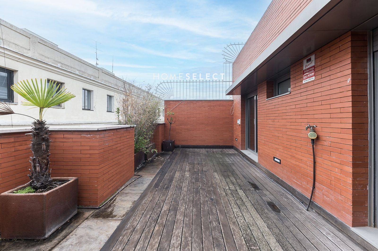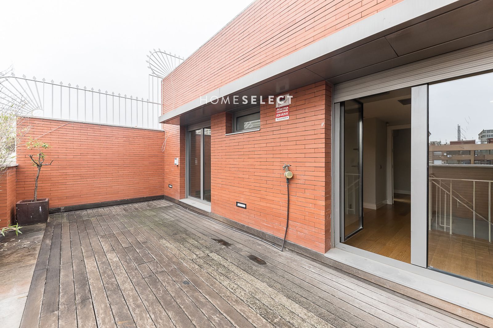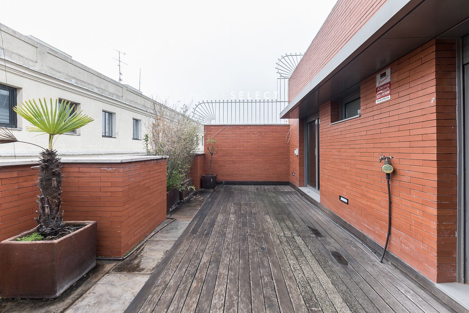 Se trata de un ático dúplex sin amueblar, con 144m2 construidos (120m2 de vivienda), distribuidos en dos plantas, en la principal encontramos el salón comedor, cocina independiente equipada con los principales electrodomésticos y el dormitorio principal con baño en suite y vestidor. En el piso de arriba, hay un vestíbulo que da acceso a una fabulosa terraza y a 2 dormitorios que comparten un baño, desde uno de esos dormitorios se accede a una segunda terraza. Adicionalmente hay dos plazas de garaje opcionales en la misma finca. La vivienda cuenta también con un armario guarda maletas y con conserje en horario comercial.