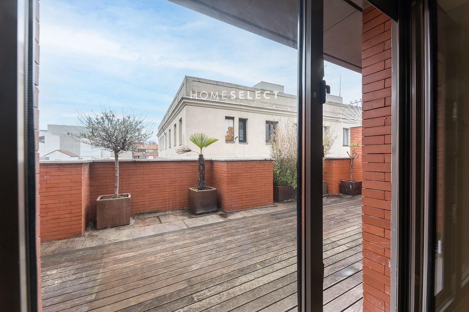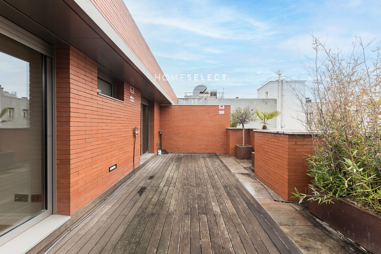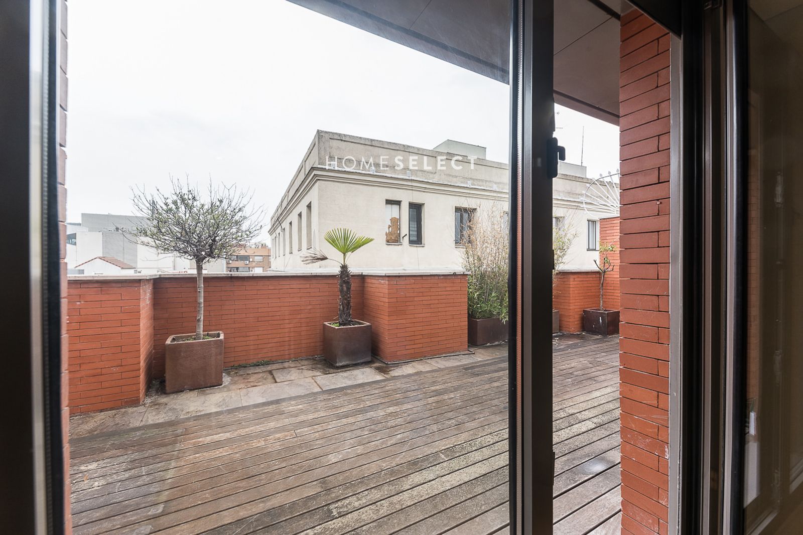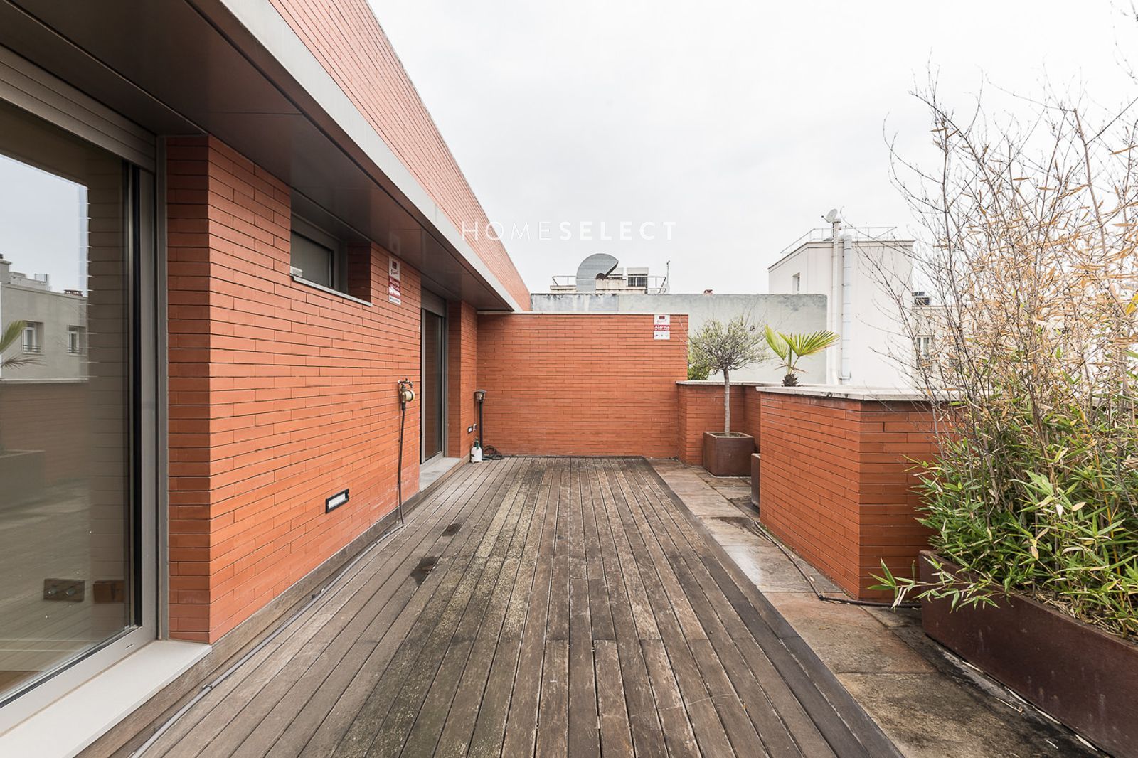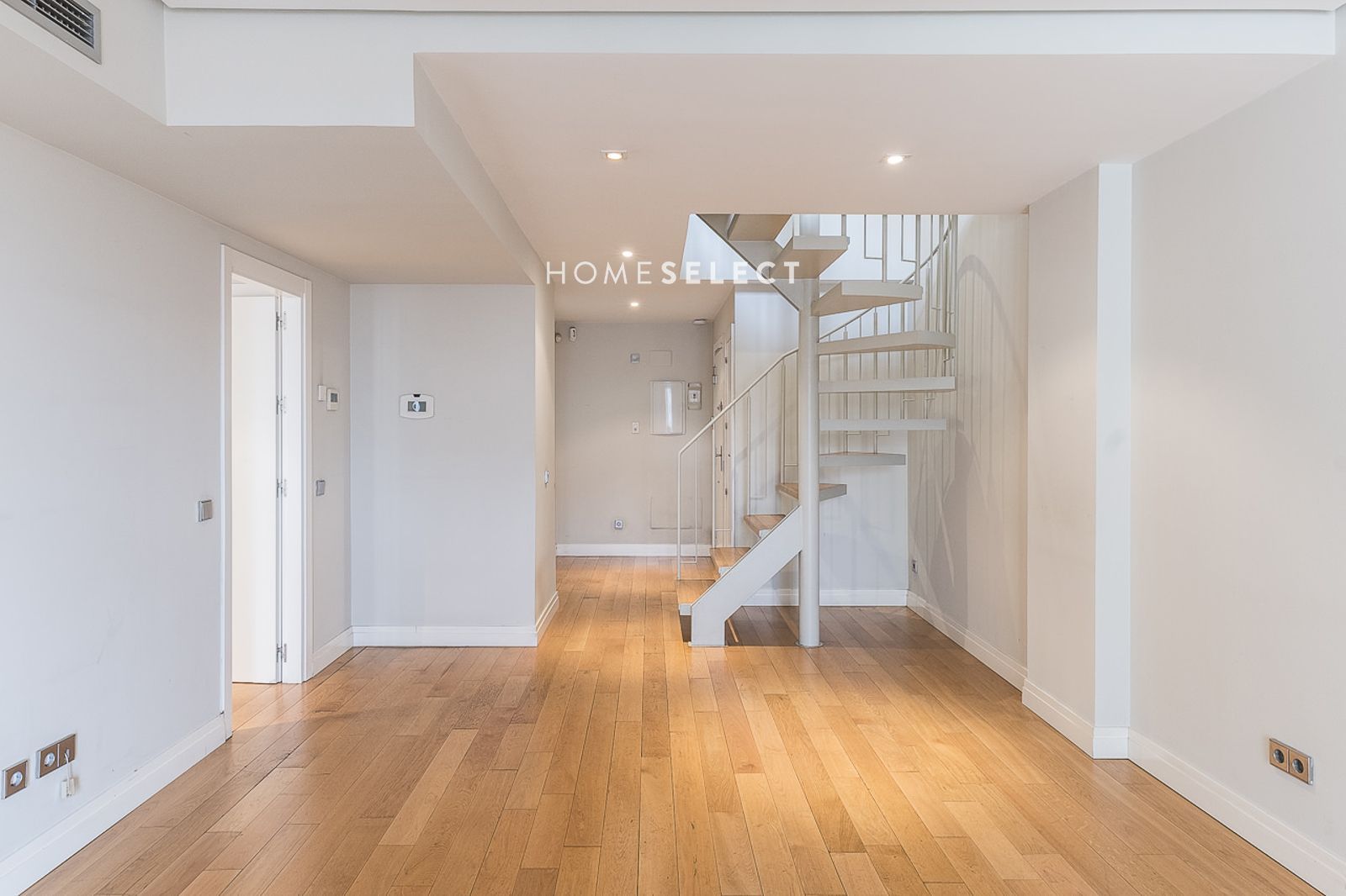 Se trata de un ático dúplex sin amueblar, con 144m2 construidos (120m2 de vivienda), distribuidos en dos plantas, en la principal encontramos el salón comedor, cocina independiente equipada con los principales electrodomésticos y el dormitorio principal con baño en suite y vestidor. En el piso de arriba, hay un vestíbulo que da acceso a una fabulosa terraza y a 2 dormitorios que comparten un baño, desde uno de esos dormitorios se accede a una segunda terraza. Adicionalmente hay dos plazas de garaje opcionales en la misma finca. La vivienda cuenta también con un armario guarda maletas y con conserje en horario comercial.