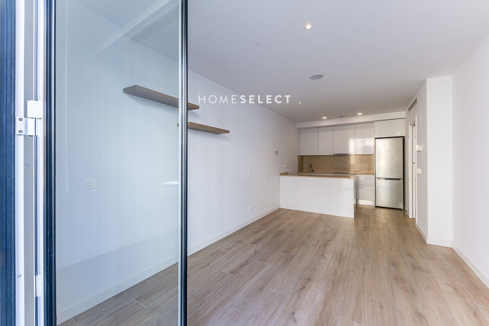 Descripción,Se trata de un apartamento exterior en edificio de reciente construcción, tiene 60m2 construidos de los cuales 45m2 son de vivienda y están distribuidos en un salón comedor con salida a un balcón, cocina de planta abierta al salón equipada con los principales electrodomésticos, 1 dormitorio y 1 baño. En la azotea se encuentra un solarium y la piscina. La oferta incluye plaza de garaje y trastero en el mismo edificio.
