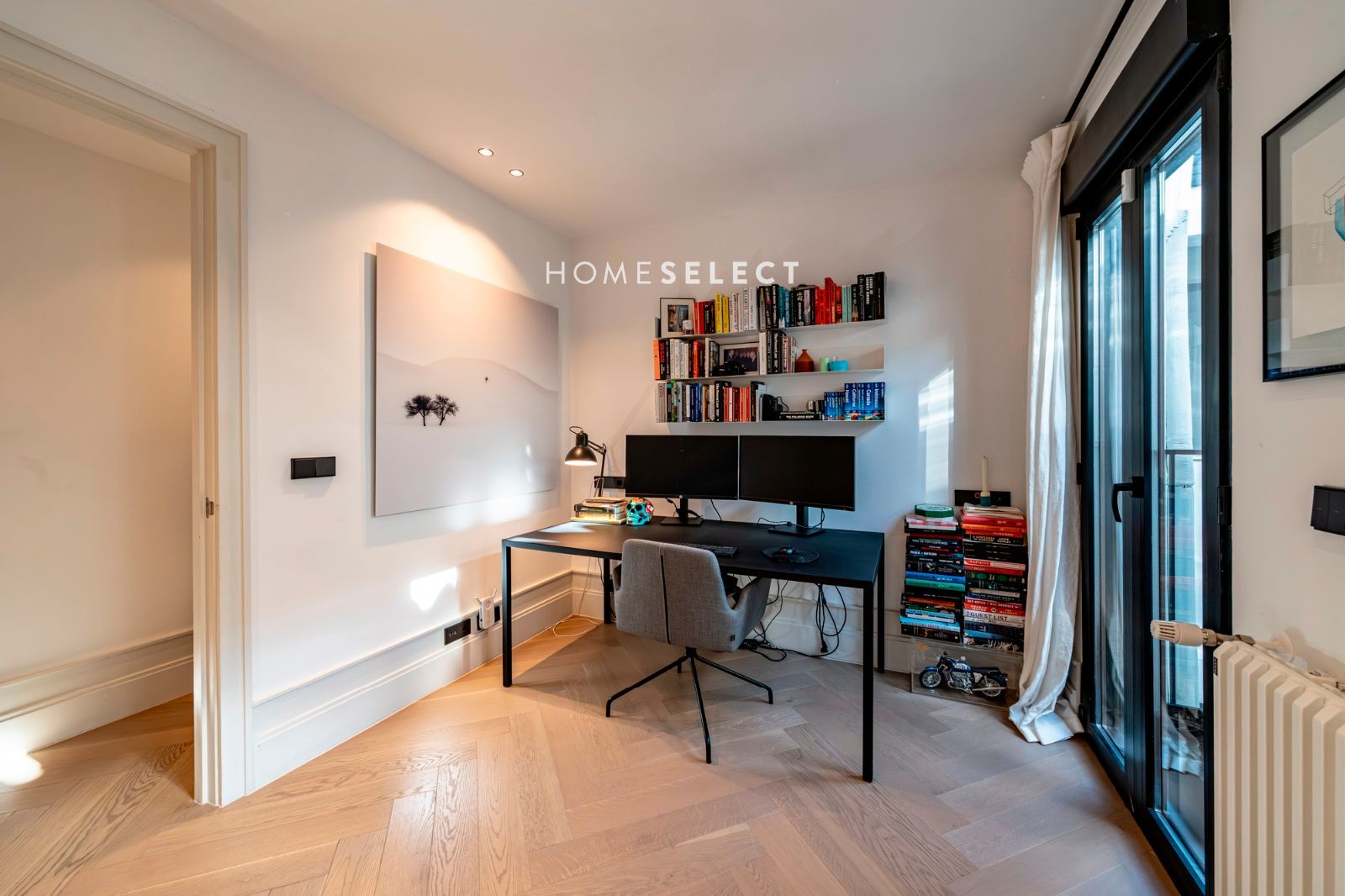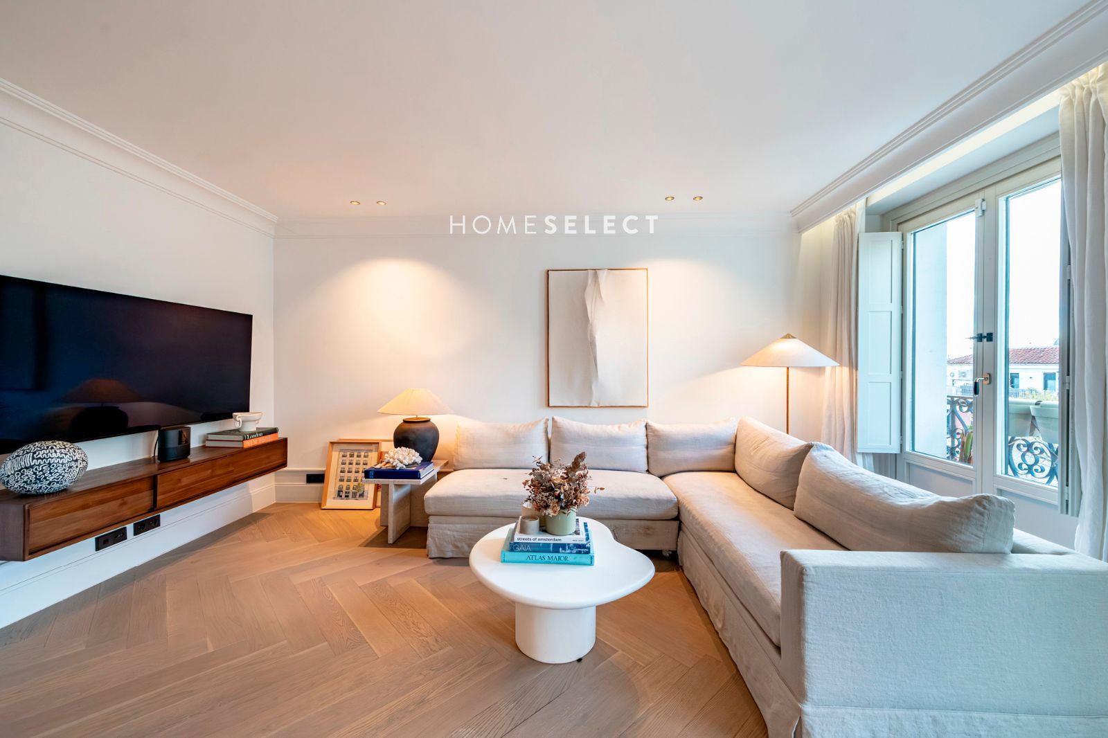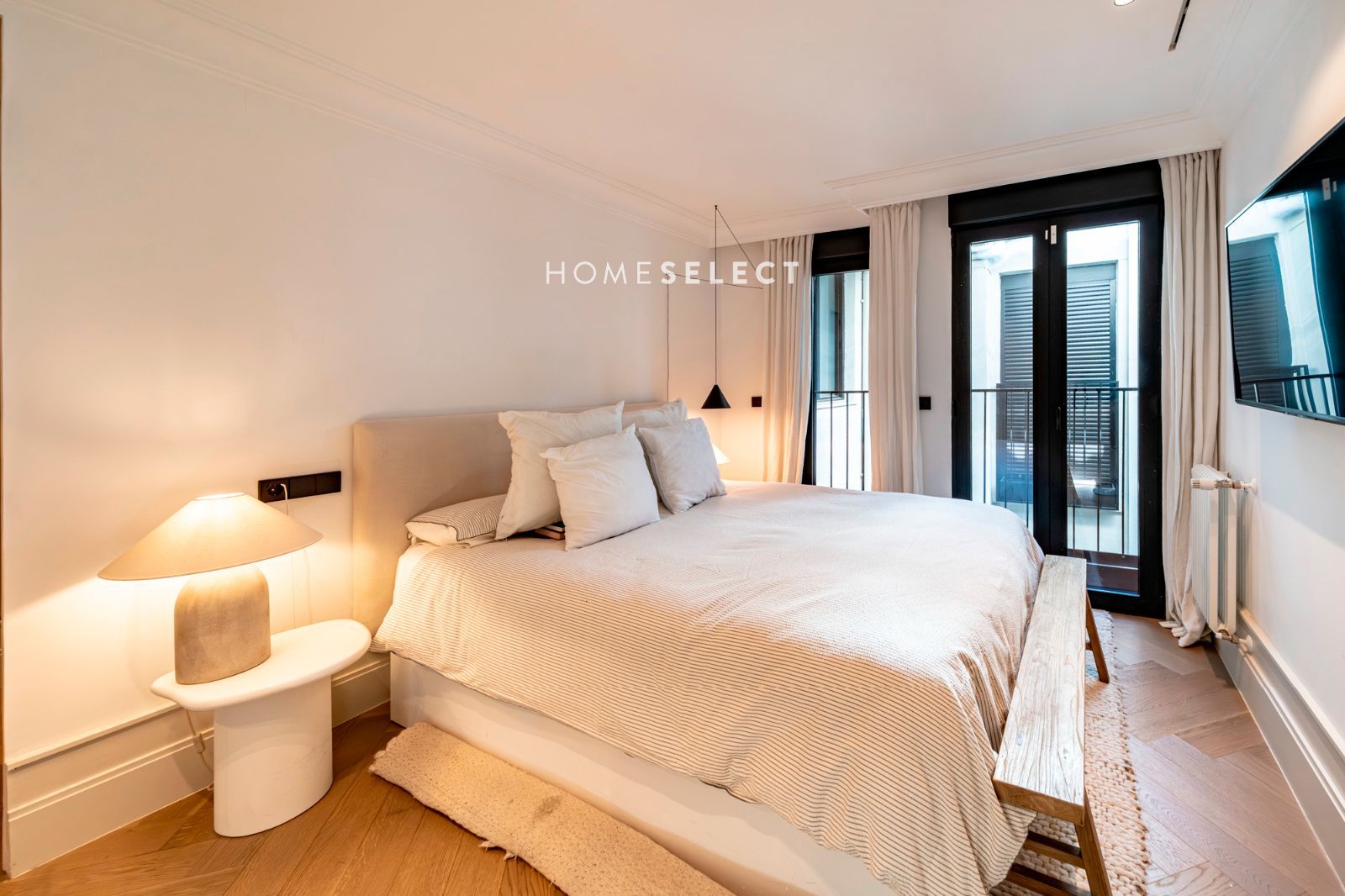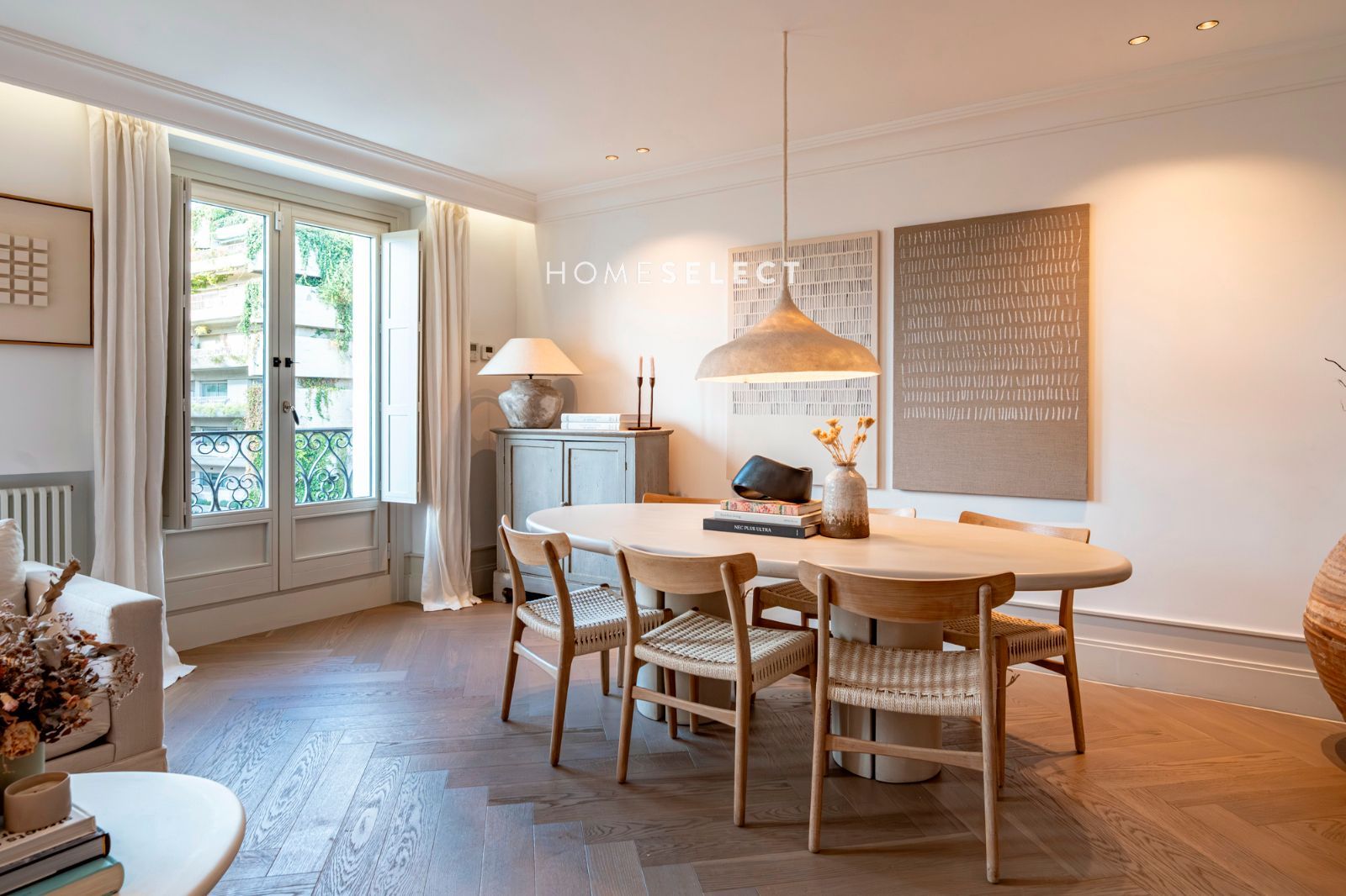 Home Select vende bonito piso de 127 m2 en un edificio clásico de 1900 en Malasaña, uno de los barrio más castizos y con mayor encanto de Madrid. El edificio de 1900, rehabilitado parcialmente en 2022, está bien conservado y tiene la ITE favorable. Se trata de una quinta planta, con ascensor, muy luminosa al contar con orientación sur en dormitorios y dos preciosos balcones en el salón con orientación oeste que garantizan la luz natural todo el día.
