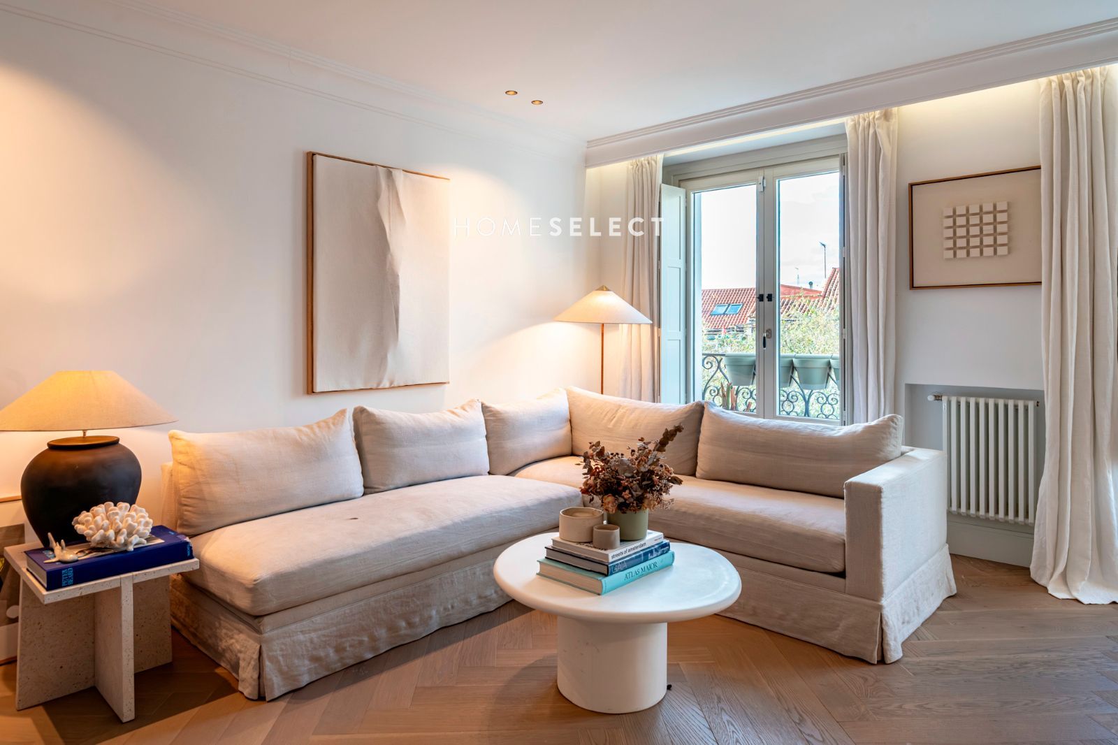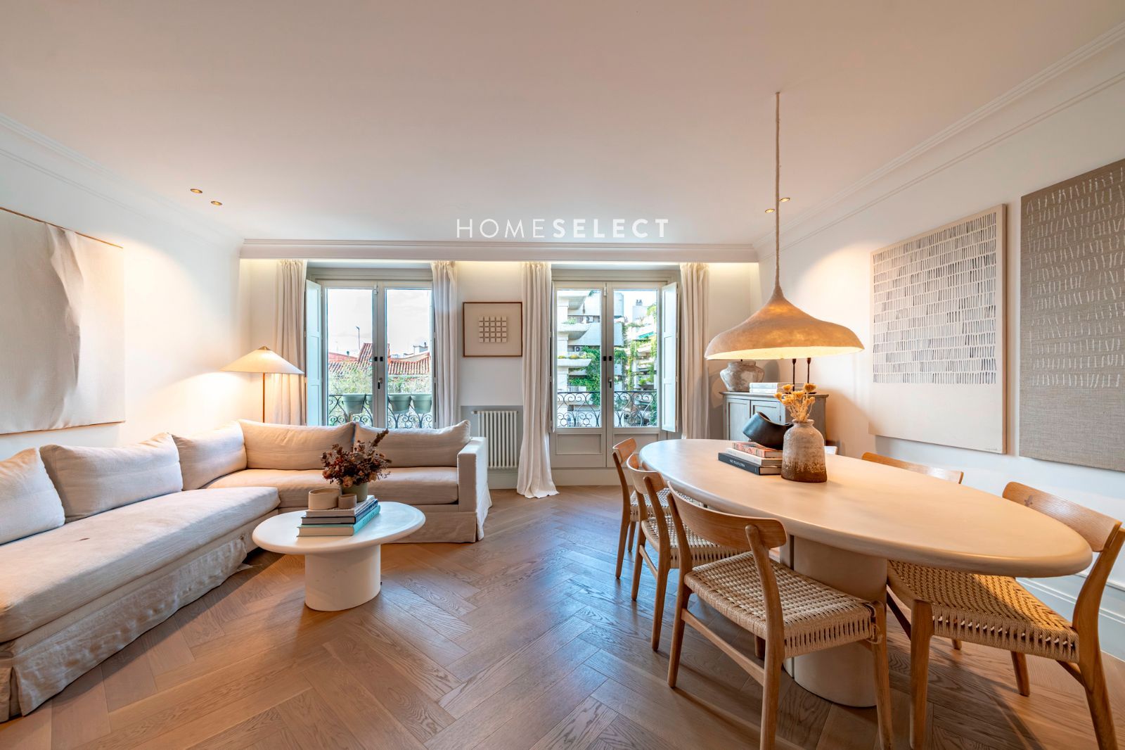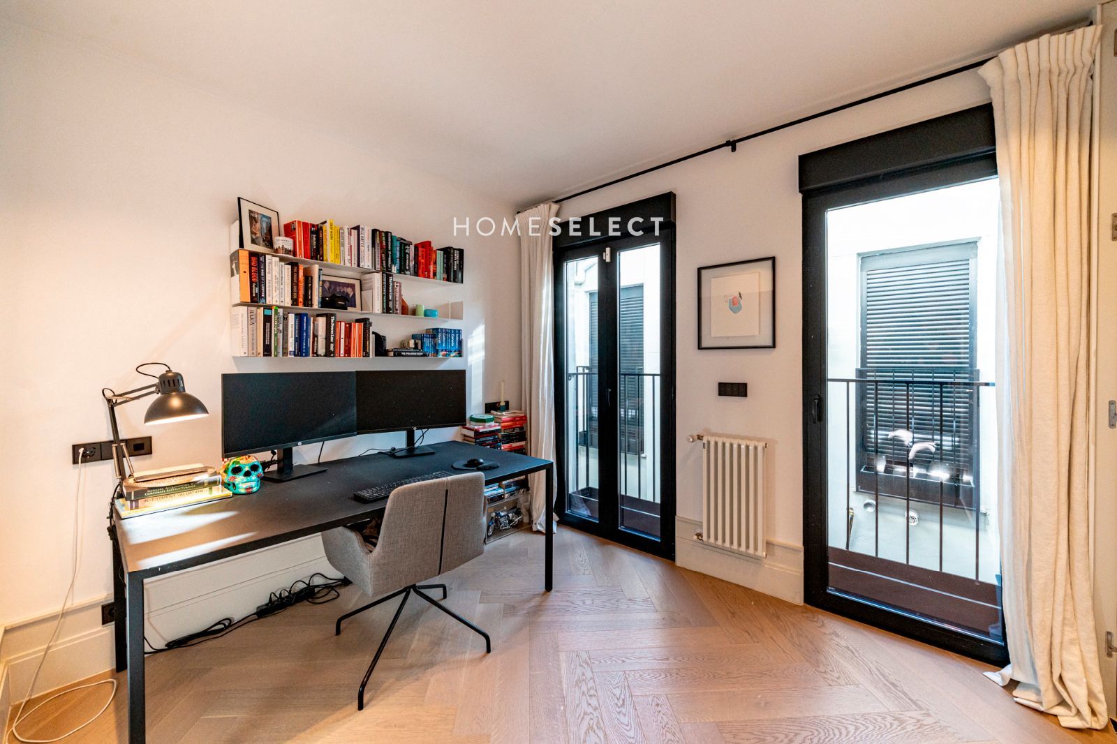 Home Select vende bonito piso de 127 m2 en un edificio clásico de 1900 en Malasaña, uno de los barrio más castizos y con mayor encanto de Madrid. El edificio de 1900, rehabilitado parcialmente en 2022, está bien conservado y tiene la ITE favorable. Se trata de una quinta planta, con ascensor, muy luminosa al contar con orientación sur en dormitorios y dos preciosos balcones en el salón con orientación oeste que garantizan la luz natural todo el día.