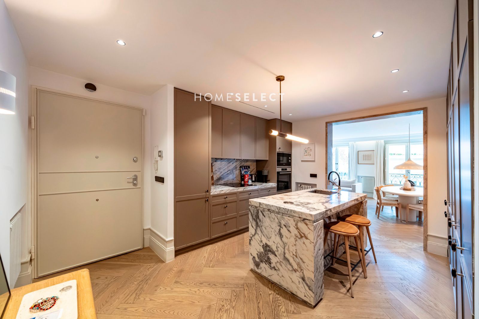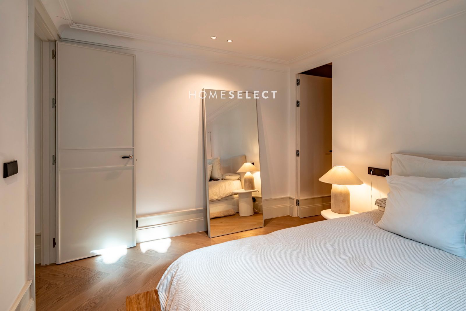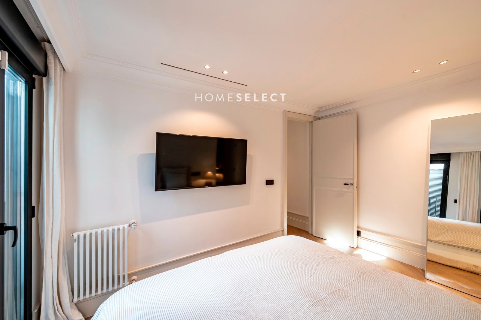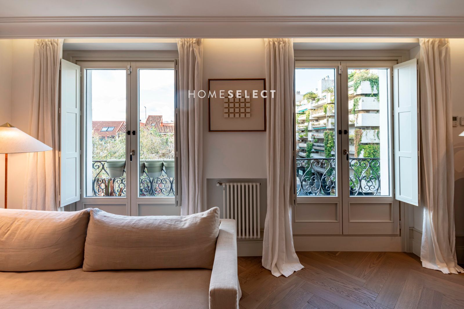 Home Select vende bonito piso de 127 m2 en un edificio clásico de 1900 en Malasaña, uno de los barrio más castizos y con mayor encanto de Madrid. El edificio de 1900, rehabilitado parcialmente en 2022, está bien conservado y tiene la ITE favorable. Se trata de una quinta planta, con ascensor, muy luminosa al contar con orientación sur en dormitorios y dos preciosos balcones en el salón con orientación oeste que garantizan la luz natural todo el día.