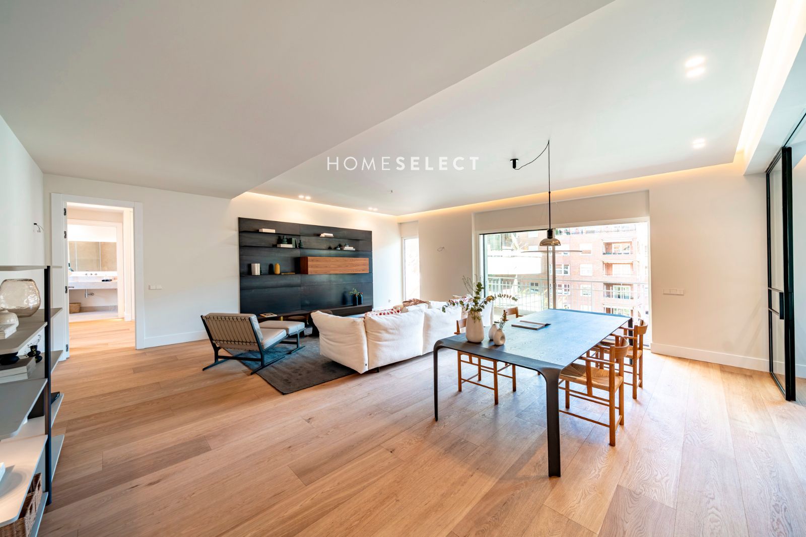 Home Select vende vivienda situada en el corazón de Chamberí, en el prestigioso barrio de Almagro. Ubicada en una cuarta planta exterior, esta propiedad de 242 m² ha sido completamente reformada y amueblada a estrenar, combinando elegancia, confort y un diseño contemporáneo.