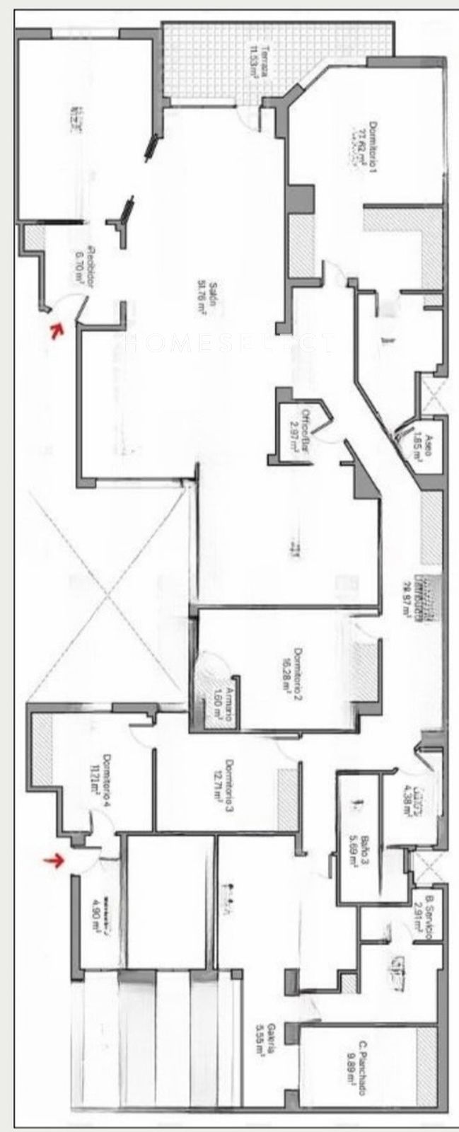 La zona de descanso se compone actualmente de 5 habitaciones y 5 baños completos. Al tratarse de una planta de 391 m² para actualizar integralmente, el inmueble ofrece múltiples posibilidades de redistribución para optimizar los dormitorios y las áreas de servicio según las necesidades del comprador.