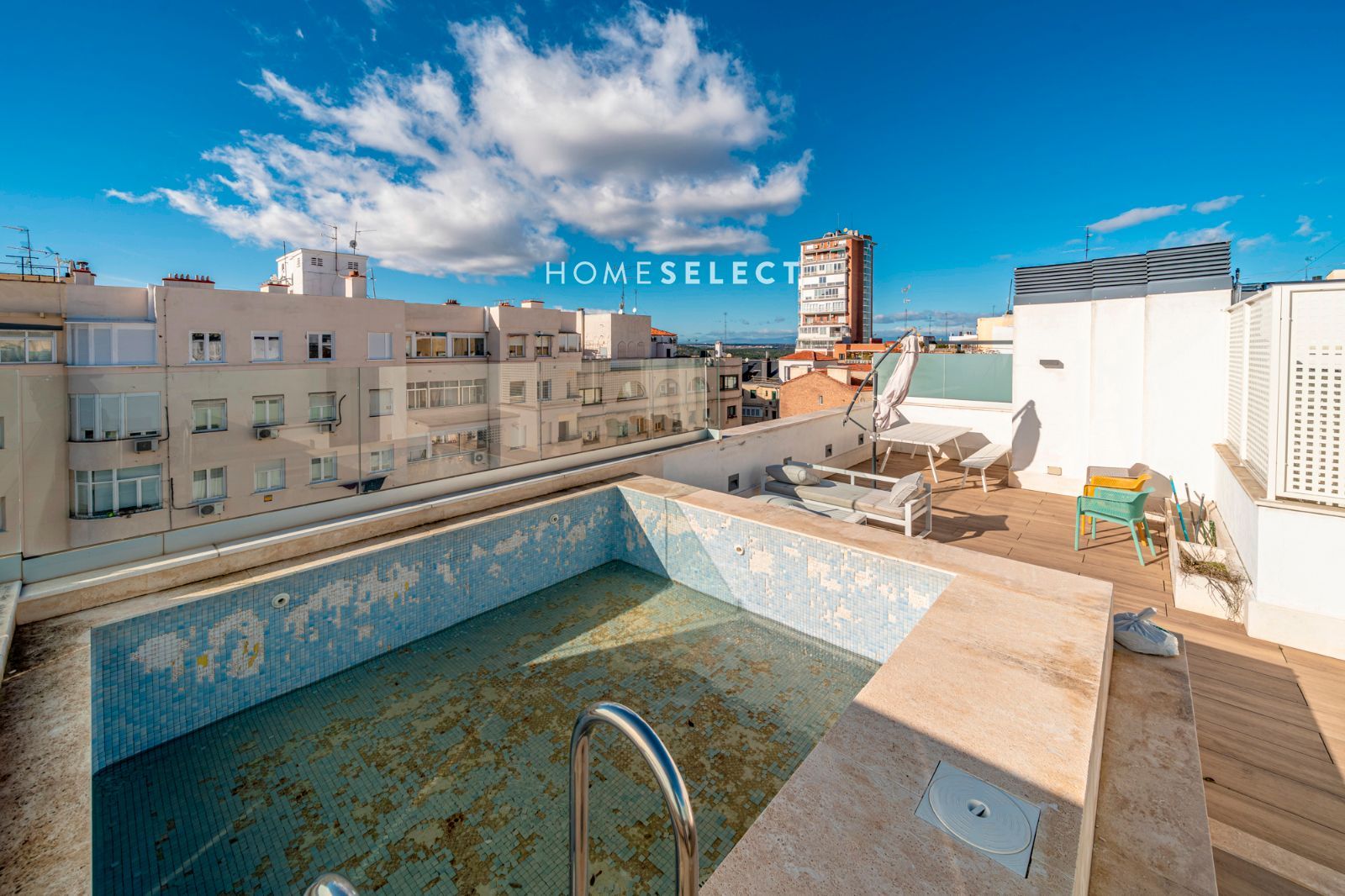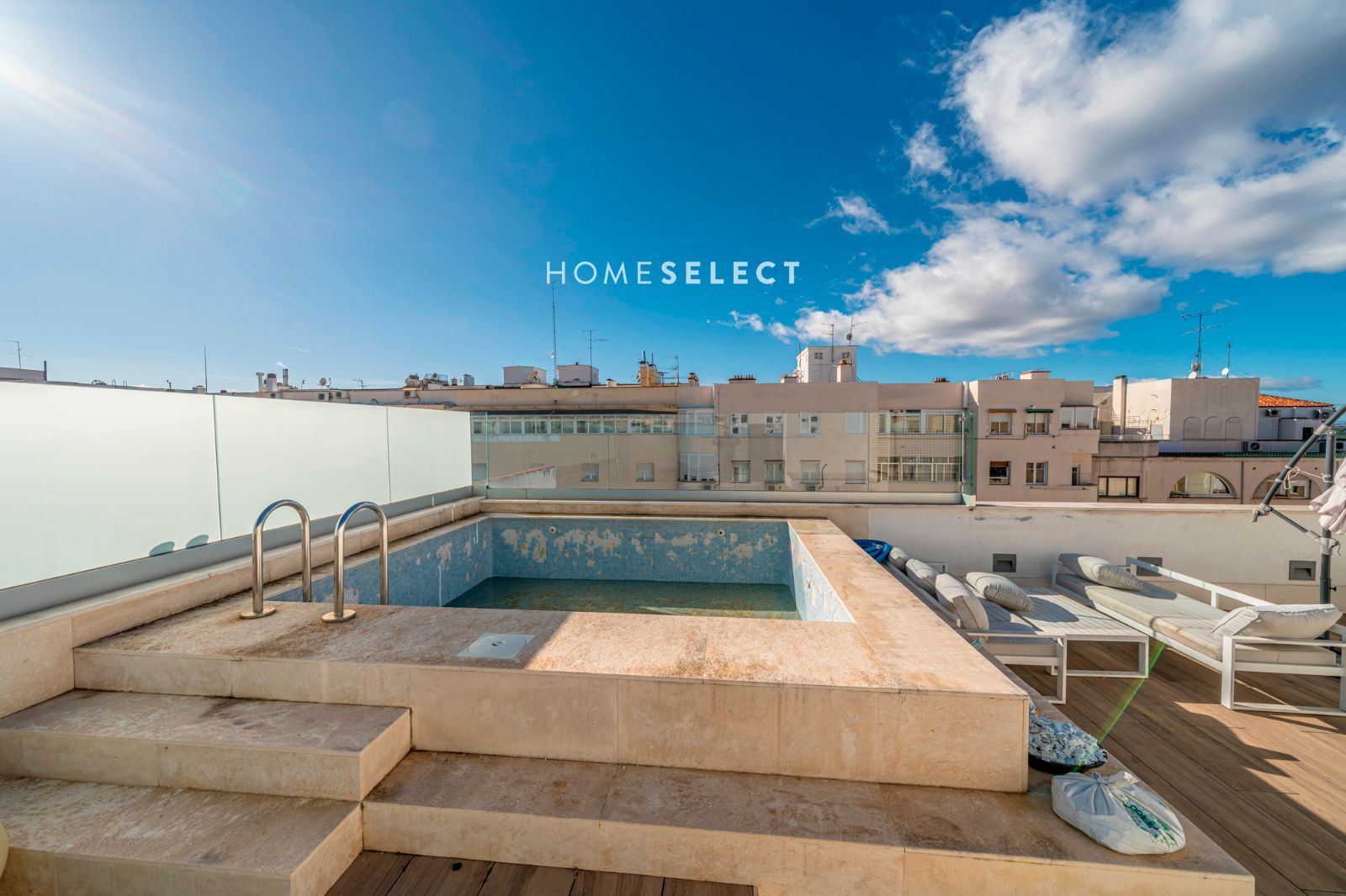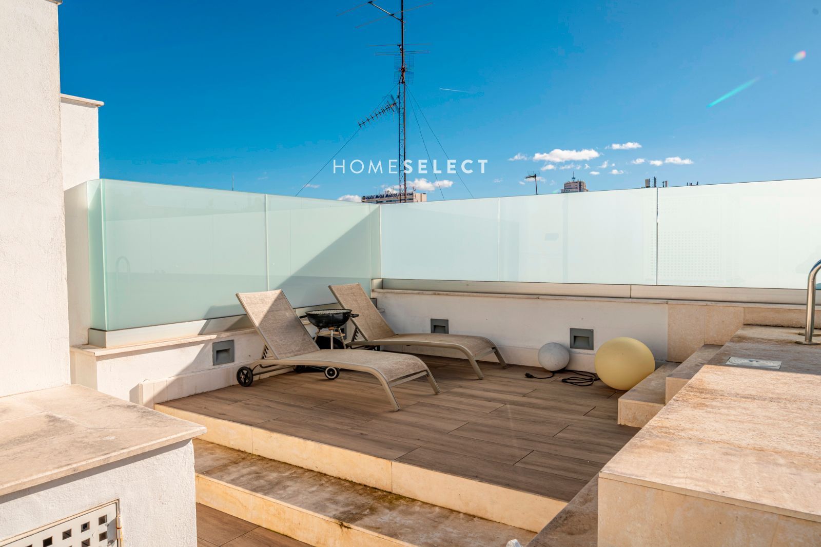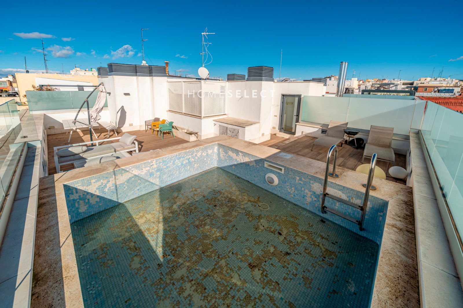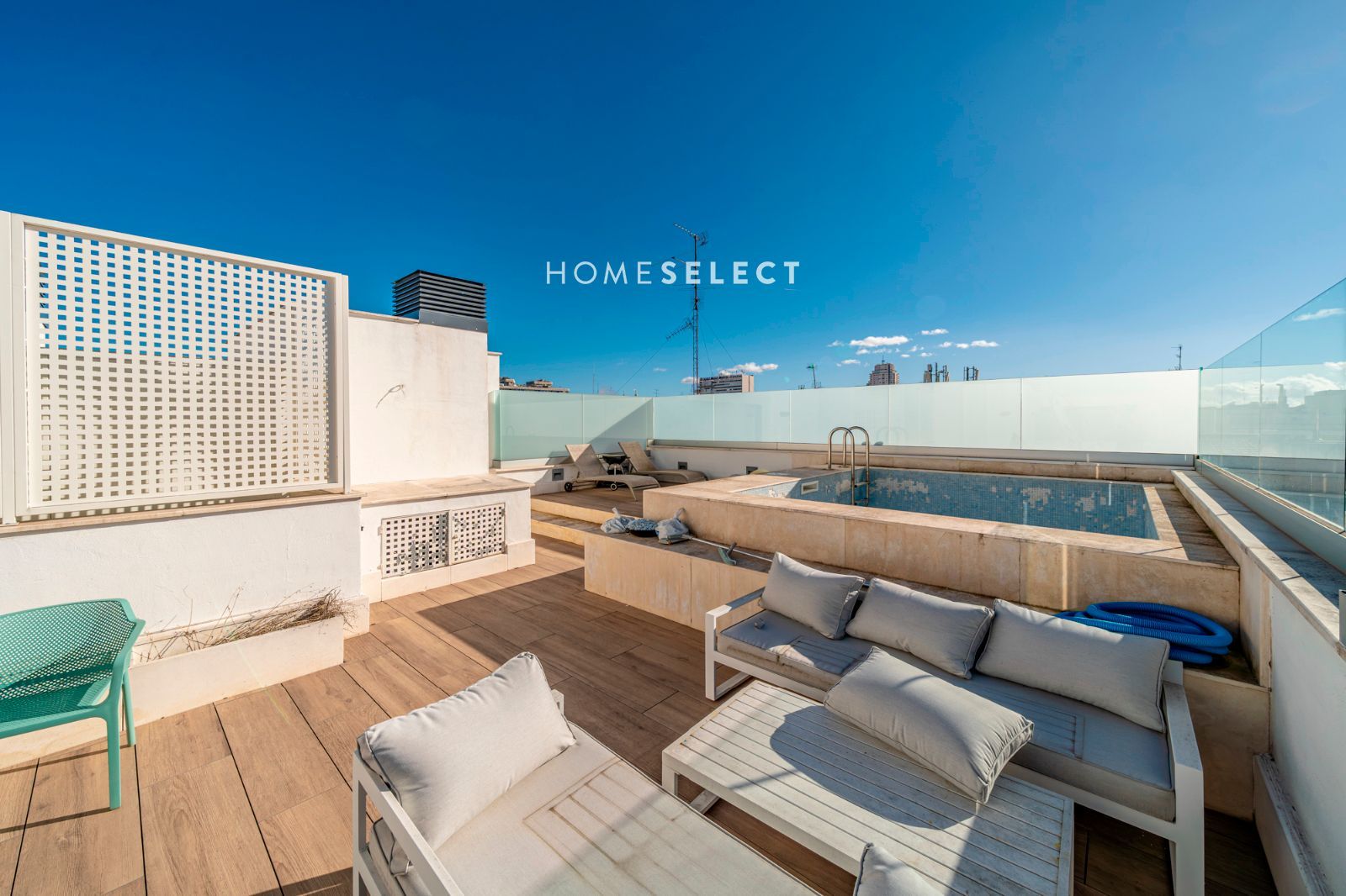 Desde la vivienda se accede a la planta superior, donde se ubica una espectacular terraza privada, auténtico valor diferencial del ático. Este espacio exterior, de generosas dimensiones, cuenta con piscina privada y permite disfrutar de distintos ambientes —zona de descanso, comedor al aire libre o solárium— gracias a sus tres orientaciones (sur, este y oeste), que garantizan sol y luminosidad durante todo el día.