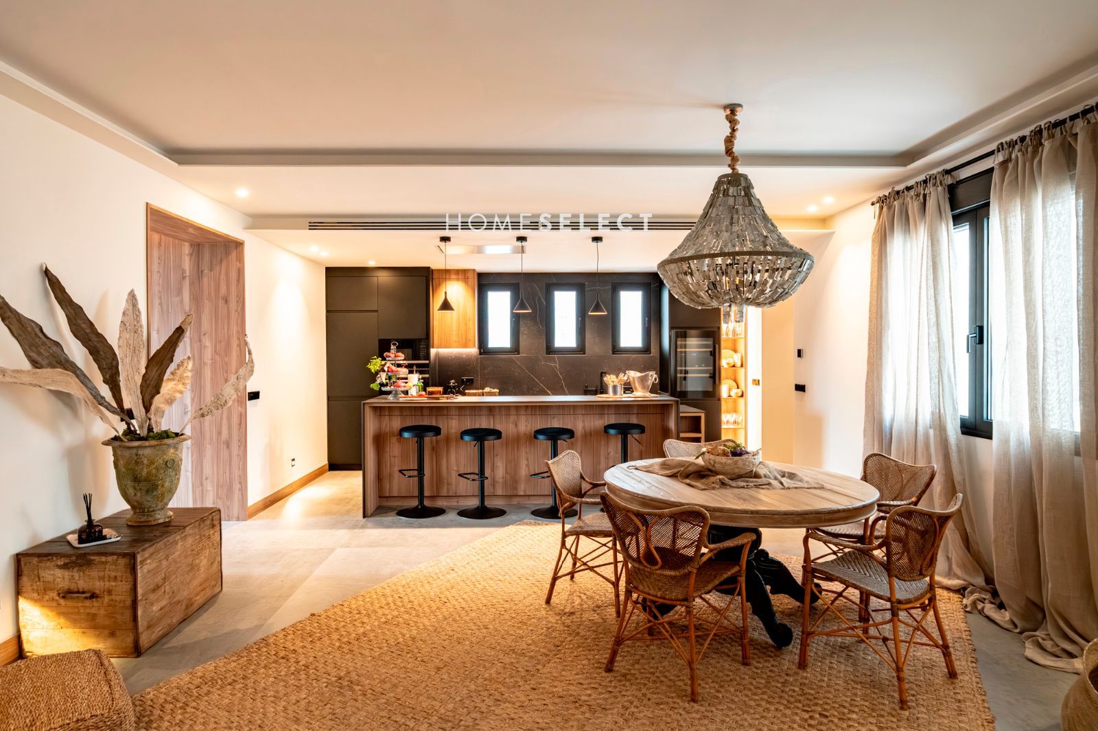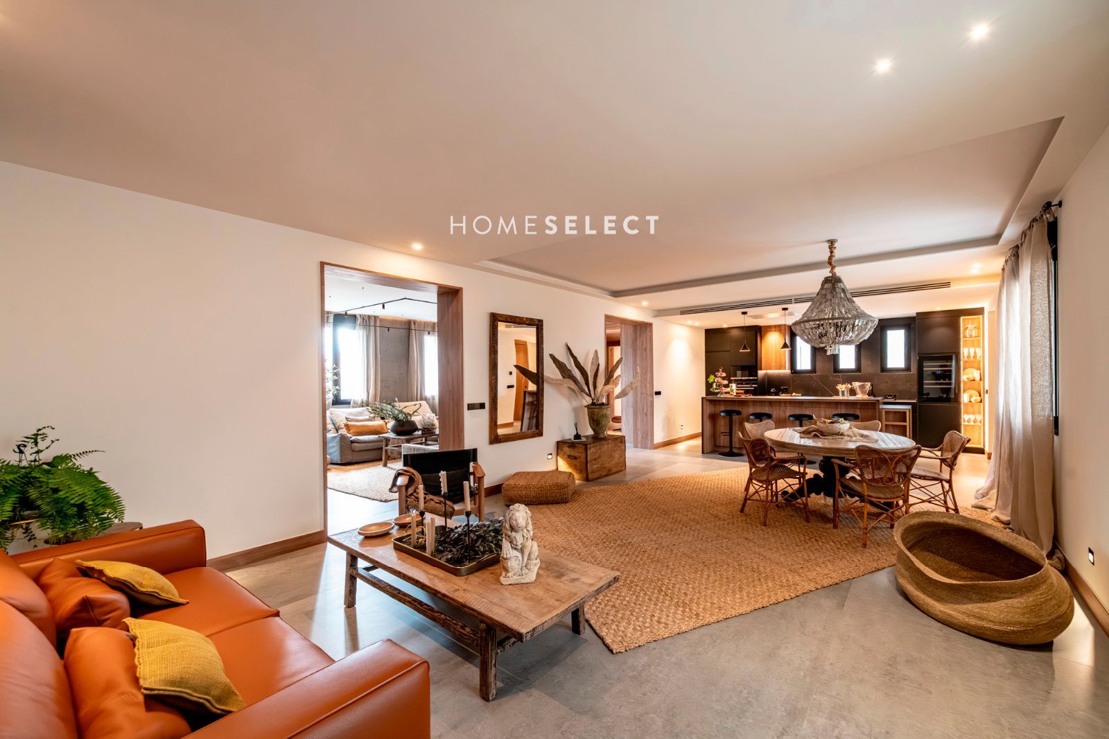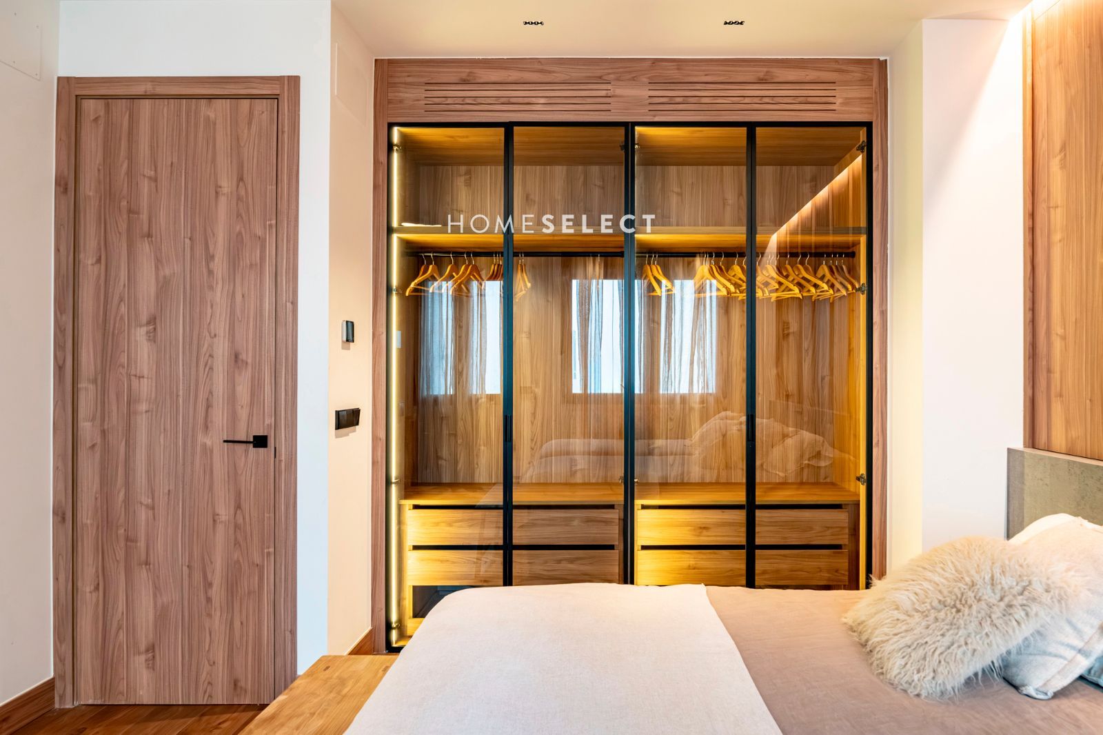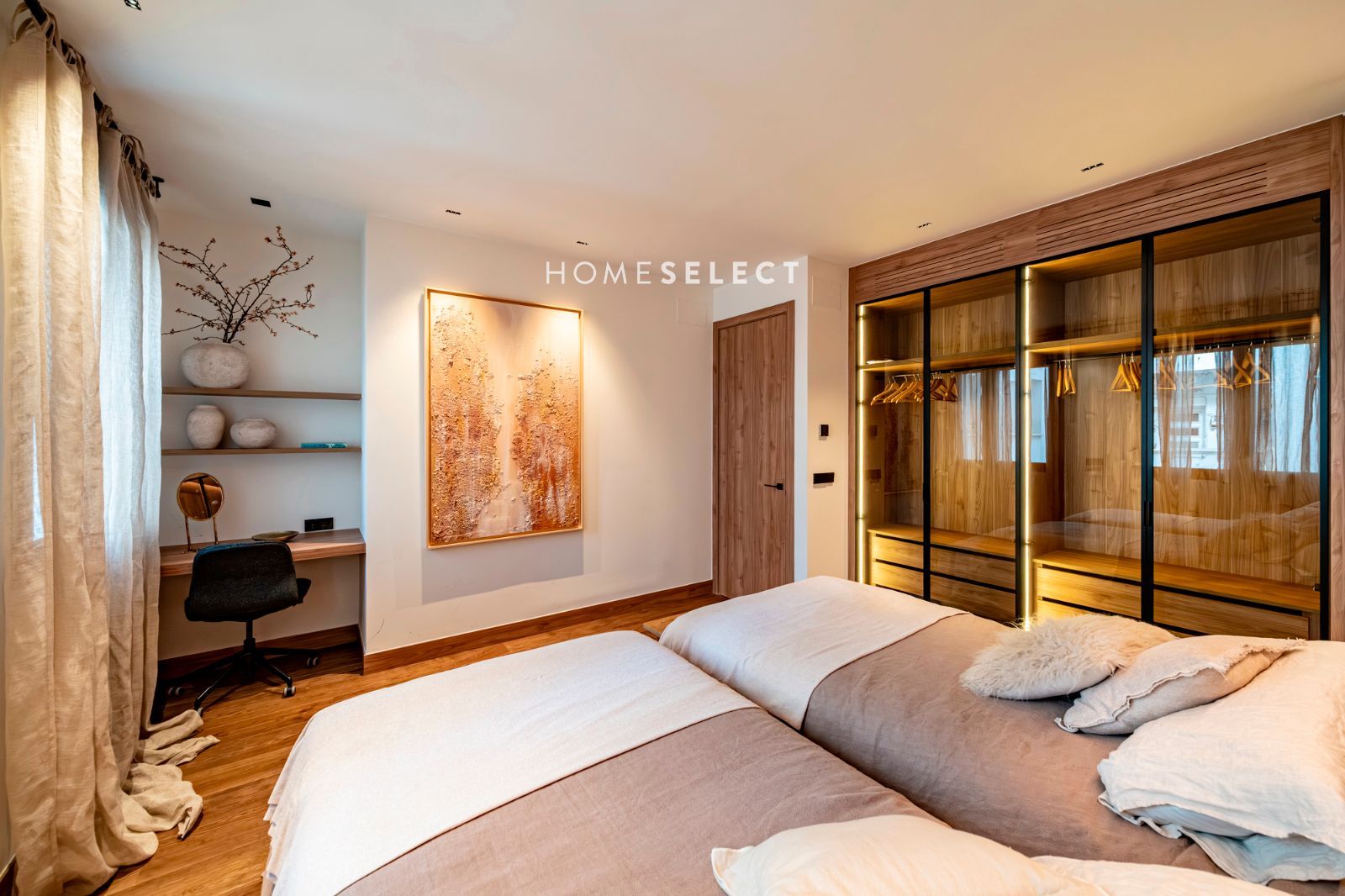 Ubicado en una quinta planta, este luminoso piso destaca por su amplitud, así como por su interiorismo singular, elegante y de gran calidad estética, que aporta carácter y sofisticación a cada estancia.  La vivienda cuenta con un gran salón-comedor con acceso a una pequeña terraza, ideal para disfrutar de momentos de descanso o de las vistas a la ciudad, y una cocina tipo americana, moderna y perfectamente integrada al espacio social.