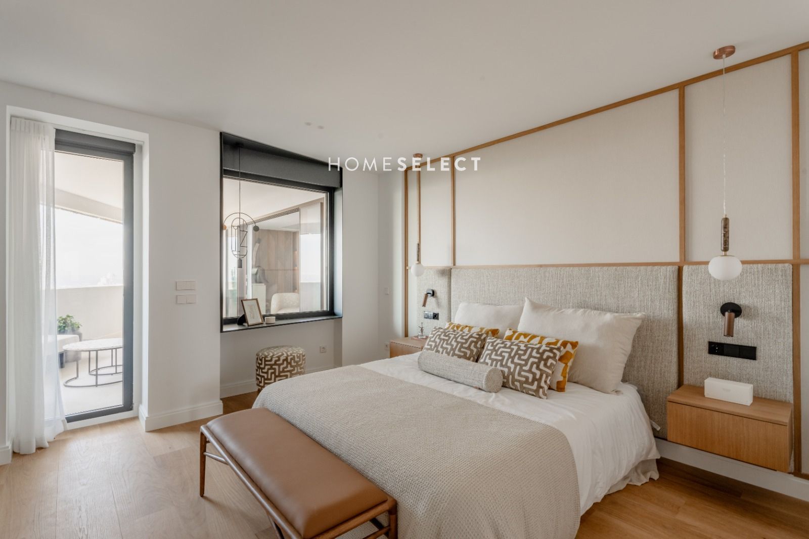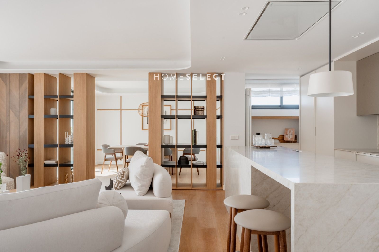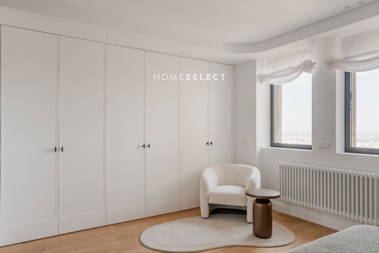 Home Select vende vivienda en venta en el Barrio de Retiro - Ibiza, ubicada en la icónica Torre de Valencia. Se trata de un ático situado en la planta 27, la última del edificio, con una superficie total de 283 m² construidos, que incluyen 16 m² de terraza. La propiedad se entregará reformada y amueblada, con una previsión de finalización de obra para mediados de octubre de 2025.