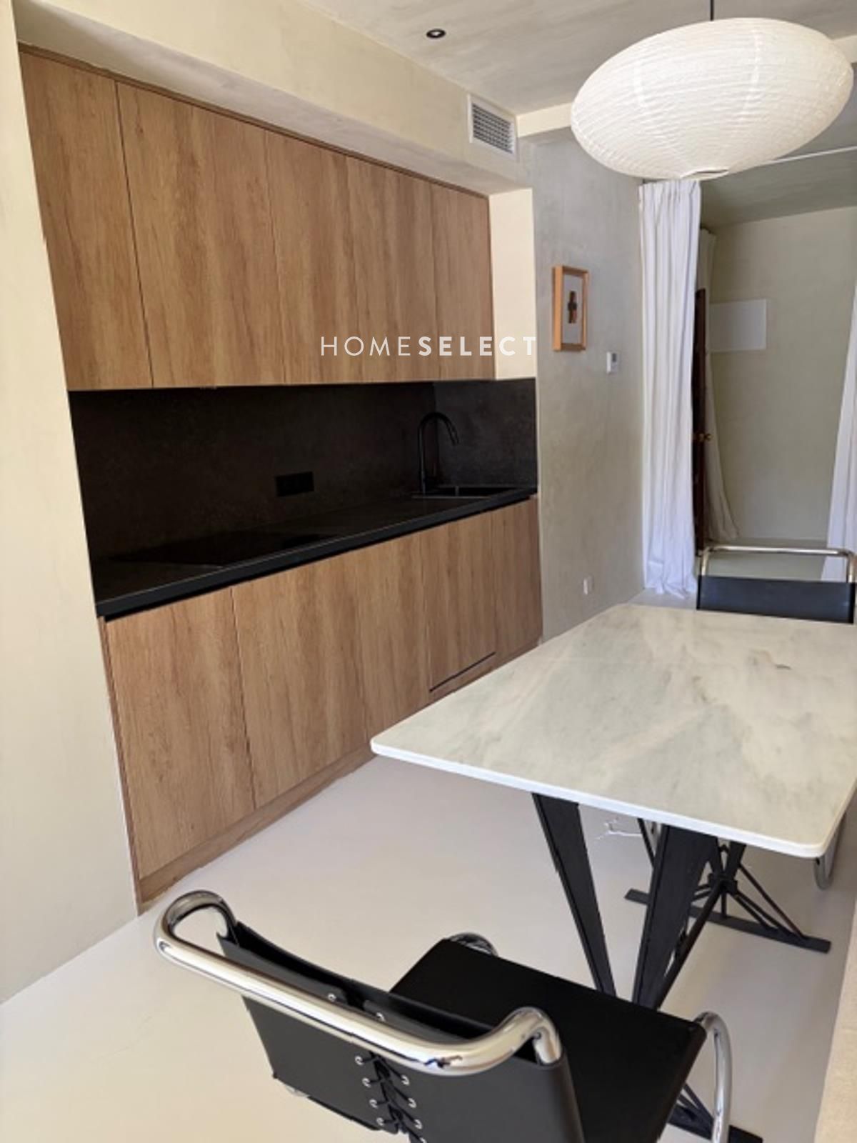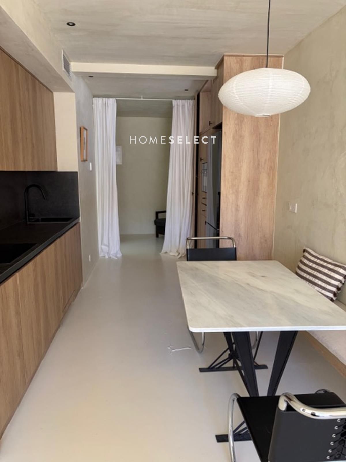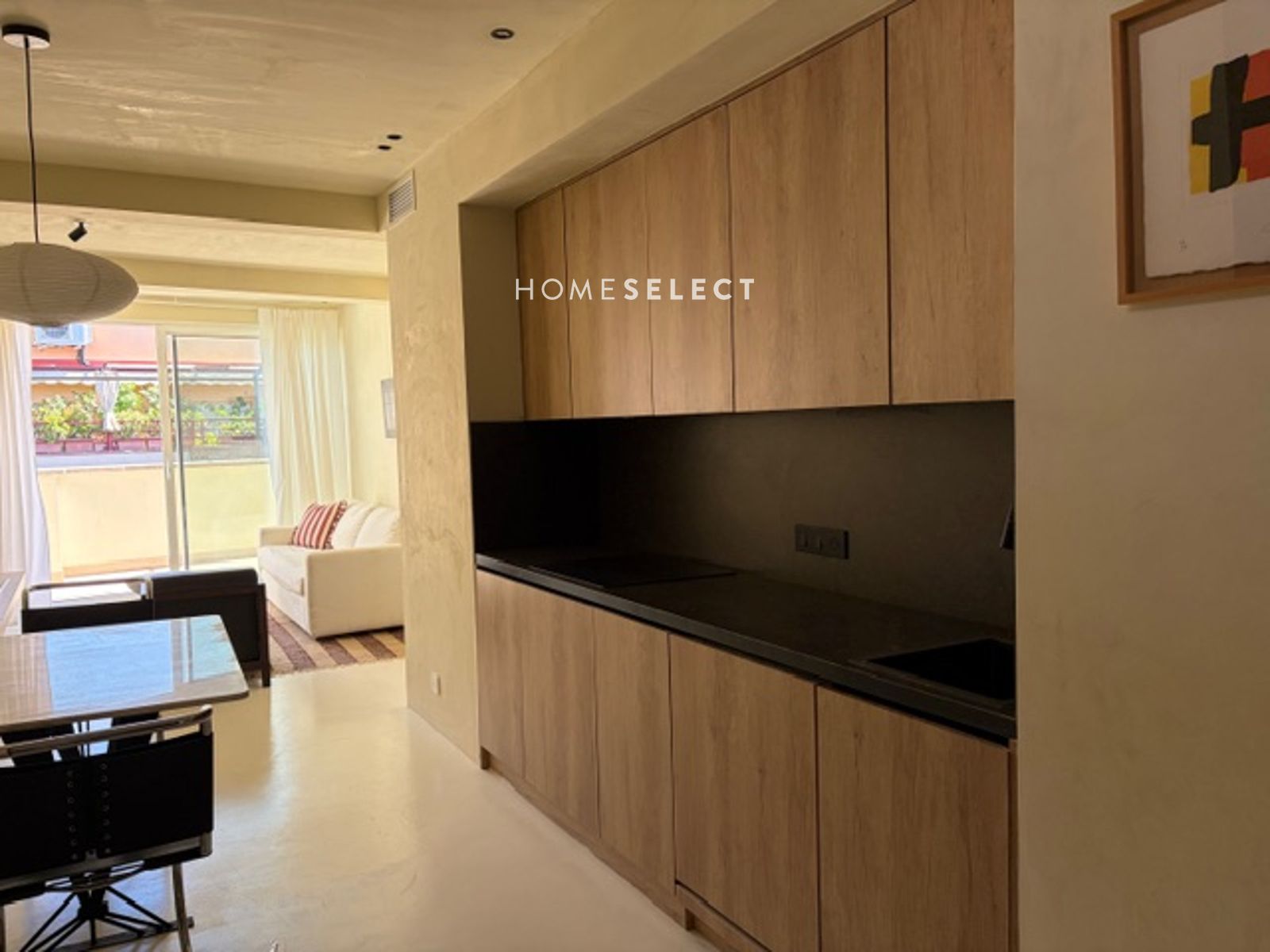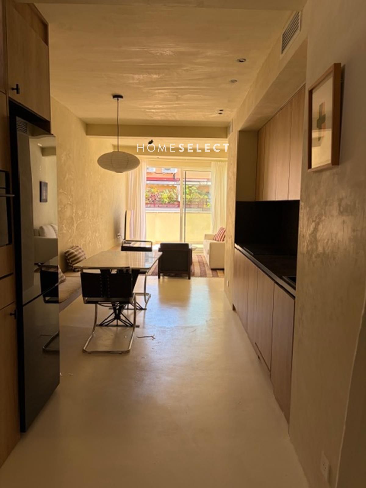 La vivienda cuenta con un hall de entrada que da paso a un luminoso salón-comedor. La cocina está integrada en el ambiente, siguiendo un diseño moderno y funcional que maximiza el espacio y la entrada de luz natural. Desde esta zona se accede directamente a la terraza.