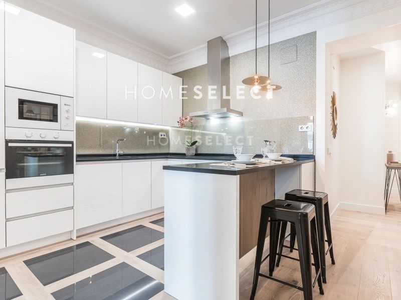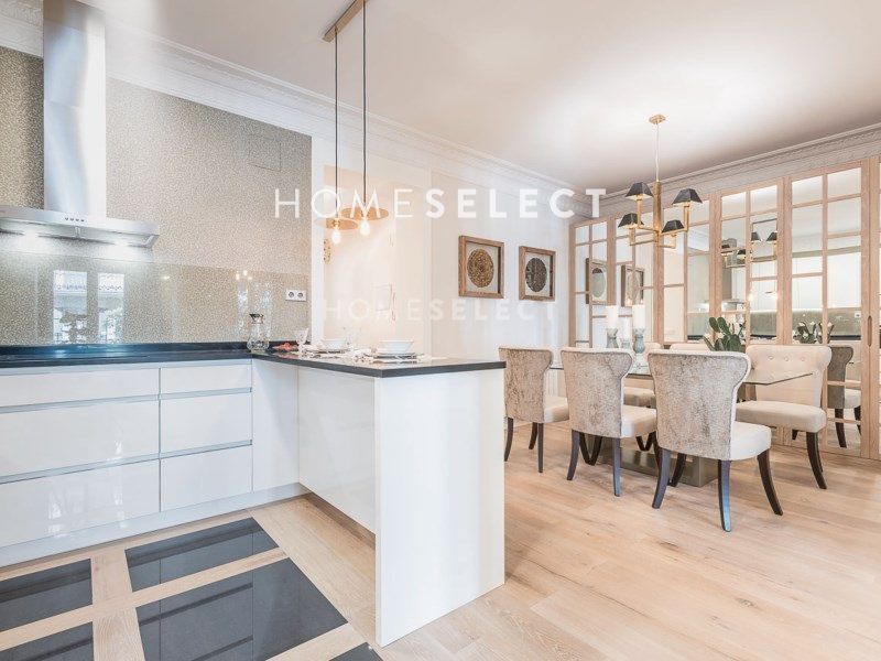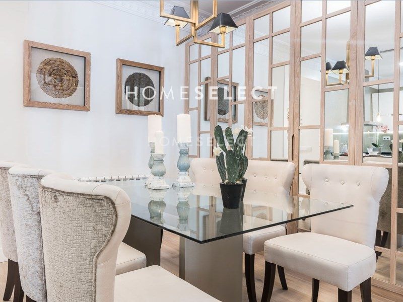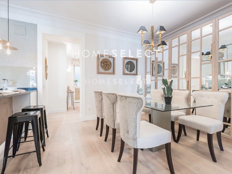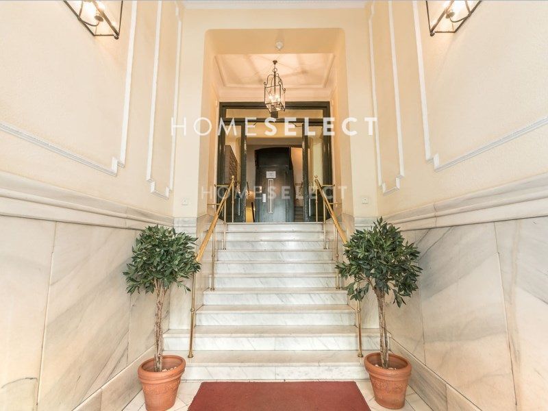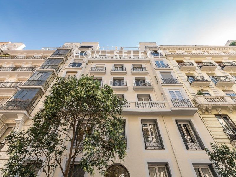 Home Select vende piso en una 2ª planta de un edificio de la calle Lagasca, en la zona de Castellana, dentro del Barrio de Salamanca. El edificio, de bonita fachada clásica, es original de 1919 y cuenta con portal representativo y portero físico.