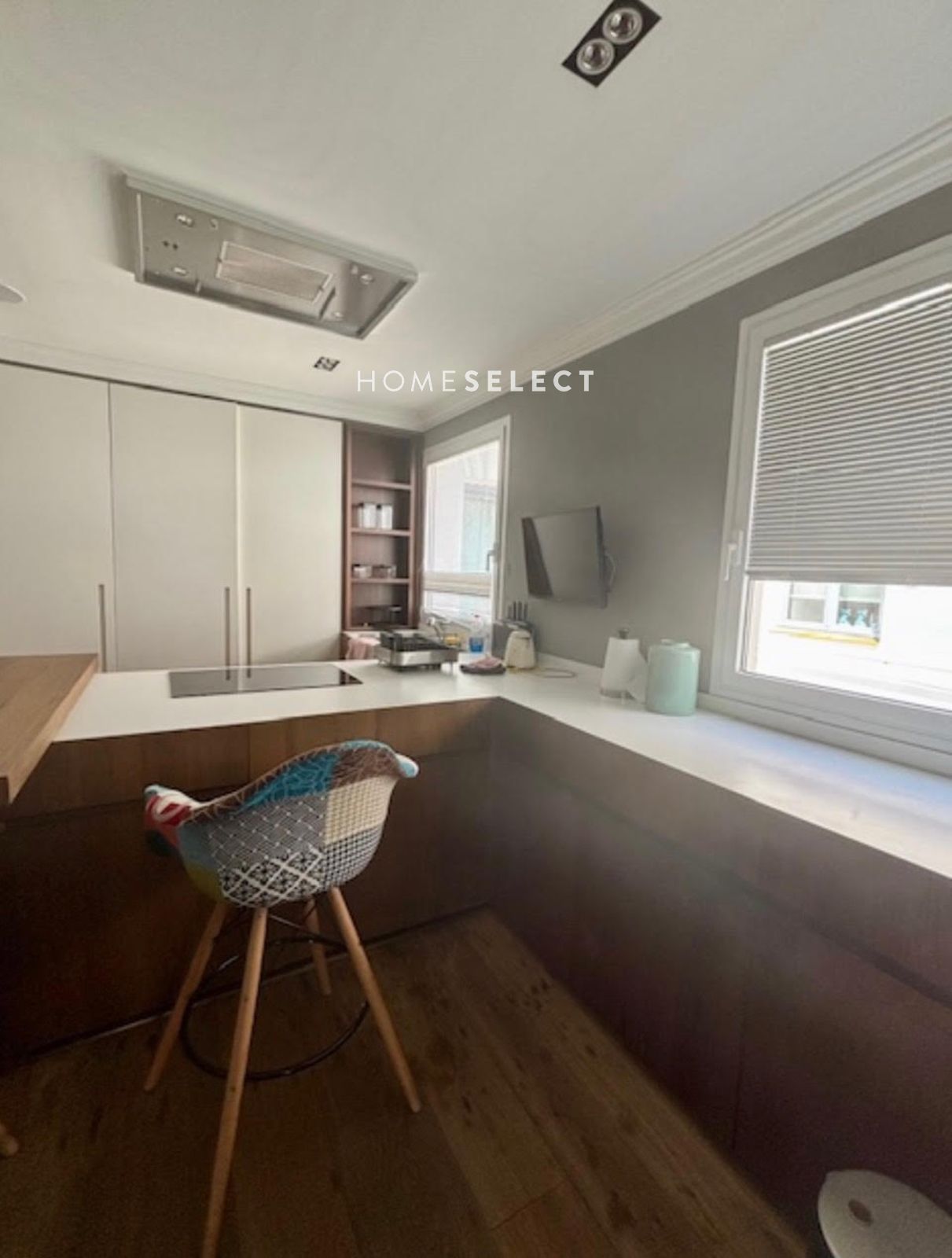 La zona de día está compuesta por un amplio salón-comedor muy luminoso gracias a la proyección directa de los balcones hacia la calle, y por una cocina independiente de buen tamaño. Un aseo de invitados da servicio a esta parte de la casa.