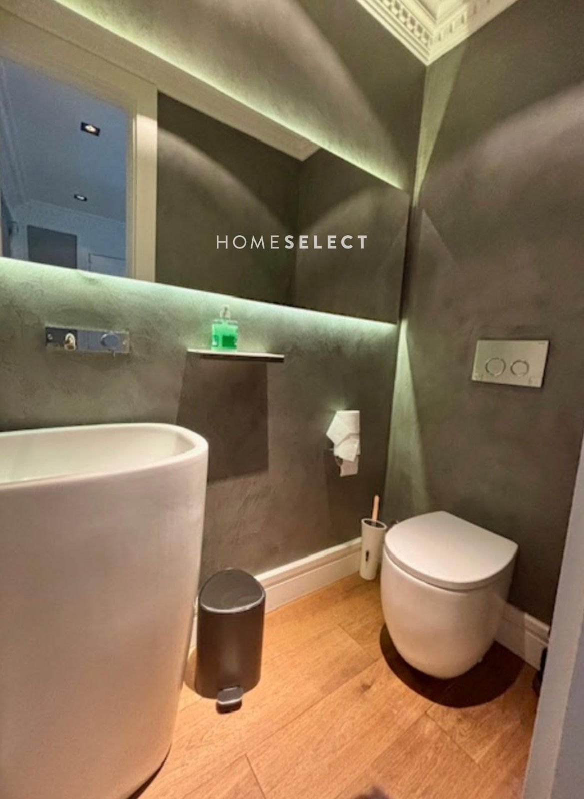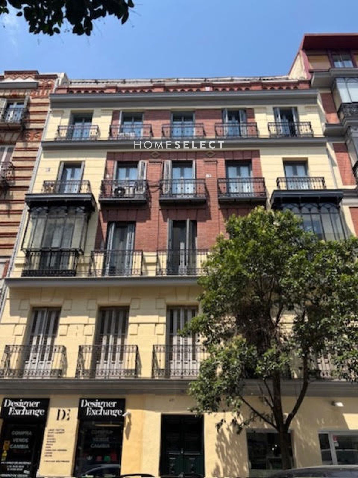 En una de las zonas más codiciadas del Barrio de Salamanca, en pleno Recoletos, se ubica esta vivienda situada en la cuarta planta exterior de un edificio clásico de 1889. La finca, de seis plantas, combina con elegancia el ladrillo visto en tono rojizo con elementos de piedra, componiendo una fachada sobria y distinguida que realza el carácter histórico del inmueble. El portal, cuidadosamente conservado, mantiene el encanto de la arquitectura original.