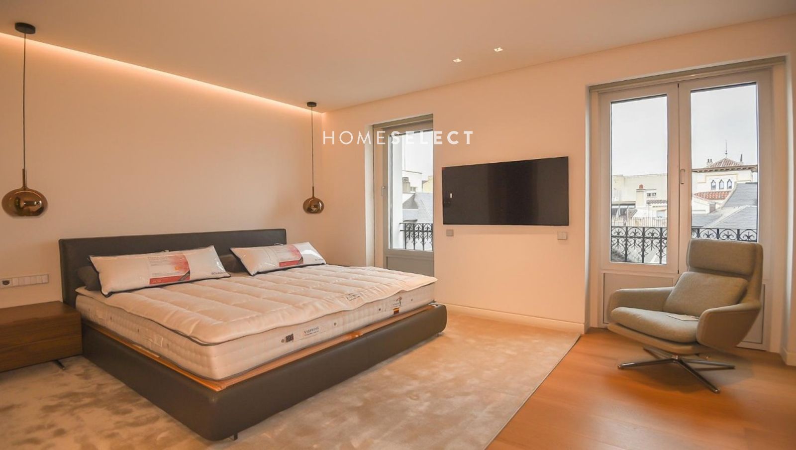Dispone de tres dormitorios en suite, todos con vestidor. Destaca el dormitorio principal, con dos balcones a la calle y vistas abiertas, un valor diferencial en el Barrio de Salamanca.