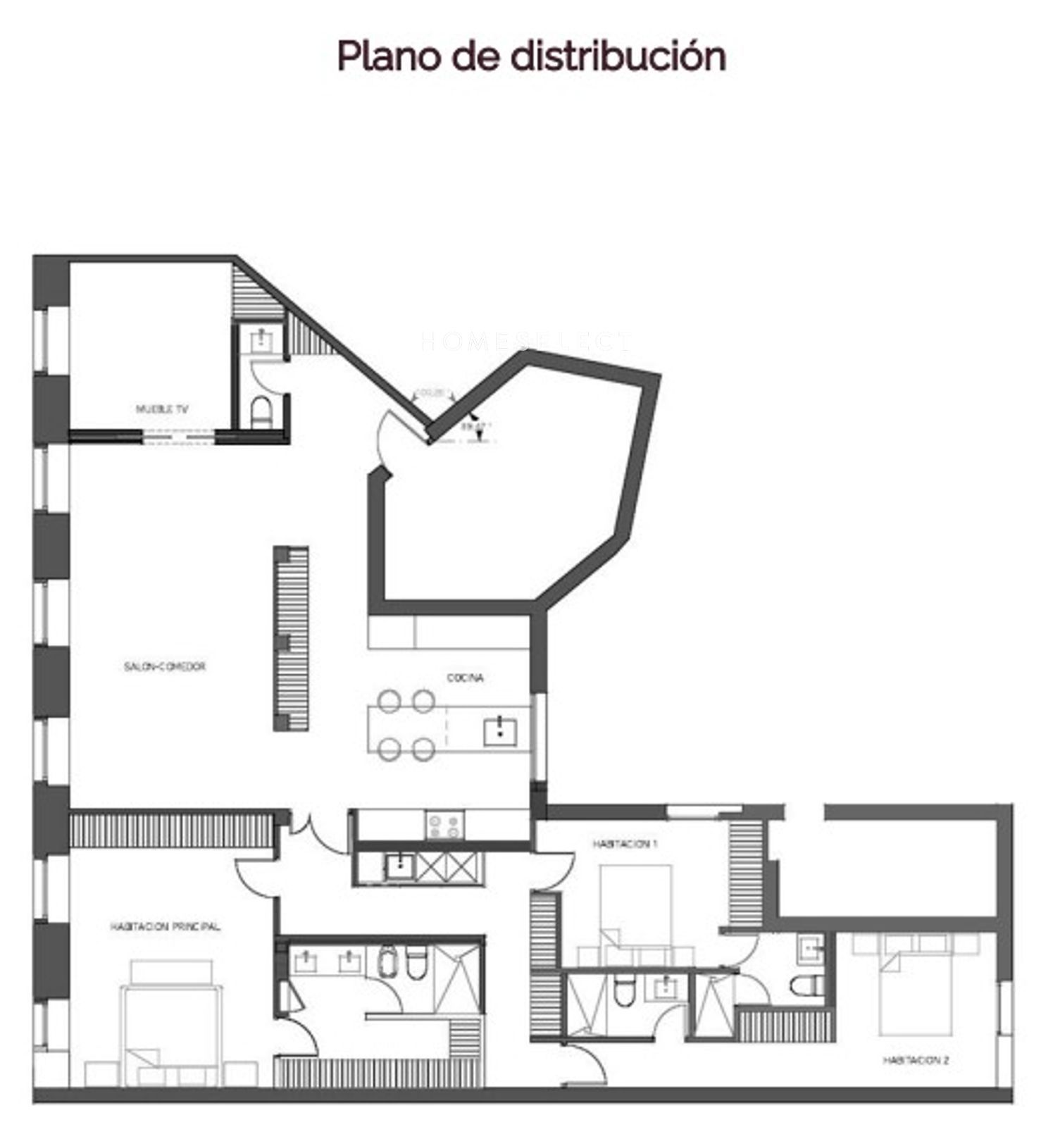 La zona social se articula en un espacio abierto, amplio y muy representativo, con el salón orientado a los 4 balcones, creando un ambiente sofisticado y lleno de luz natural.