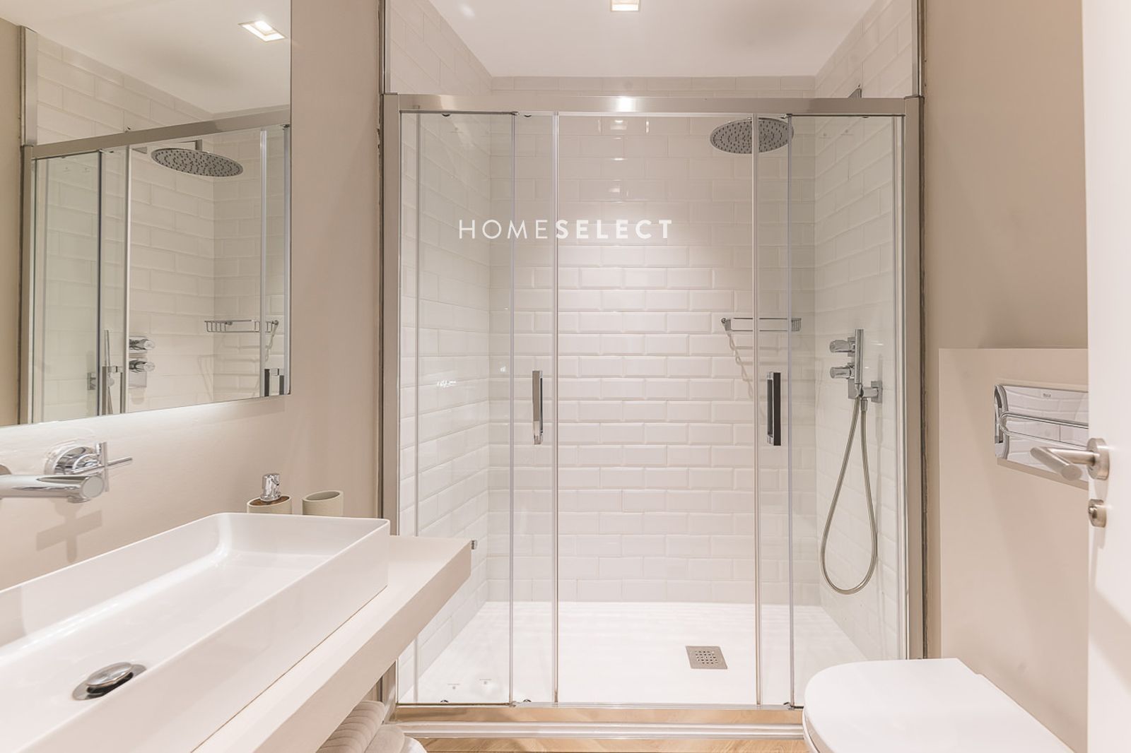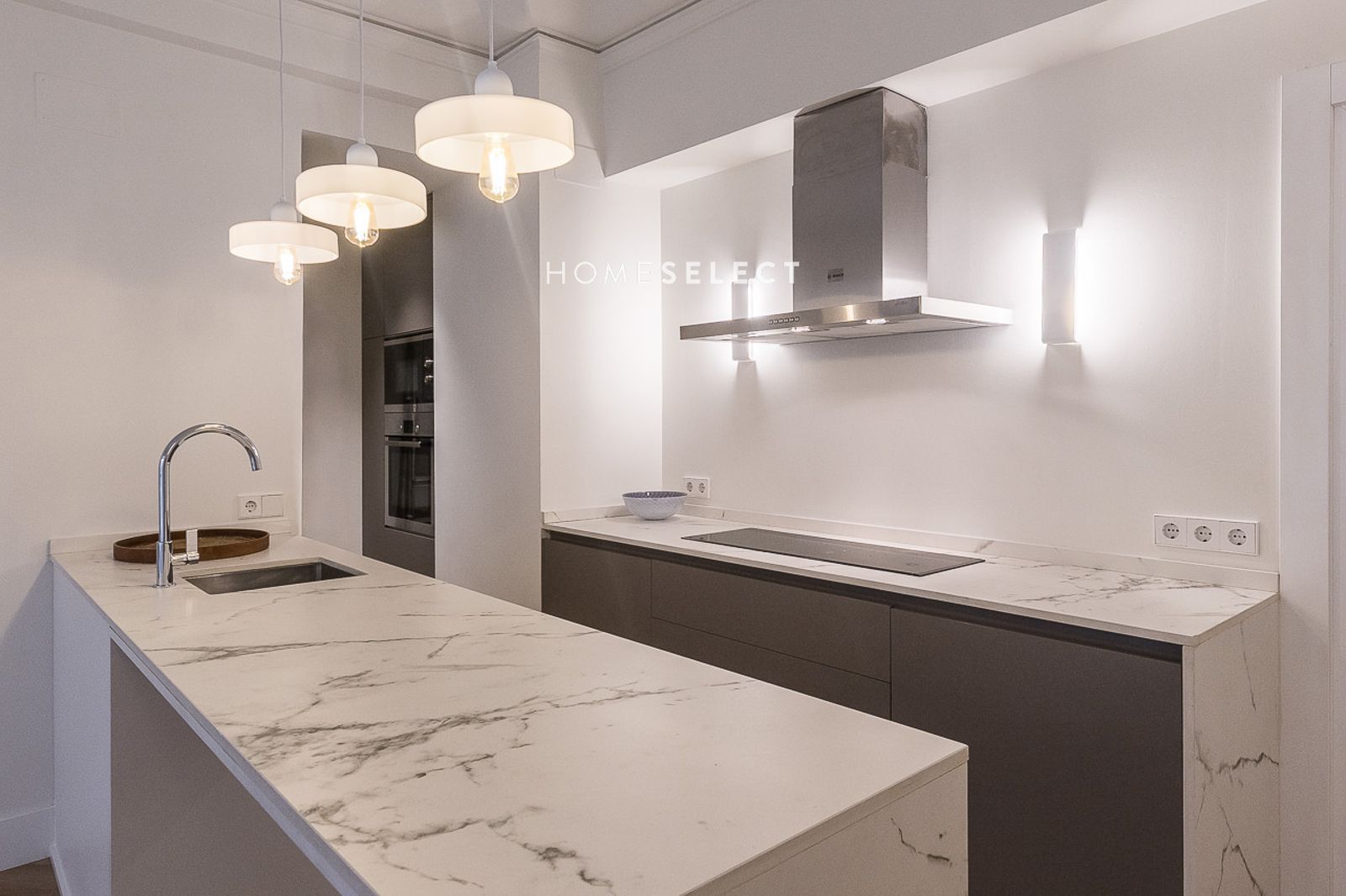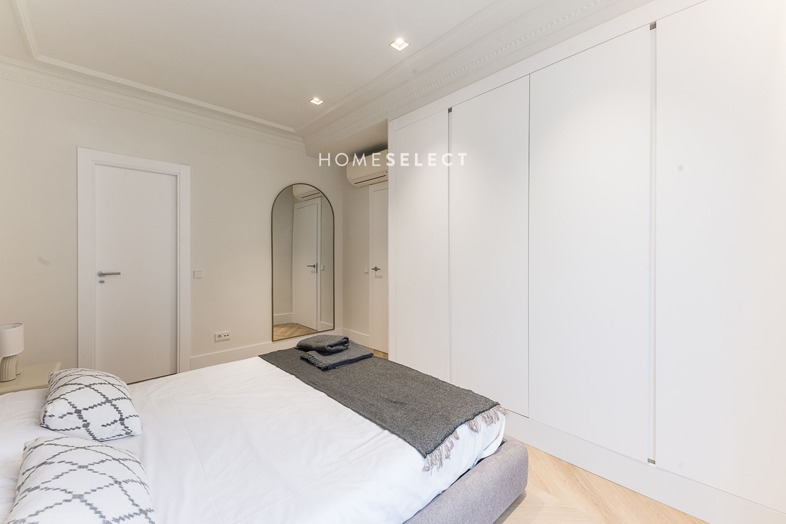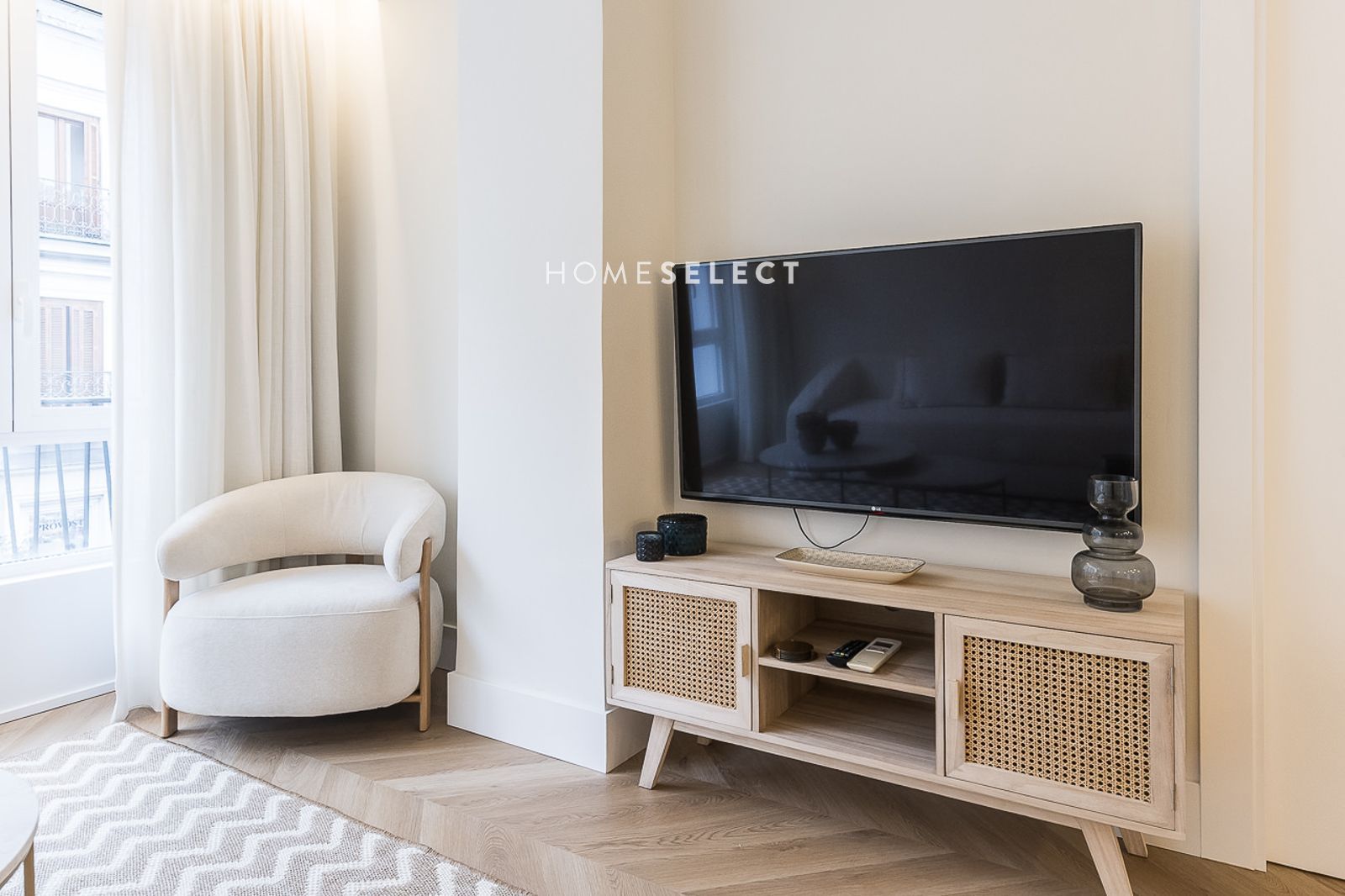 El piso ha sido recientemente reformado y se entrega a estrenar, completamente amueblado con un estilo actual y cuidado. Dispone de un amplio salón-comedor, con fantásticas alturas de techo y elegantes molduras, que realzan el carácter de la vivienda. La cocina de planta abierta, integrada en el salón, está totalmente equipada con electrodomésticos y cuenta con salida directa a la terraza.