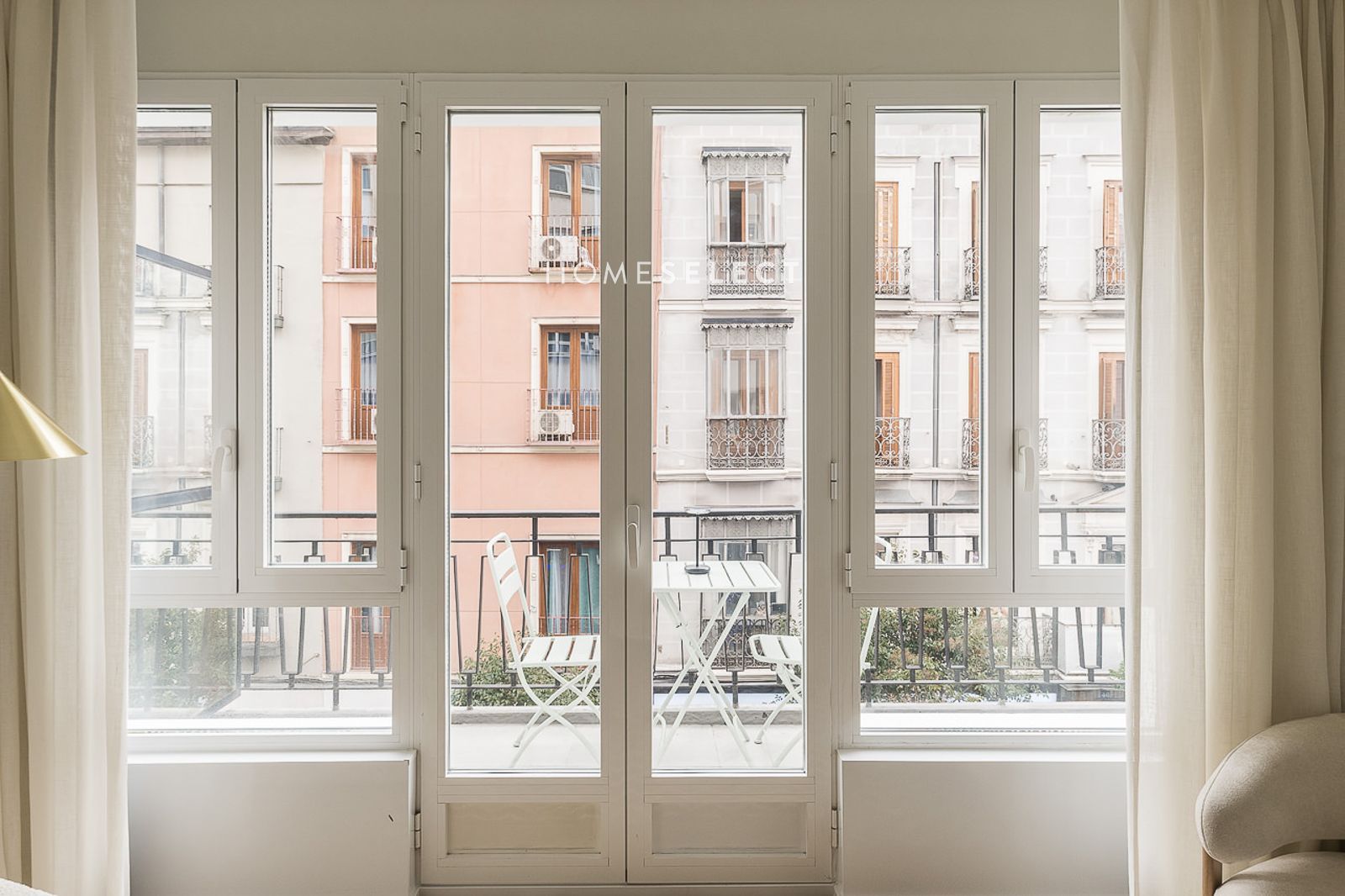 La vivienda disfruta de una excelente luminosidad natural, ya que tanto el salón como el dormitorio tienen acceso directo a una terraza exterior corrida con vistas a la calle Fuencarral, a través de grandes ventanales de suelo a techo que aportan amplitud y luz durante todo el día.