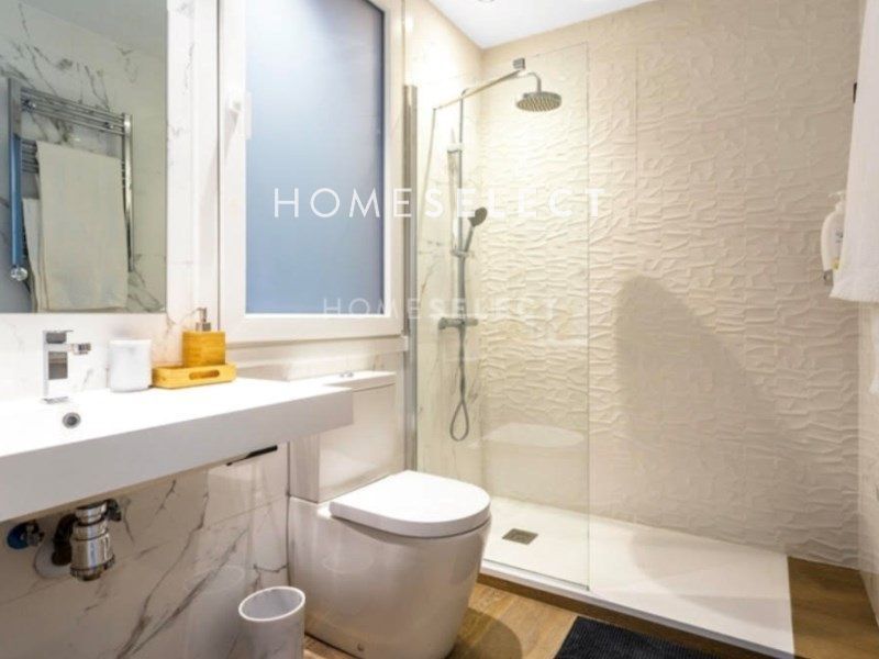 La vivienda es un primer piso exterior de 128 metros cuadrados, completamente reformado y amueblado. Dispone de dos ventanas que dan a la calle, proporcionando buena iluminación natural. El espacio cuenta con un amplio salón/comedor, ideal para reuniones y momentos de ocio. La cocina está integrada en el área del salón y cuenta con una isla central, facilitando la interacción mientras se cocina. La propiedad incluye tres habitaciones, adecuadas para dormitorios o espacios de trabajo, y dos baños completos.