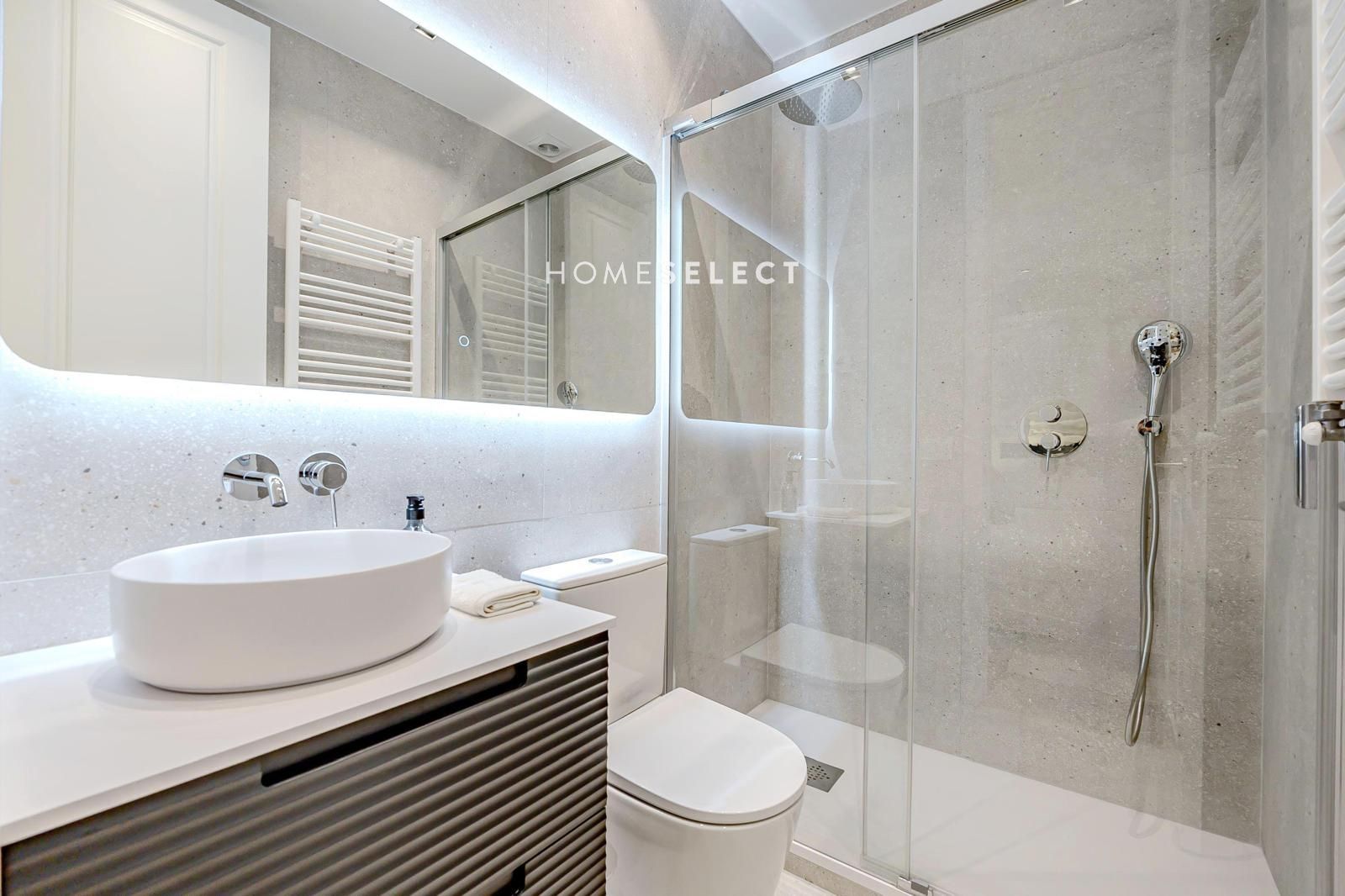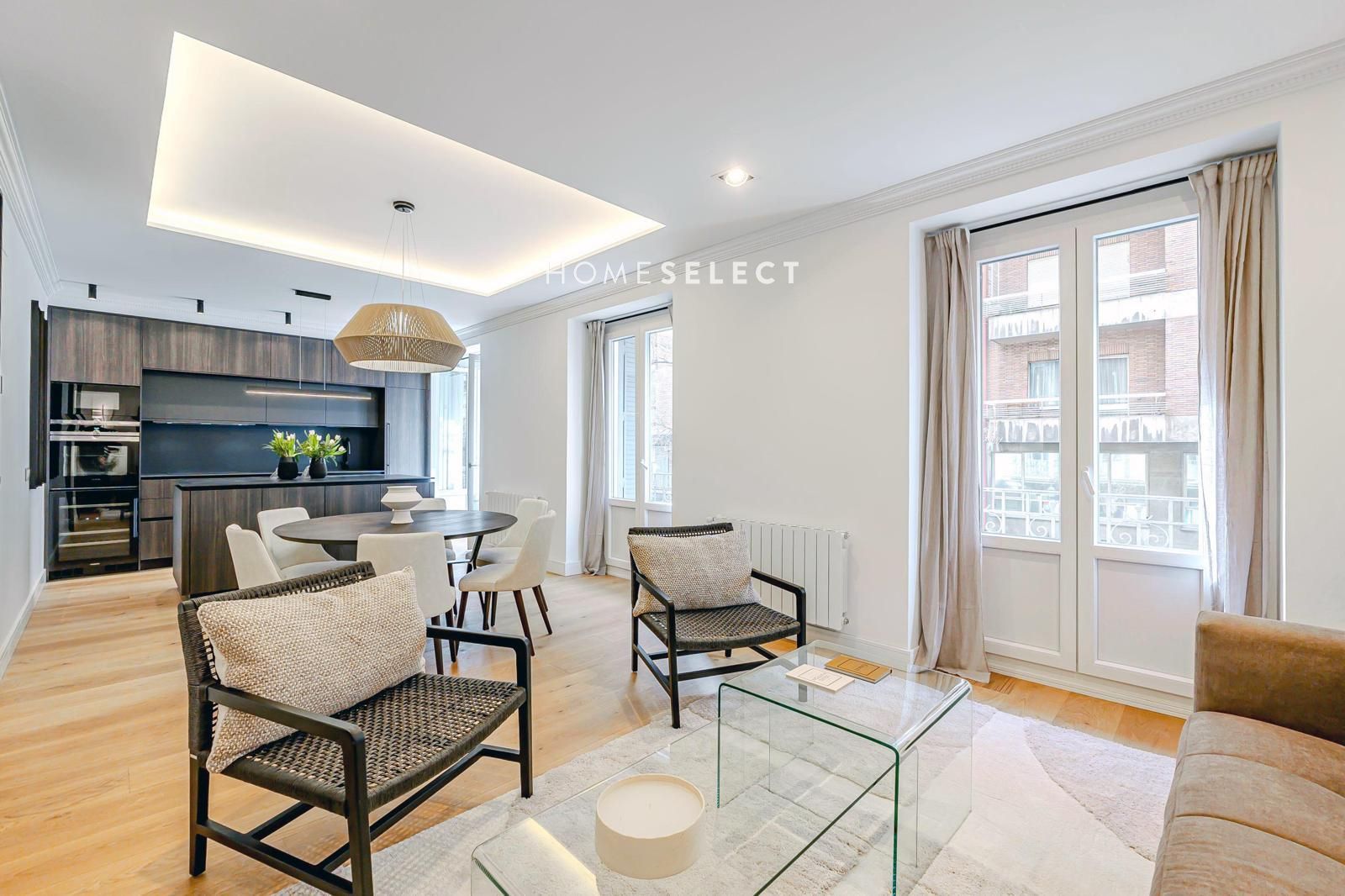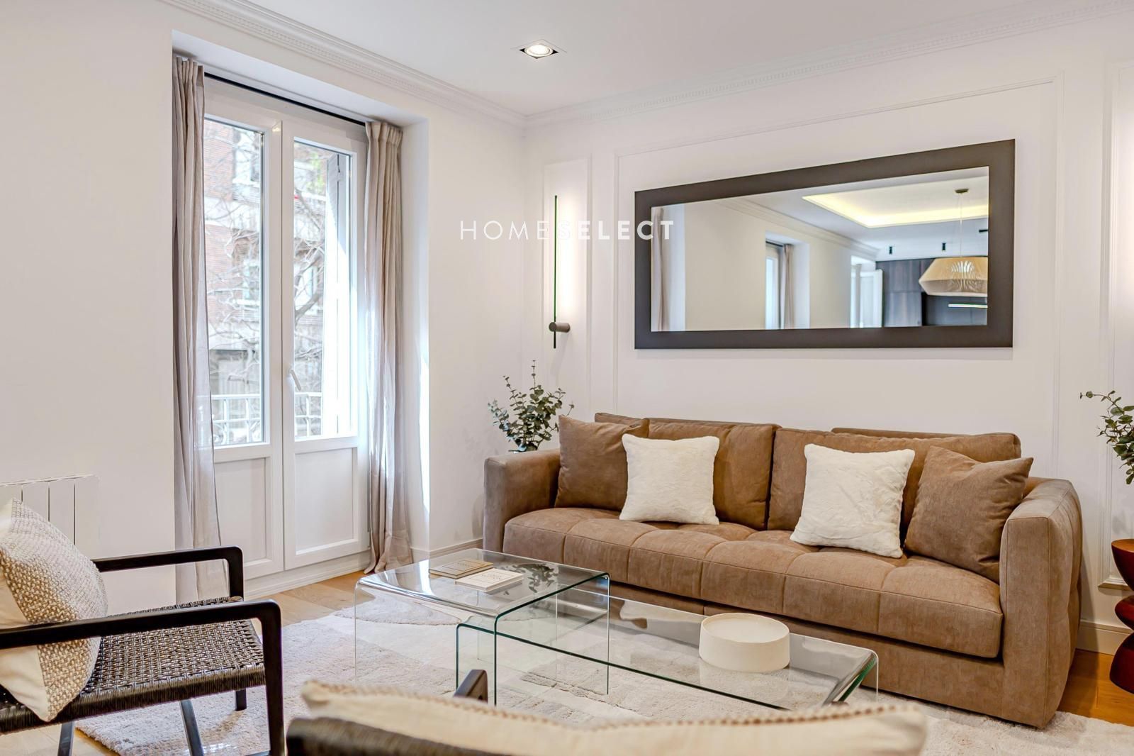 Home Select vende vivienda ubicada en el Barrio de Salamanca, en la codiciada zona de Goya, esta vivienda representa a la perfección el equilibrio entre el encanto de la arquitectura clásica madrileña y una reforma actual de alto nivel. Se sitúa en una quinta planta exterior, con una superficie construida de 157 m², y se entrega totalmente reformada y amueblada, lista para entrar a vivir.