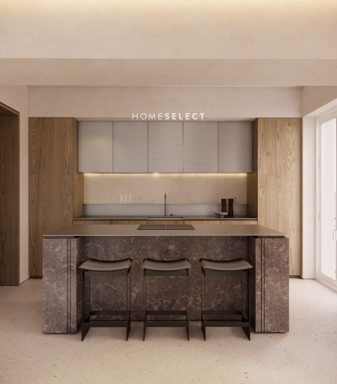 -Reforma con 3 dormitorios y 3 baños: Propuesta de reforma integral con una distribución racional y muy eficiente, priorizando amplitud, luz natural y almacenamiento. La vivienda se organiza en una zona de día generosa, con salón y comedor diferenciados y cocina integrada, reforzada por un frente de carpintería a medida que aporta continuidad, orden y calidez. El programa incluye 3 dormitorios (dormitorio principal con walking closet y baño en suite), 2 baños completos, 1 aseo de cortesía, y lavandería independiente. La estética se apoya en una paleta neutra y materiales atemporales (madera, piedra y texturas naturales), con iluminación ambiental perimetral y detalles de diseño sobrios para una imagen elegante y serena.