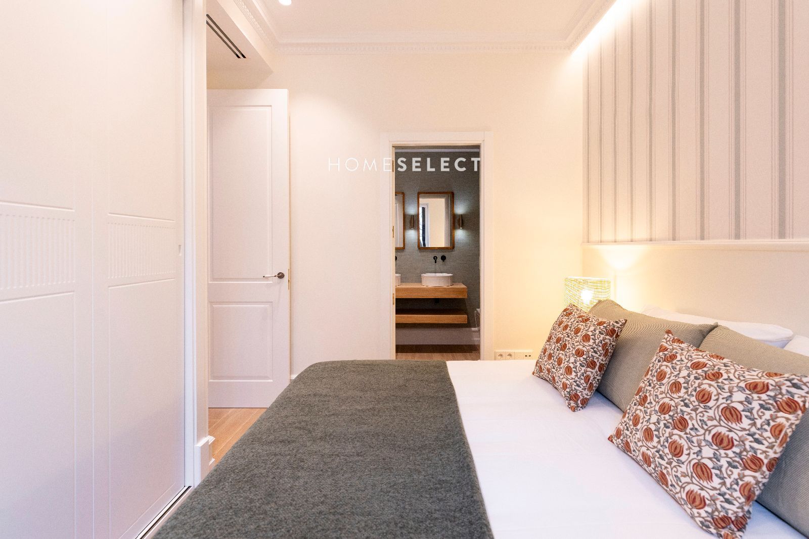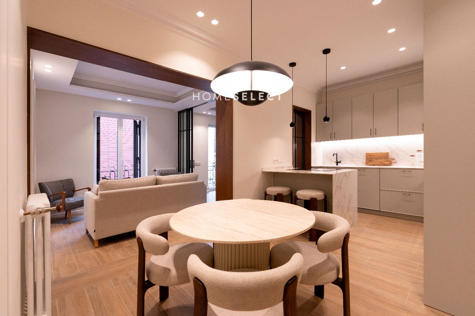 Home Select vende precioso piso exterior en una 2ª planta de una finca clásica, con bonita fachada y portal muy cuidado. La vivienda se ubica en la calle Ayala, dentro del Barrio de Salamanca, en el distrito de Goya. El edificio cuenta con portero físico. Se trata de una vivienda muy luminosa al contar con tres balcones a la calle y techo de buena altura. Se vende totalmente reformada y amueblada con calidades de lujo, lista para entrar a vivir.