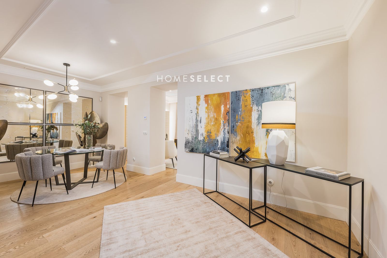El edificio recibe a los residentes con un portal restaurado en mármol blanco, molduras originales y una escalera con balaustrada de hierro y madera, evocando la elegancia del Madrid decimonónico. Cada elemento recuperado aporta continuidad histórica a un conjunto residencial orientado a un estilo de vida actual.