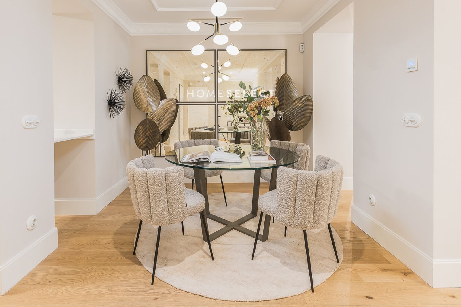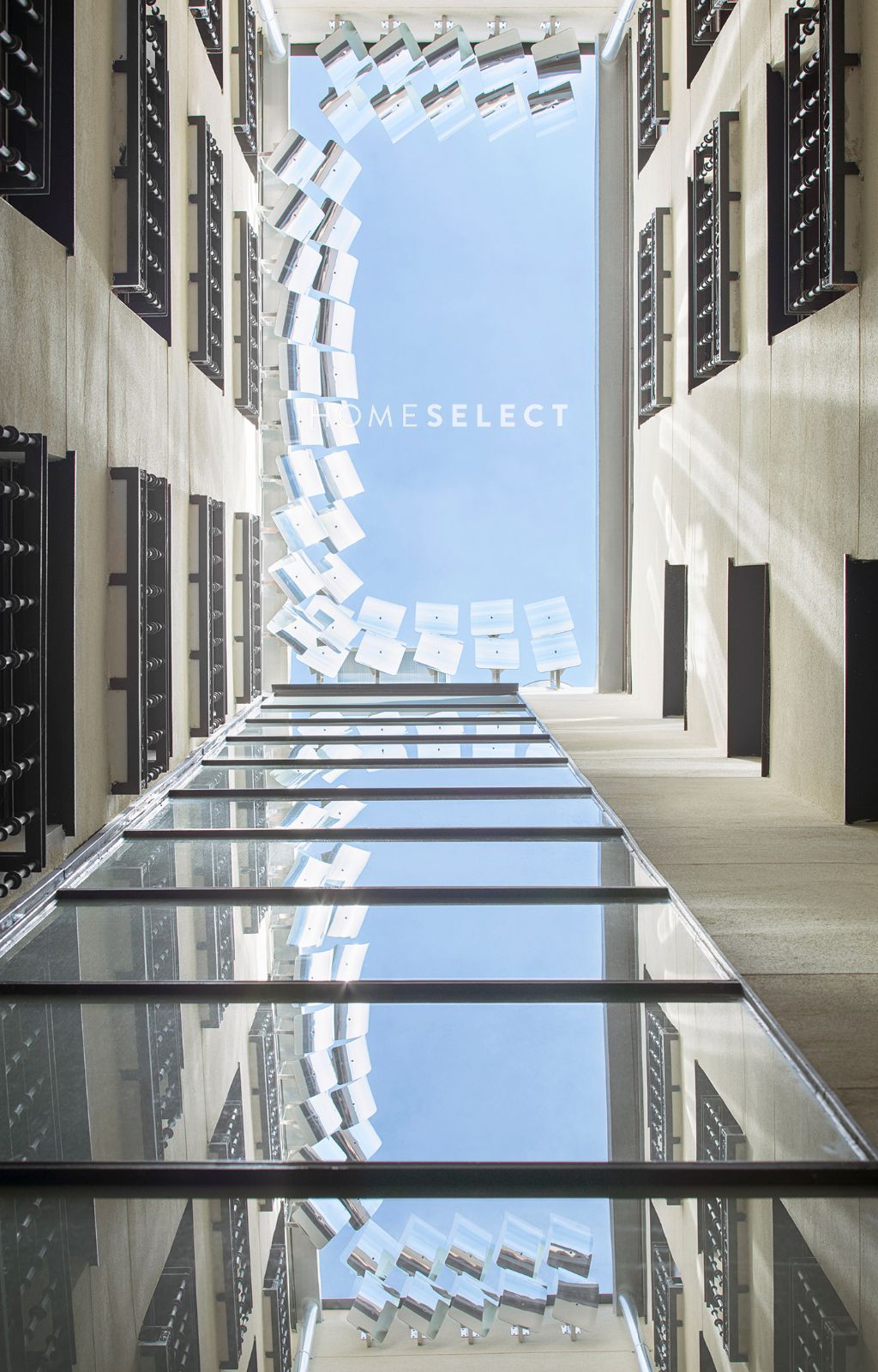 El conjunto residencial está formado por 14 viviendas amplias y luminosas, distribuidas en cinco plantas más ático, todas organizadas alrededor de un patio central. Este espacio interior incorpora un sistema de reflectores que optimiza la entrada de luz natural, creando una atmósfera cálida y agradable. Los interiores combinan con equilibrio la estética clásica y las comodidades contemporáneas: techos altos con molduras de escayola, tarimas de madera, grandes contraventanas y un avanzado sistema de climatización y domótica en todas las viviendas. Los baños destacan por sus suelos hidráulicos de inspiración Art Déco y las cocinas mezclan funcionalidad moderna con detalles vintage.