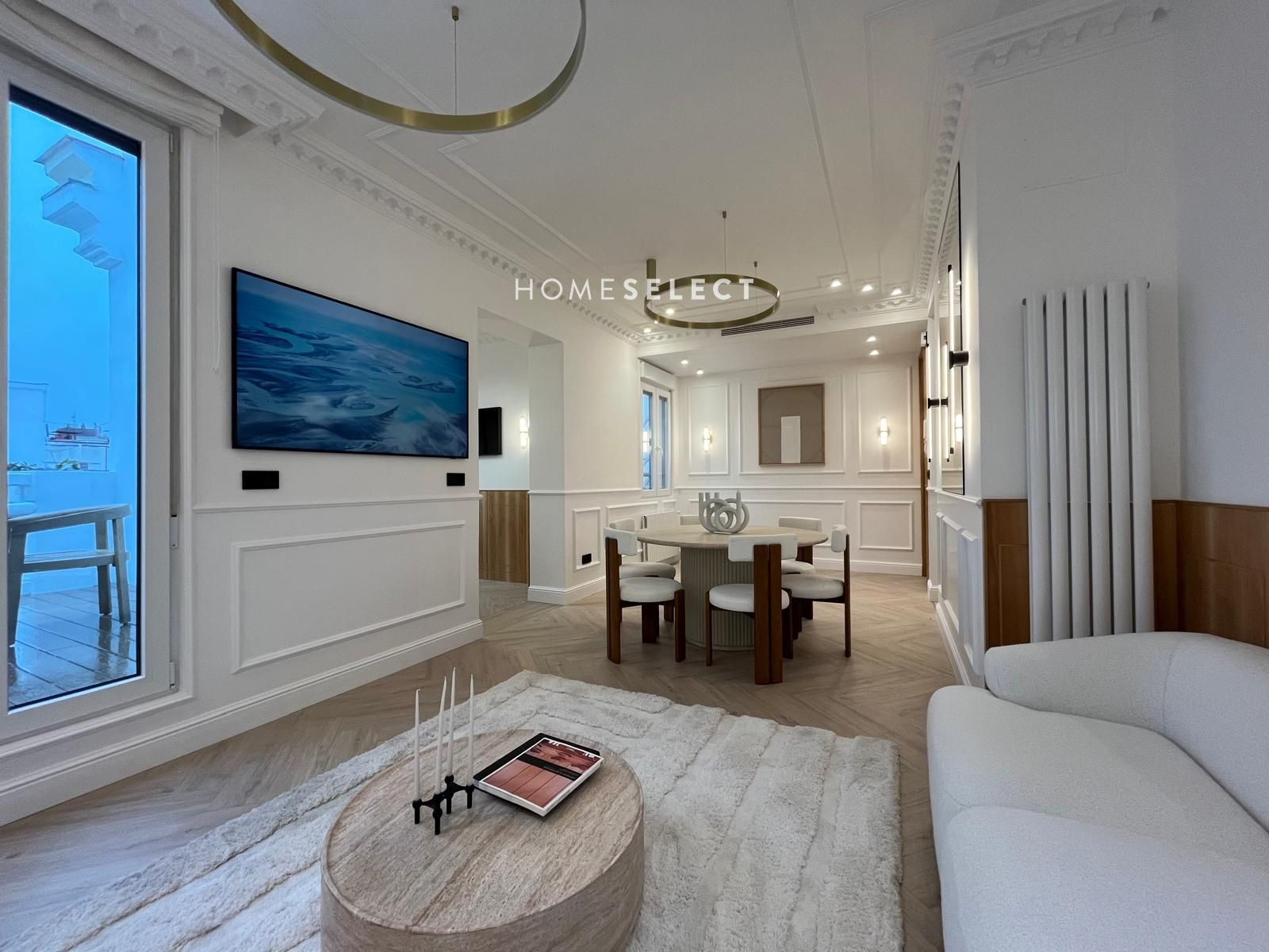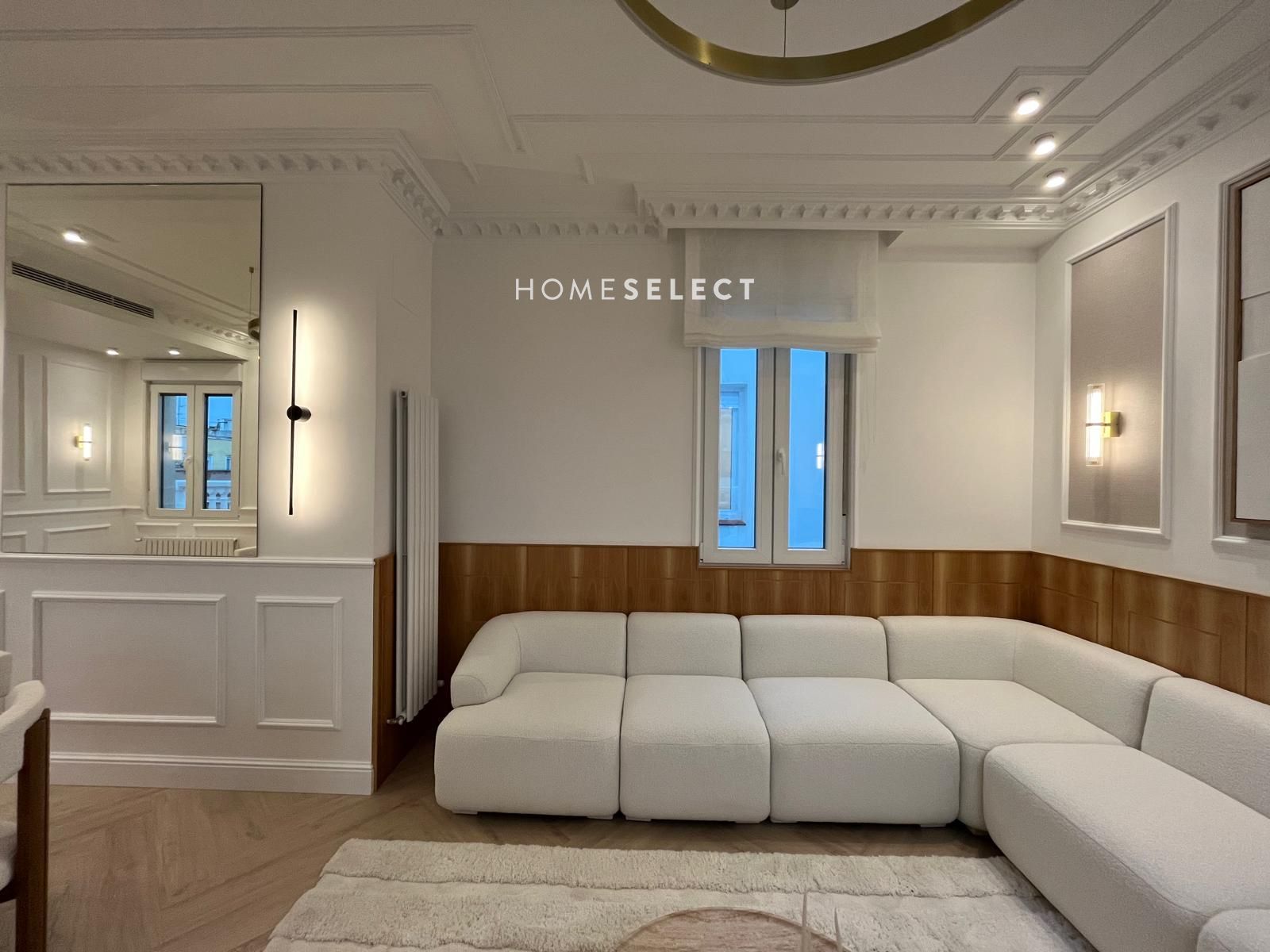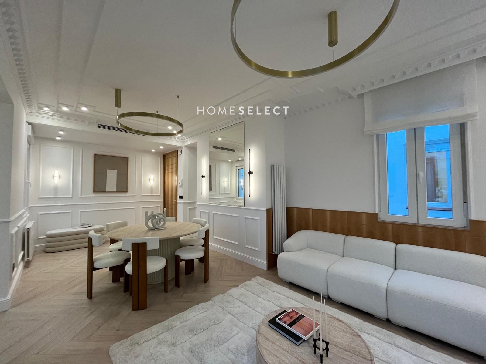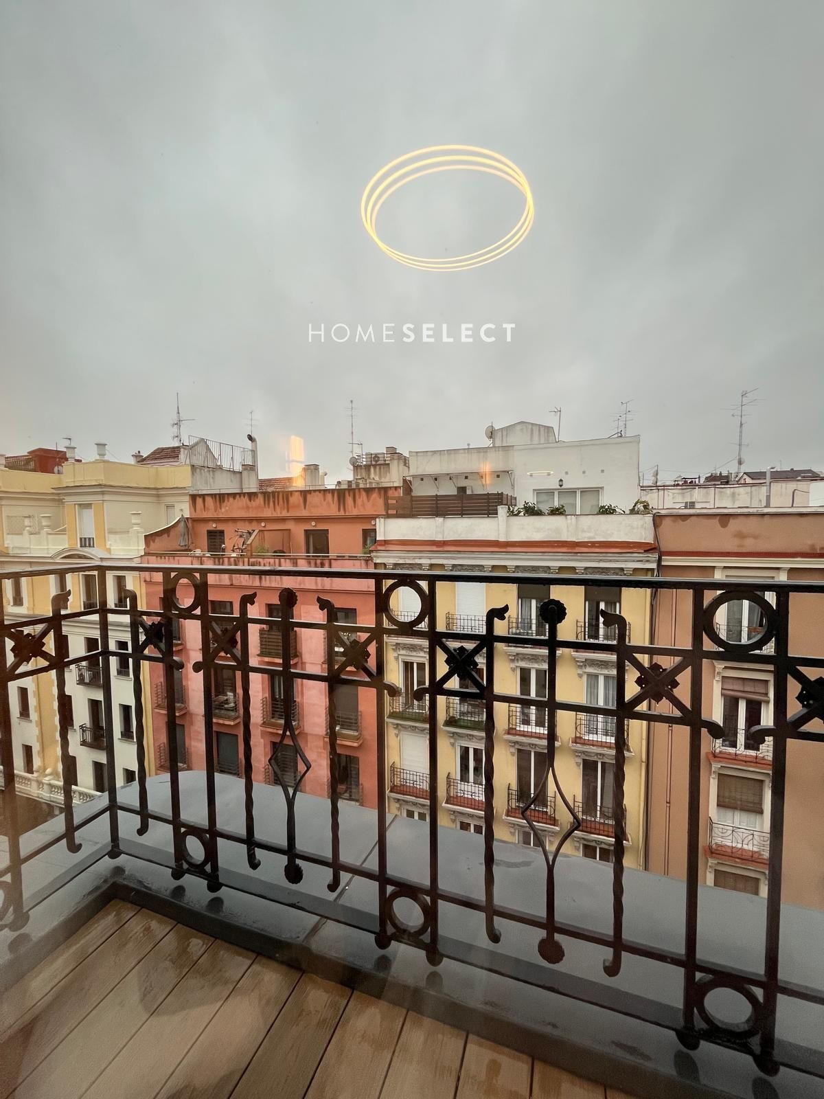 Home Select vende precioso ático en edificio clásico de la calle Jorge Juan. La vivienda ocupa la 6ª planta de un bonito edificio de estilo afrancesado que data de 1910. Cuenta con una terraza de unos 14 m2 con orientaciòn sur que da acceso a la zona social.