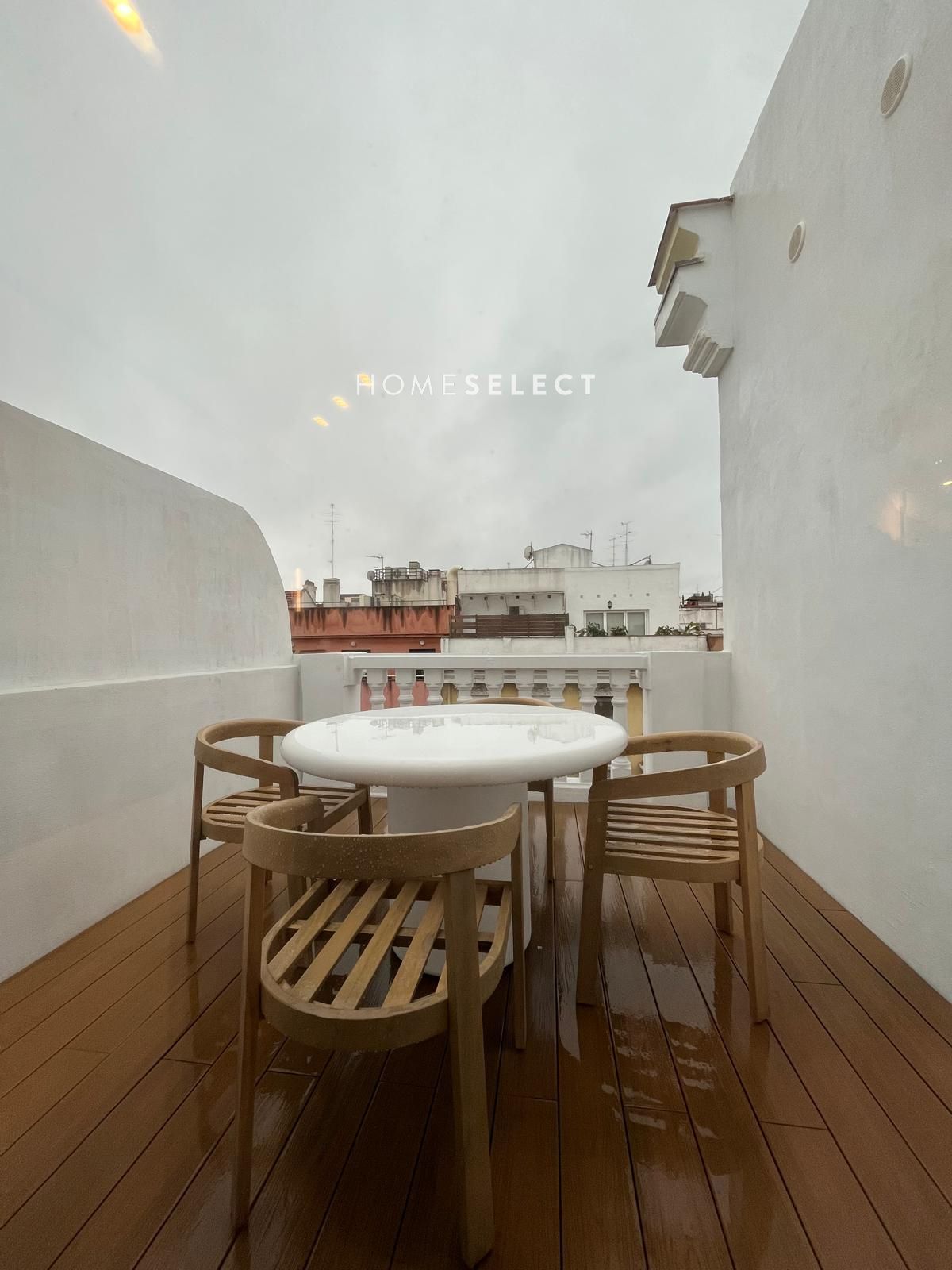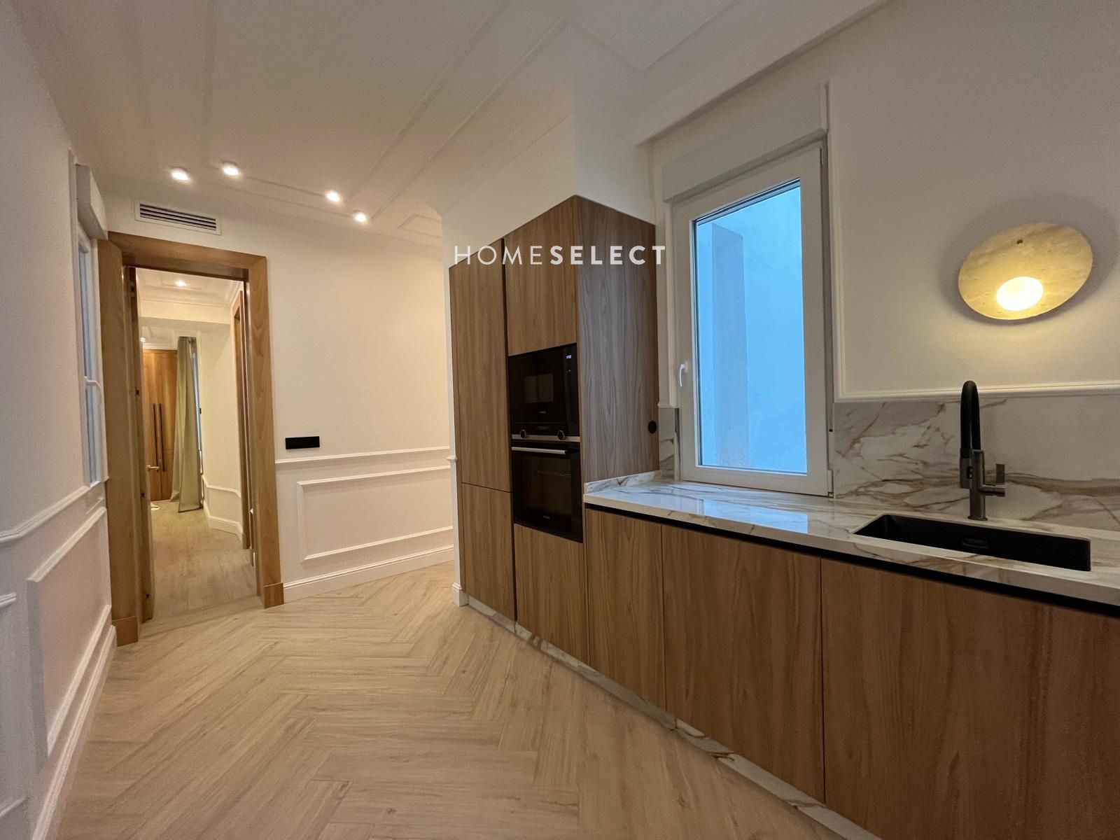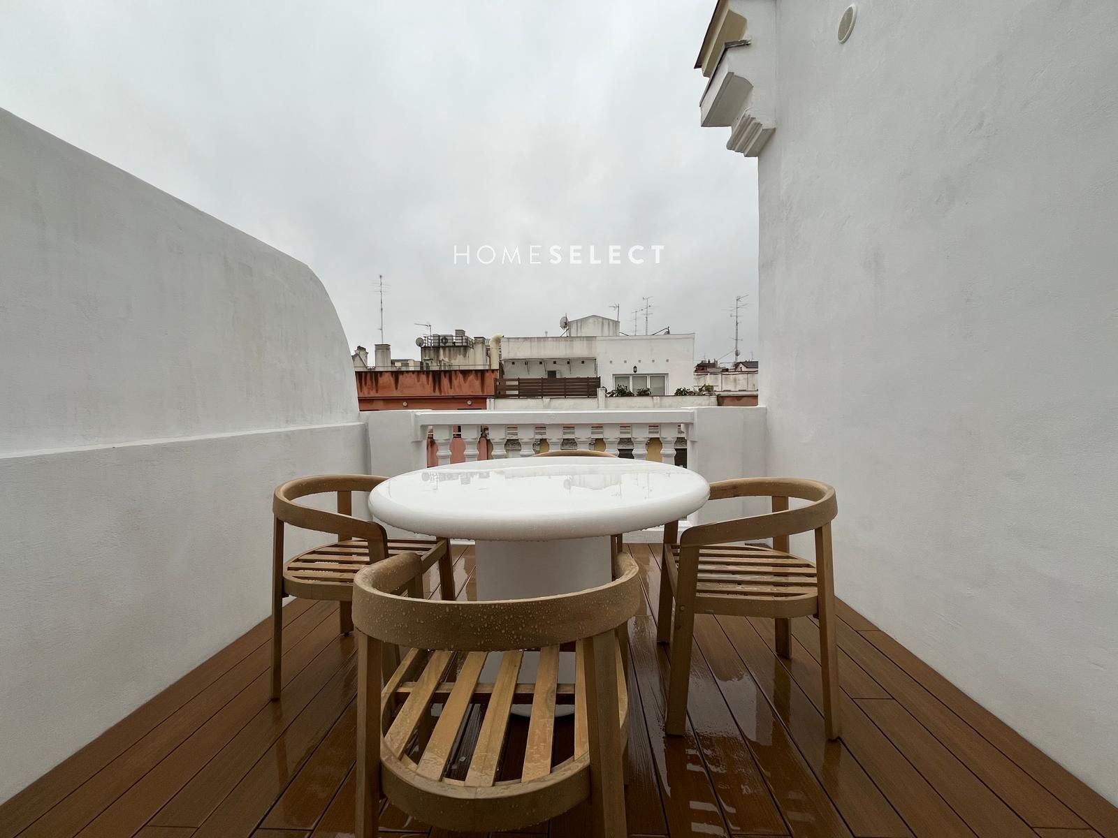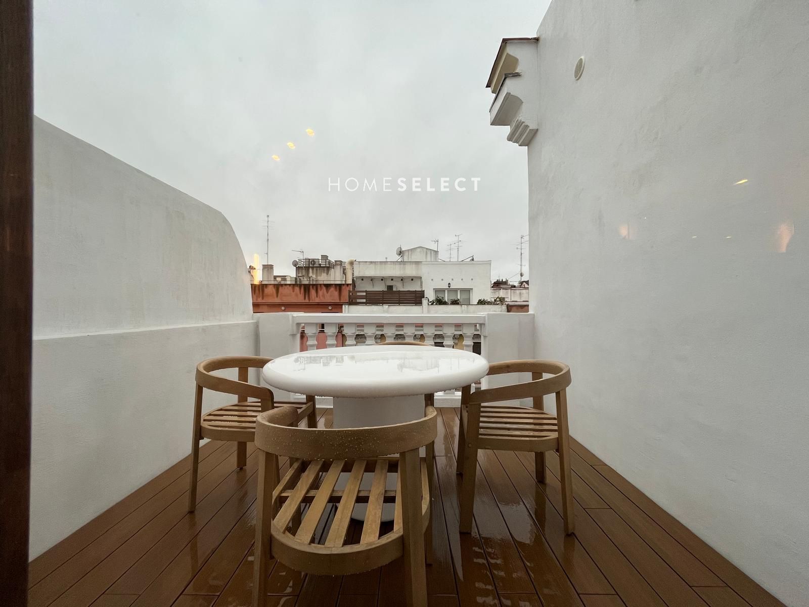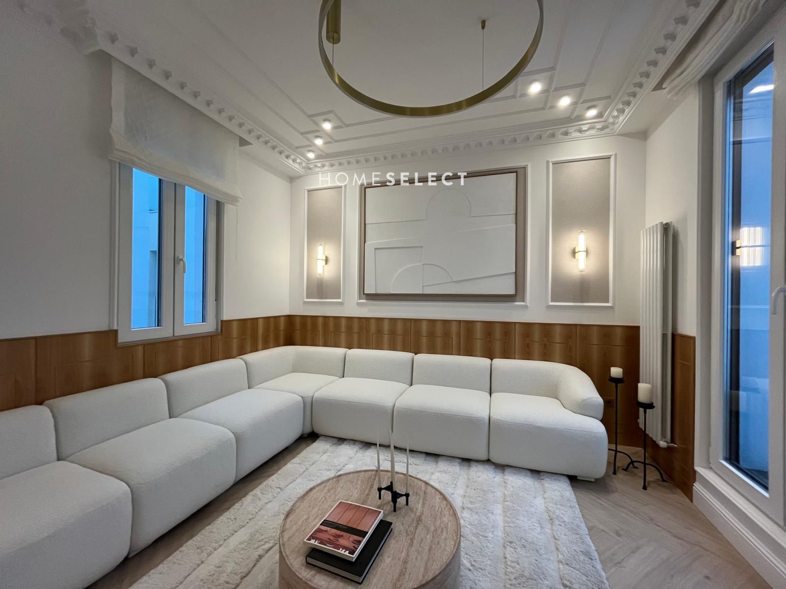 Home Select vende precioso ático en edificio clásico de la calle Jorge Juan. La vivienda ocupa la 6ª planta de un bonito edificio de estilo afrancesado que data de 1910. Cuenta con una terraza de unos 14 m2 con orientaciòn sur que da acceso a la zona social.