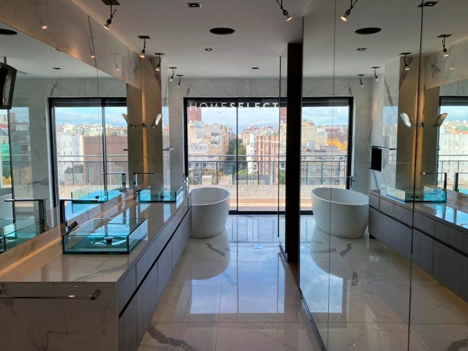 Con una superficie total de 481 m², de los cuales 390 m² corresponden a vivienda y 90 m² a una espectacular terraza. Se vende reformada a estrenar, con un proyecto cuidado al detalle. Incluye además dos plazas de garaje y dos trasteros, un valor añadido difícil de encontrar en la zona.