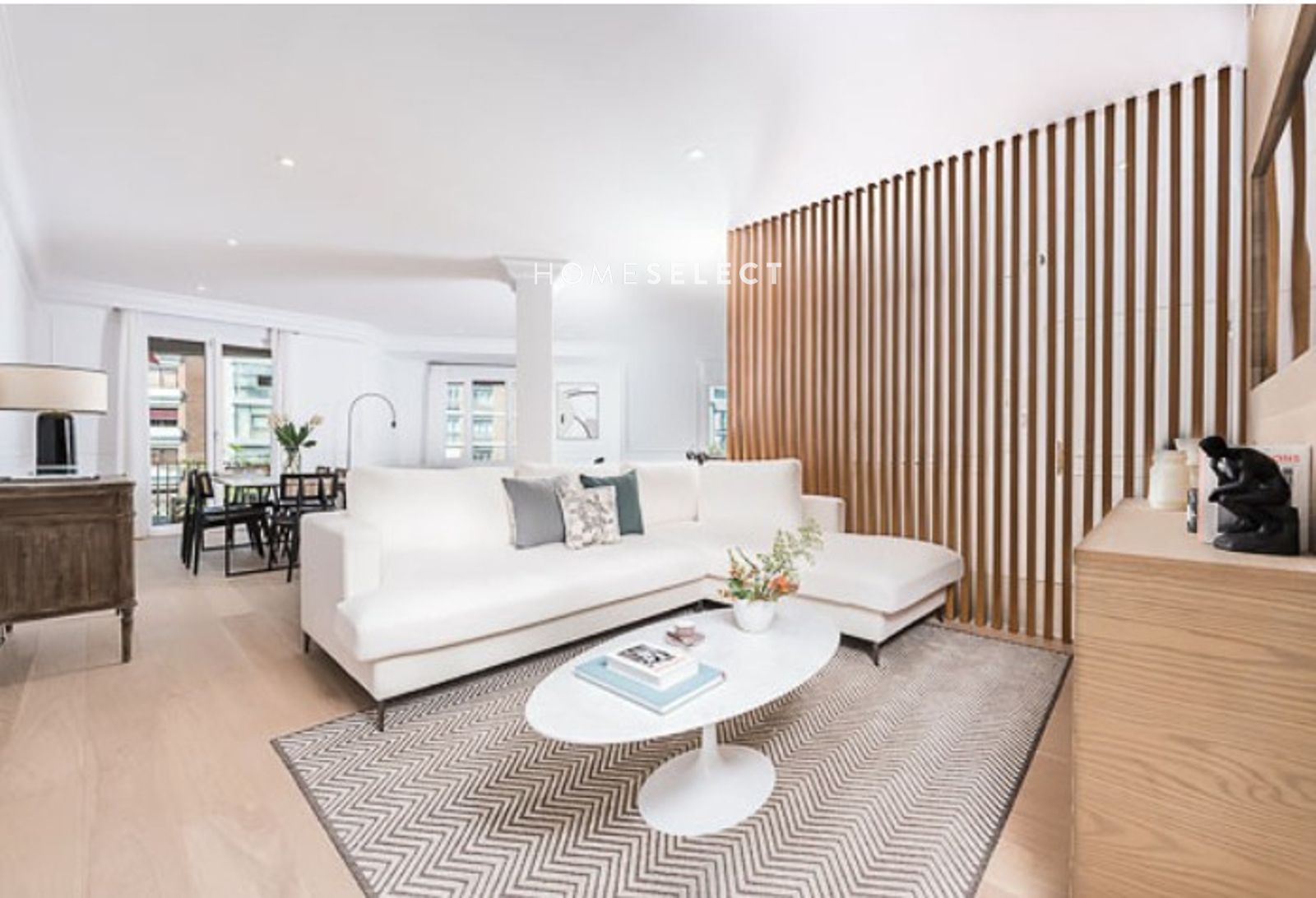 La zona principal se presenta en un elegante concepto abierto que integra salón y comedor, creando un ambiente moderno, acogedor y funcional, ideal tanto para la vida diaria como para recibir invitados. Cada detalle ha sido cuidadosamente seleccionado para aportar distinción y armonía.