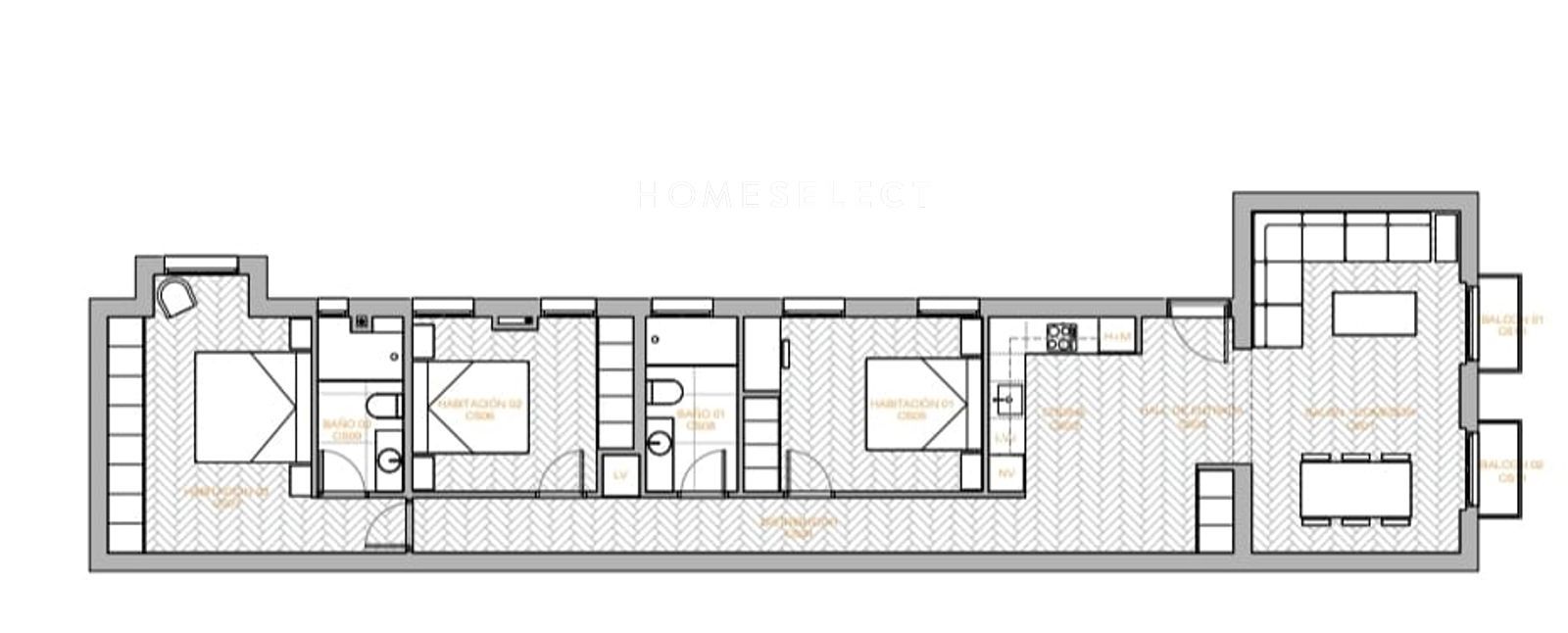 Home Select vende esta vivienda situada en la cuarta planta exterior de un edificio en el Barrio de Salamanca. La propiedad se encuentra actualmente en proceso de reforma integral y se entregará reformada a estrenar, destacando por su luminosidad y sus dos balcones orientados a la calle.