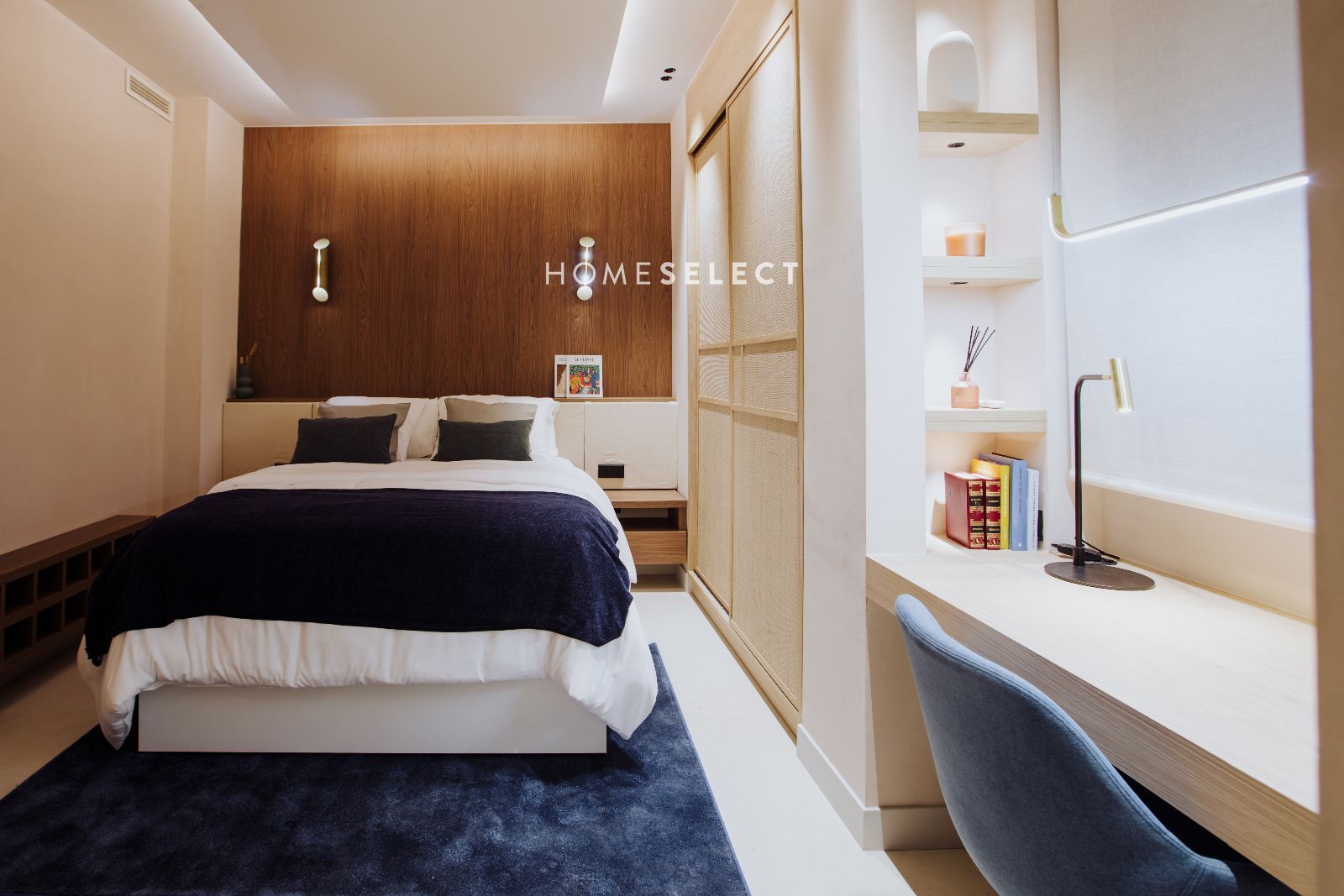 Home Select vende exclusiva vivienda ubicada en el prestigioso Barrio de Salamanca, en la codiciada zona de Recoletos, a escasos metros de la Plaza del Marqués de Salamanca. Situada en un elegante edificio de 1934 de ladrillo visto, la finca destaca por su representativo portal y servicio de conserjería.