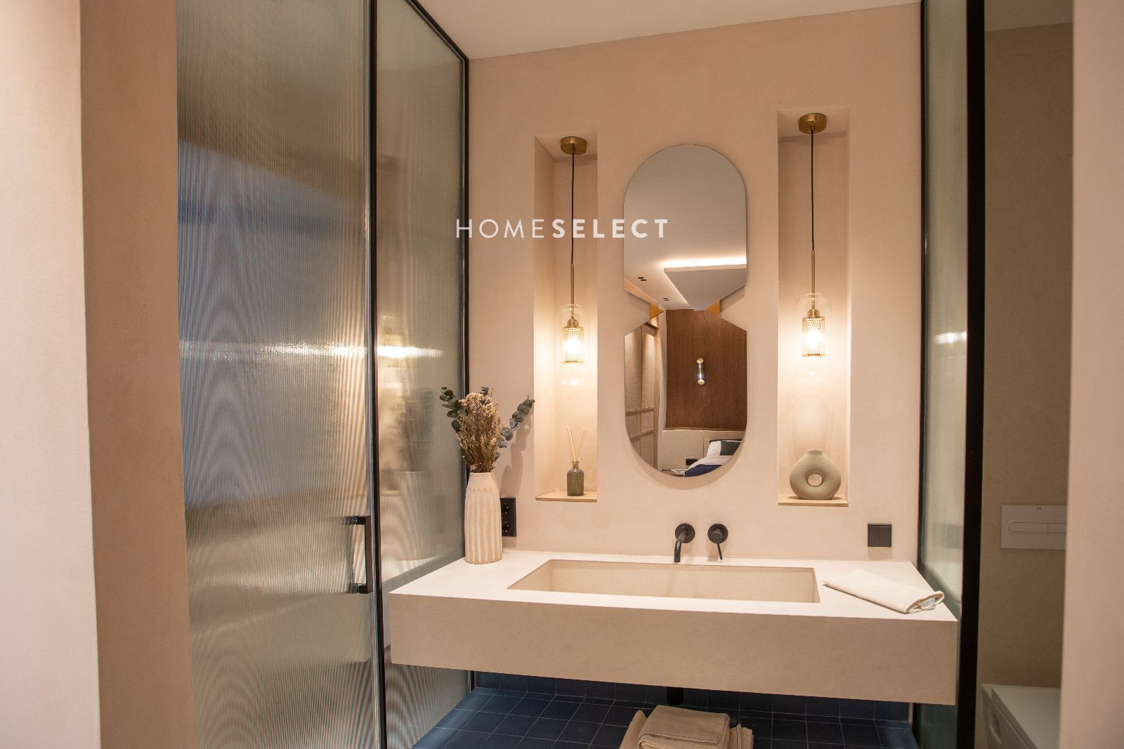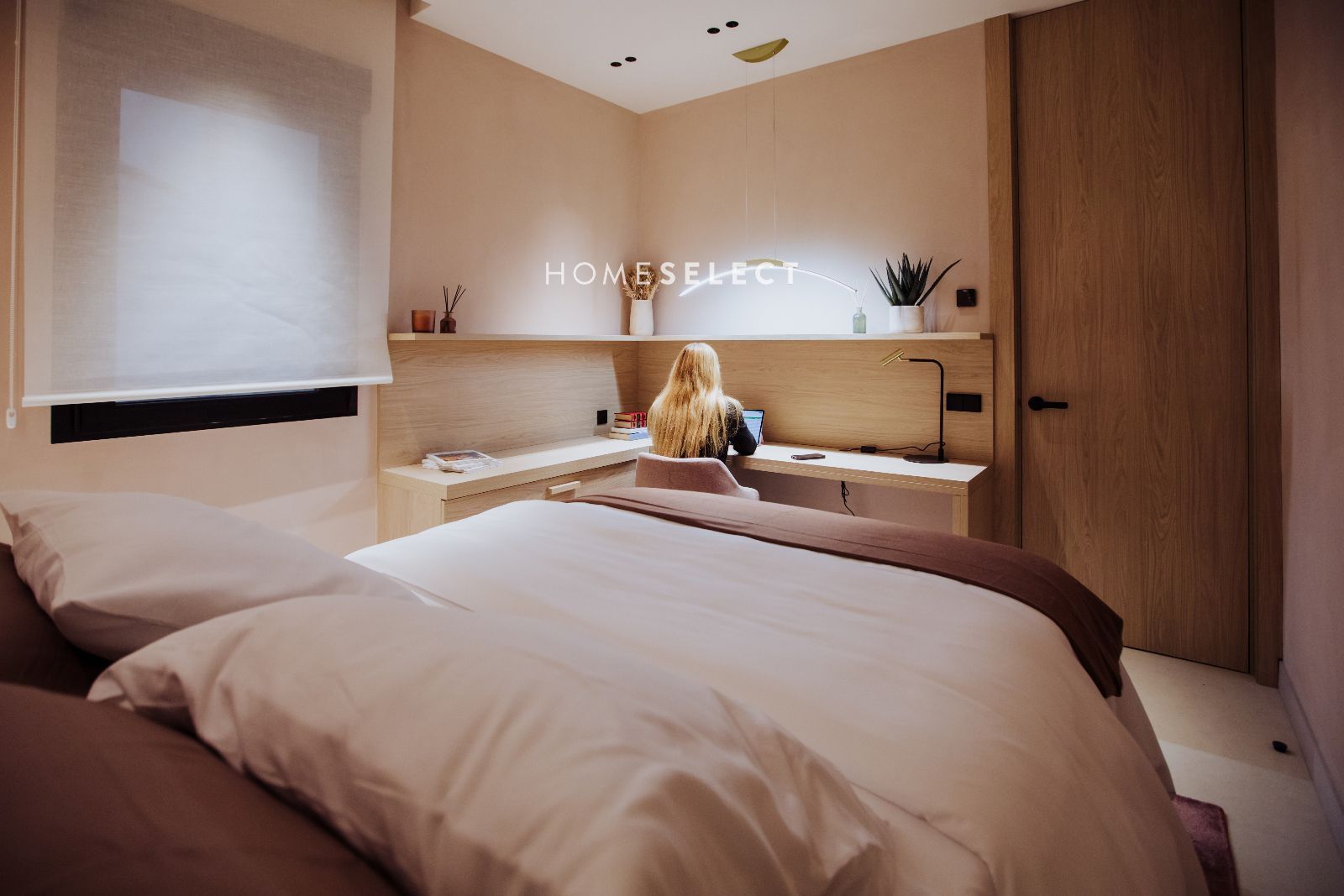 En cuanto a calidades, la vivienda cuenta con un sistema de calefacción centralizada mediante radiadores de la firma IRSAP, diseñados a medida, con acabados en efecto microcemento en las piezas vistas y en negro brillo en los radiadores ocultos. Además, dispone de climatización por conductos con dos máquinas independientes de Mitsubishi, zonificada por estancias mediante termostatos digitales, lo que permite un control óptimo del confort en toda la vivienda.
