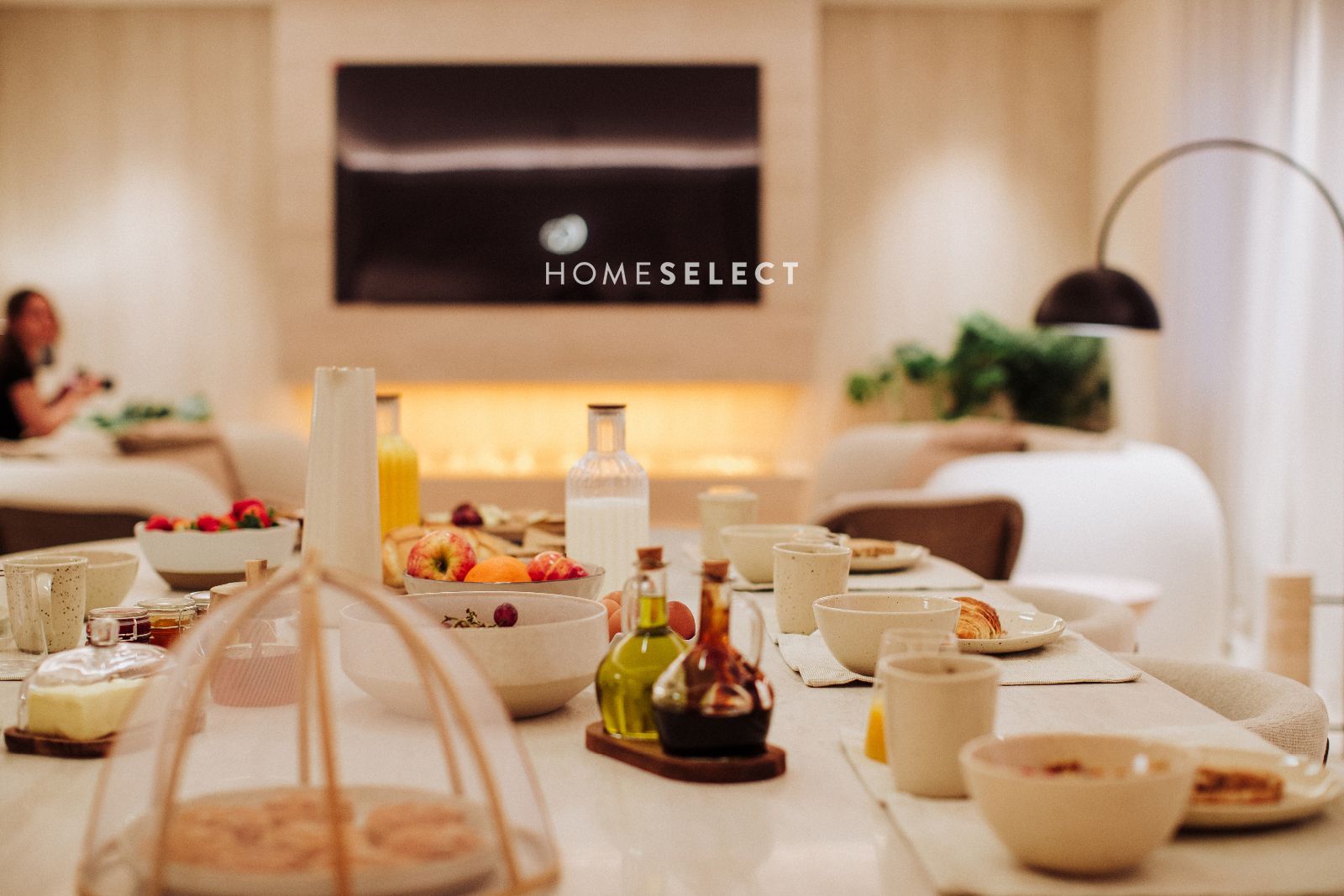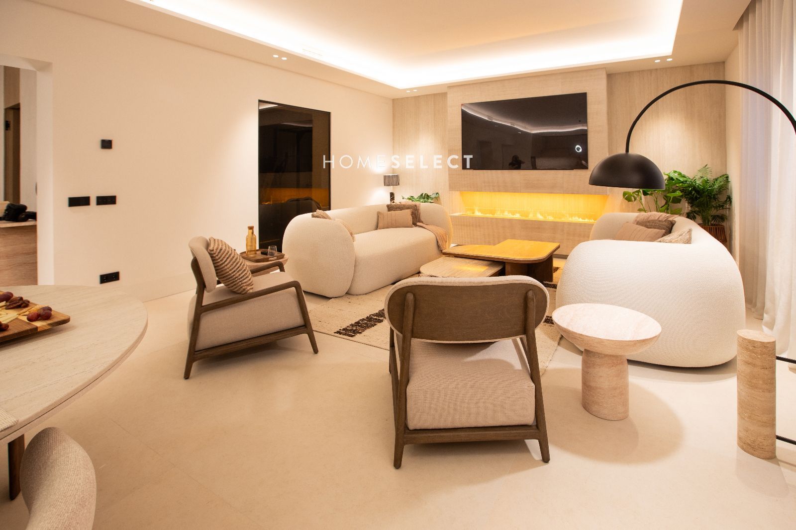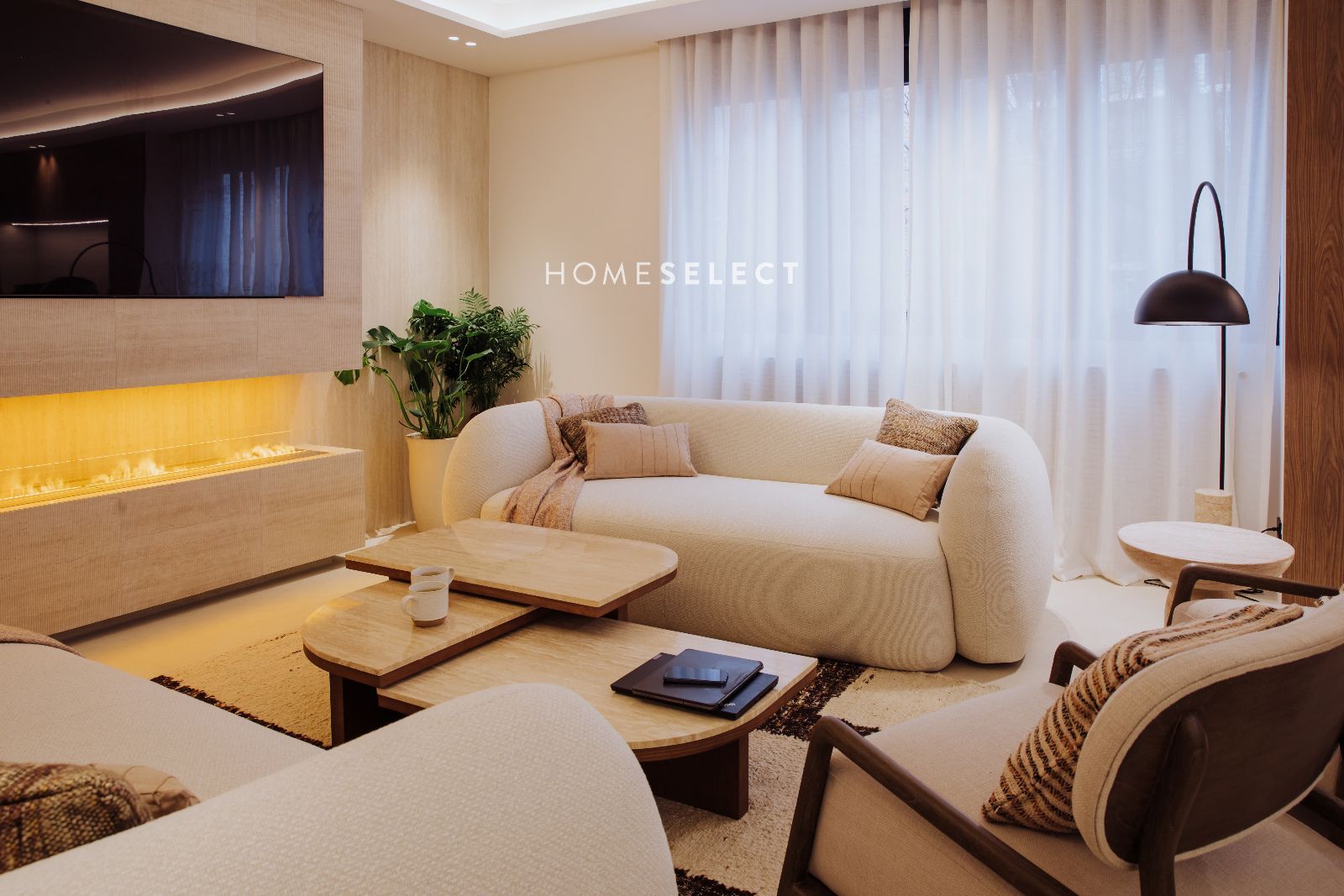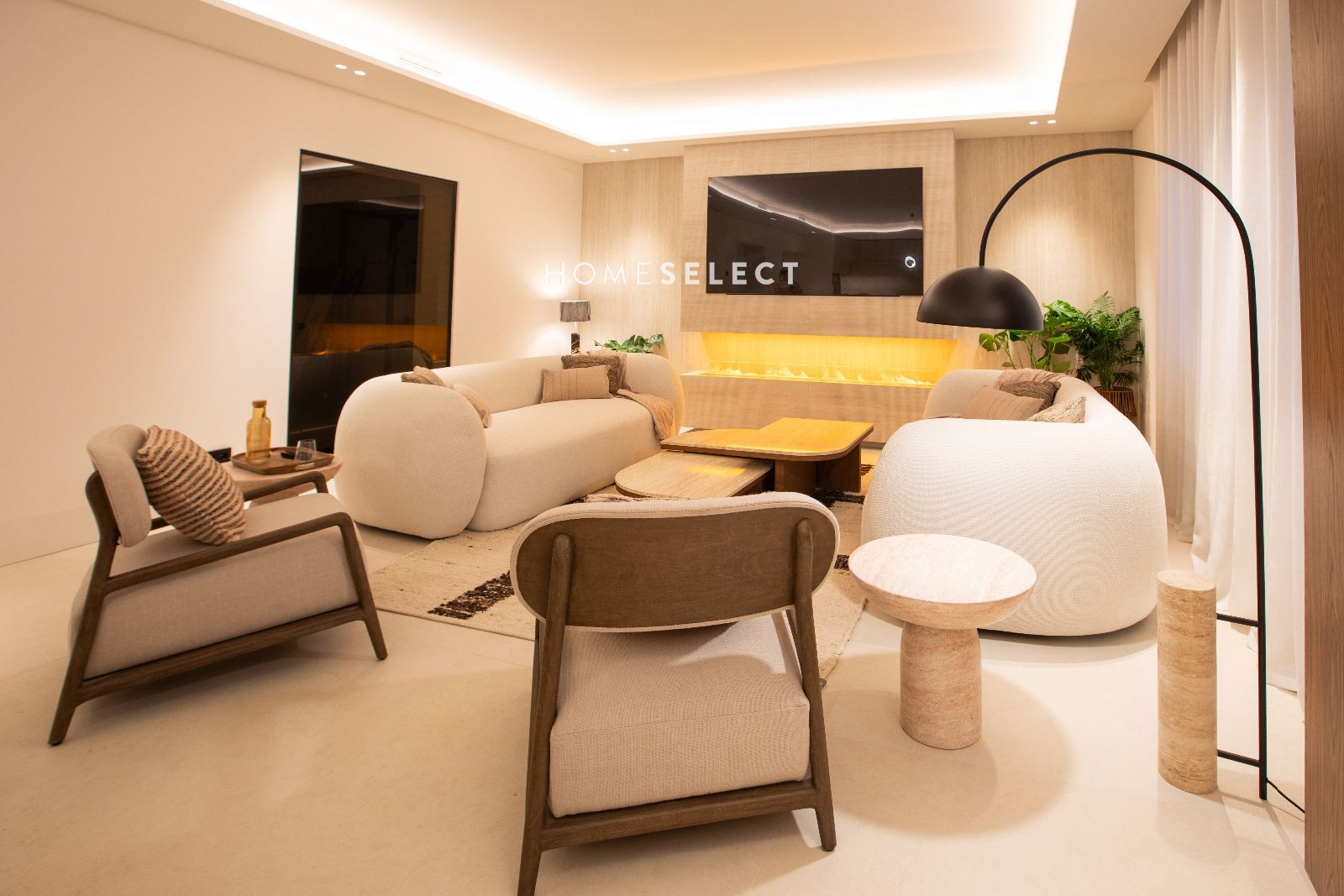 La zona de día se compone de un amplio hall de entrada que da paso a un espectacular salón exterior con una acogedora chimenea de vapor de agua de 2 metros, junto con el comedor y cocina abierta equipada con todos los electrodomésticos, todo ello con vistas a la calle, creando un espacio moderno, luminoso y perfecto para el día a día.