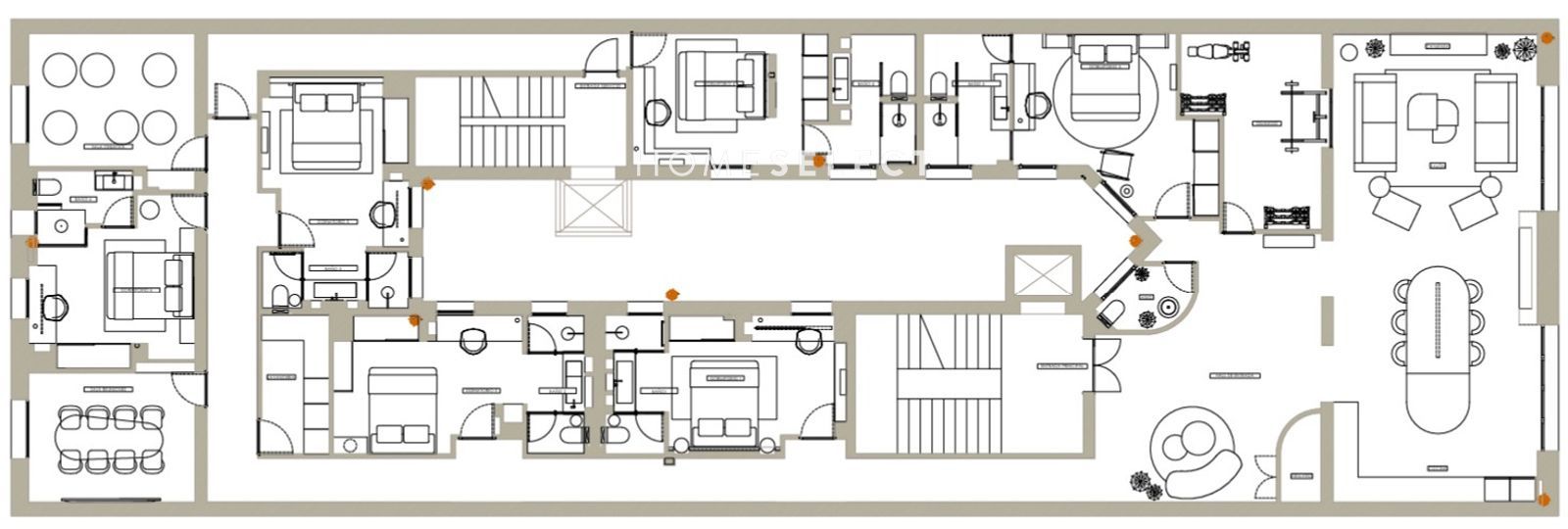 La vivienda dispone de seis dormitorios y seis baños, además de un aseo de cortesía, garantizando comodidad y privacidad para todos sus ocupantes. Completa la distribución una serie de espacios diferenciales como gimnasio privado, sala de reuniones, sala creativa y zona de lavandería.