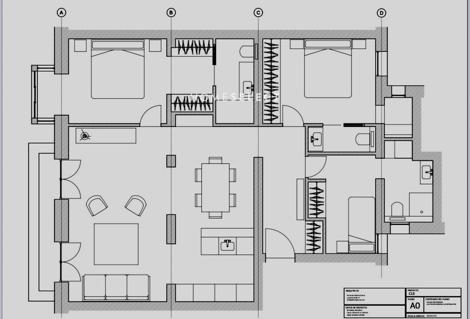 Se distribuye de la siguiente manera: salón comedor exterior con tres balcones a la calle. Junto al comedor, la cocina, de concepto abierto que está totalmente equipada con electrodomésticos modernos, encimeras elegantes y amplio espacio de almacenamiento, ideal tanto para desayunos rápidos como para comidas más elaboradas. La zona de noche se compone de tres dormitorios y tres cuartos de baños. Los dormitorios destacan por su diseño sencillo y acogedor. La iluminación cálida y los tonos neutros generan un ambiente relajante, mientras que el mobiliario funcional garantiza comodidad. Los baños están equipados con duchas de lluvia a ras de suelo, accesorios contemporáneos y acabados de alta gama, proporcionando un espacio elegante y funcional.