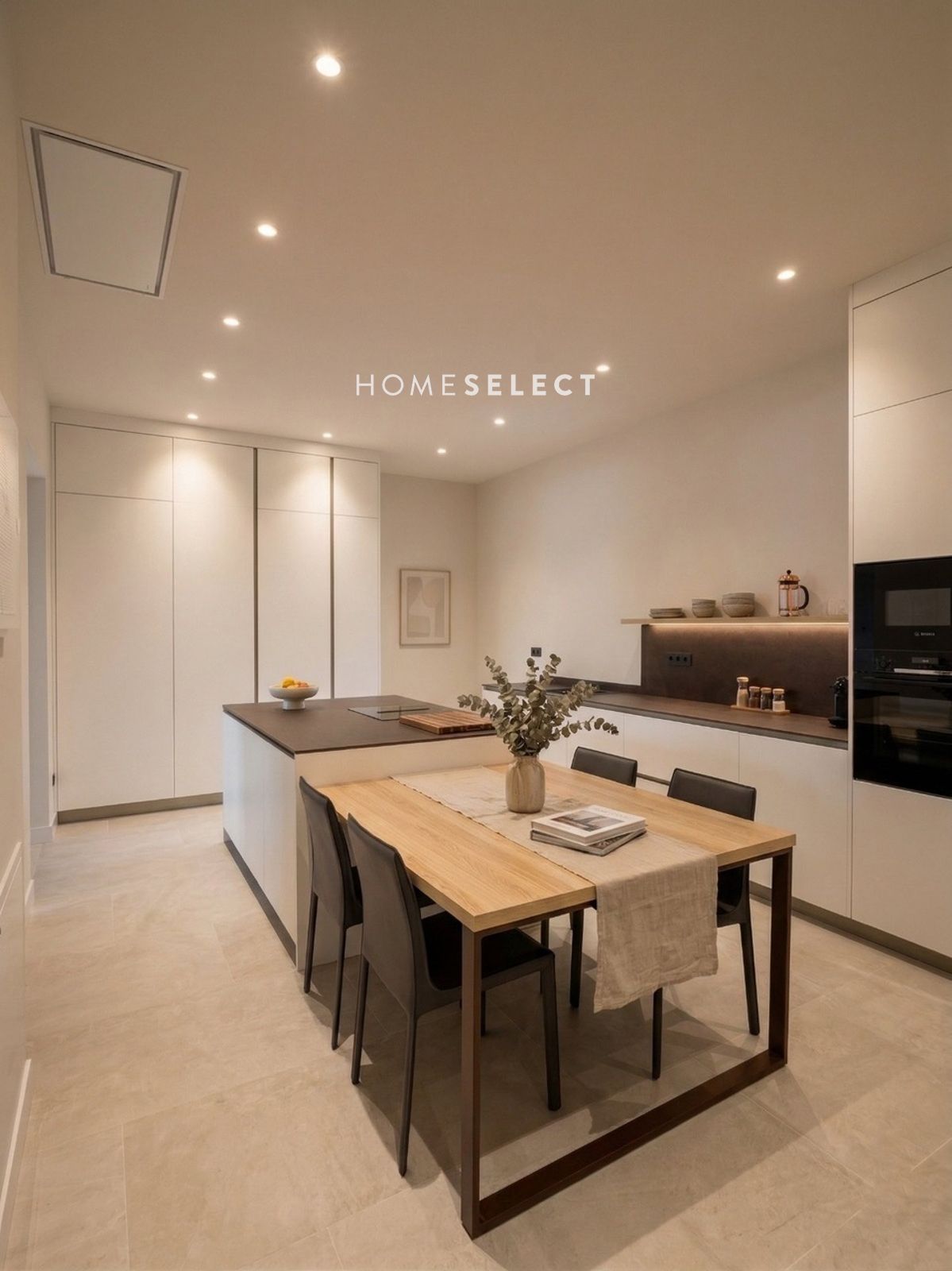 Se distribuye en un amplio salón-comedor con gran entrada de luz natural. La cocina es semi-independiente y cuenta con isla central, equipada con altas calidades. El programa de esta área se completa con un cuarto de lavandería independiente, optimizando la organización del hogar.