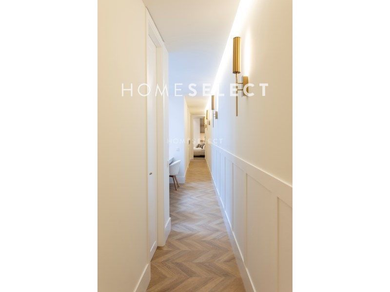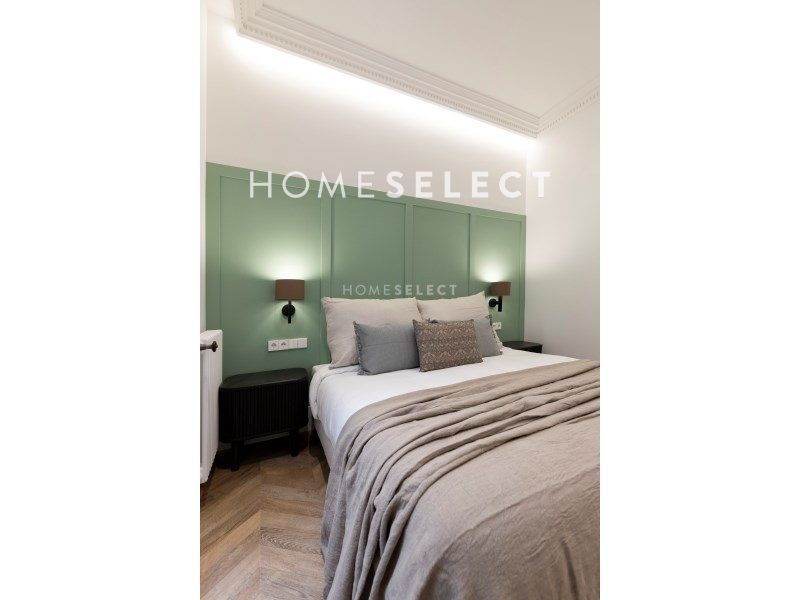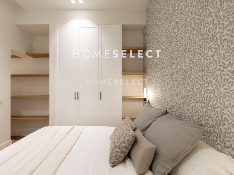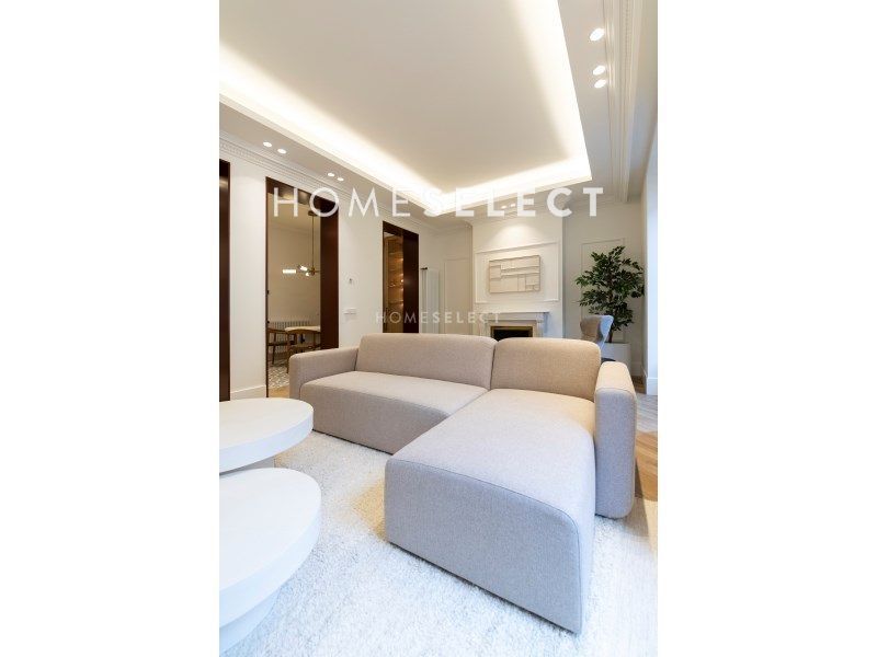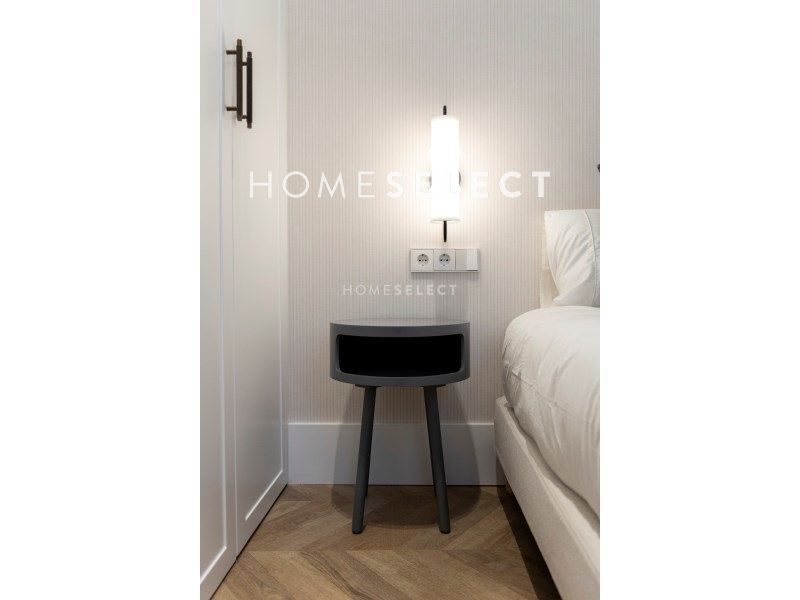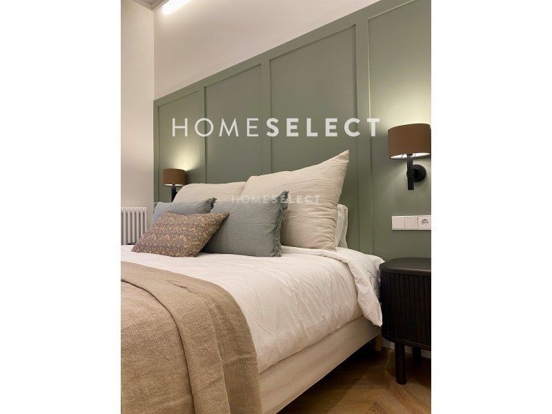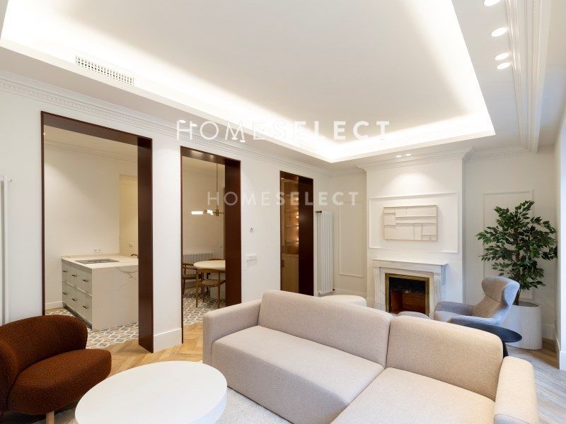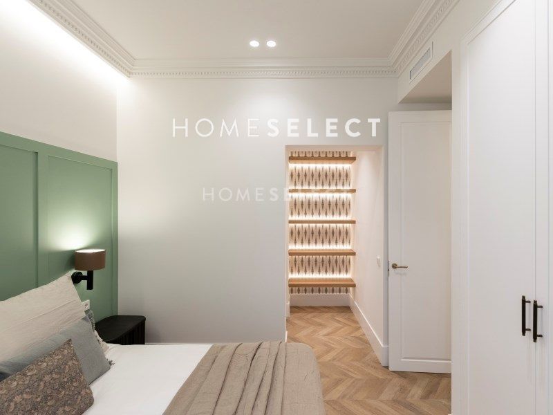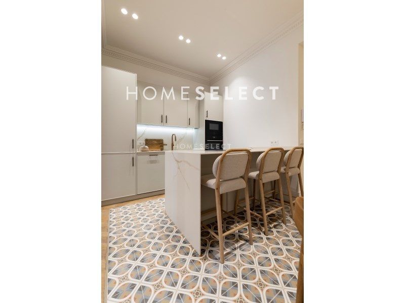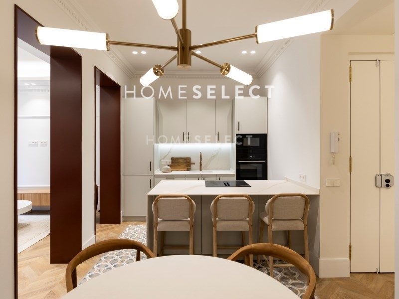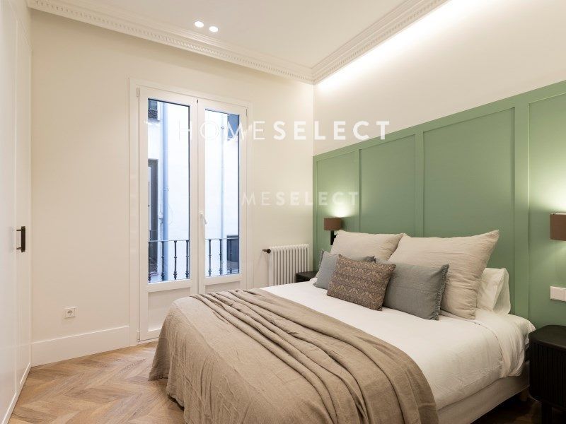 La vivienda ha sido objeto de una profunda reforma conservando su encanto original en sus techo de 3,15 metros, sus zócalos y molduras de escayola, su suelo en madera de roble en espiga y sus balcones en hierro forjado. Además, la vivienda se ha dotado de las mejores calidades como aire acondicionado regulable por zonas, calefacción individual por gas natural con radiadores de diseño, electrodomésticos Bosch, grifería en color cobre envejecido, suelo hidraúlico en la zona de comedor y cocina, mamparas de ducha hasta el techo, puertas plafonadas y lacadas de gran formato,...