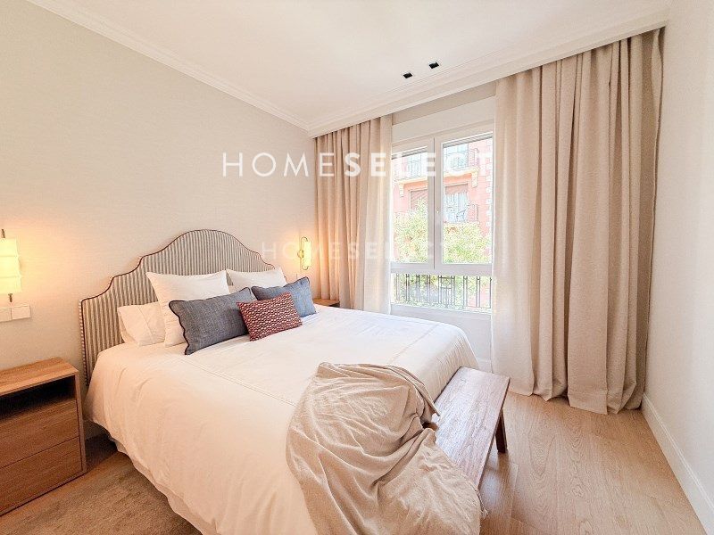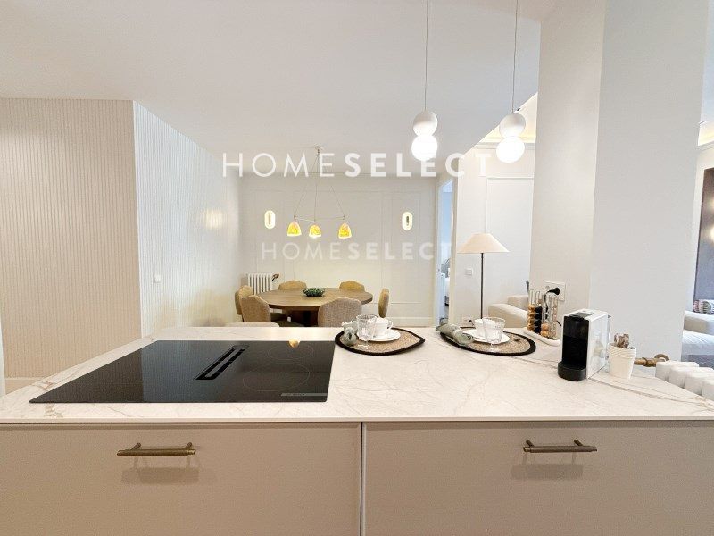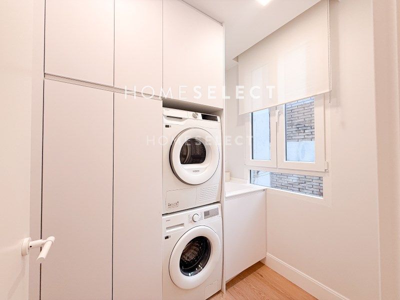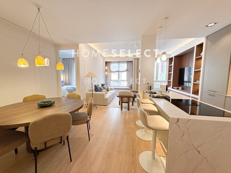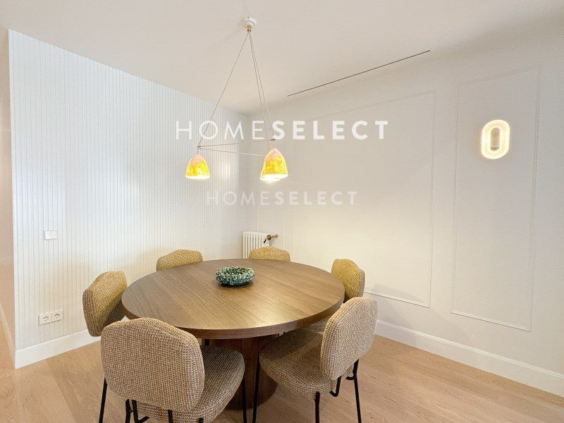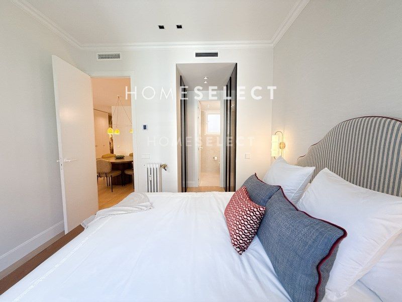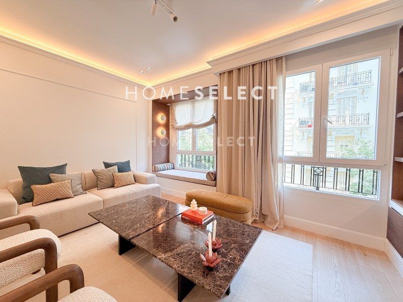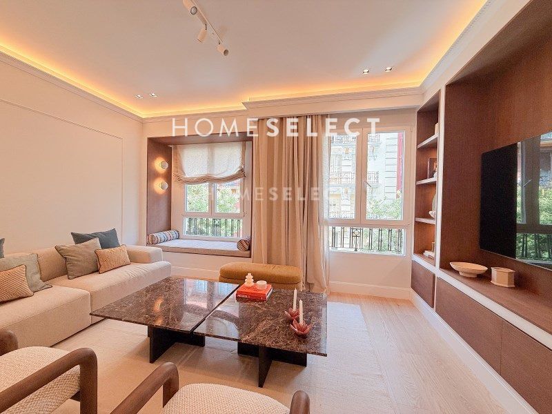 Esta vivienda reformada combina el encanto de la arquitectura clásica con una distribución moderna y funcional, pensada para ofrecer el máximo confort. Al acceder por una elegante puerta principal, nos recibe un amplio vestíbulo que da paso a la zona social: un espacio diáfano y luminoso donde se integran la cocina, el comedor y el salón, con dos grandes ventanales orientados a la calle Ayala que inundan de luz natural toda la estancia. Junto a esta área se encuentra la suite principal, una estancia de gran amplitud con techos altos, molduras originales, vestidor y baño privado. De regreso por el pasillo, encontramos una segunda habitación doble, también con vestidor y baño en suite, ideal para invitados o familia. La vivienda se completa con un aseo de cortesía y una práctica zona de lavandería independiente. Una propiedad elegante, cómoda y lista para entrar a vivir, ubicada en una de las zonas más cotizadas de Madrid.