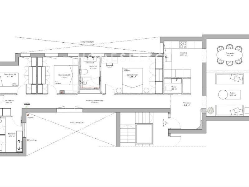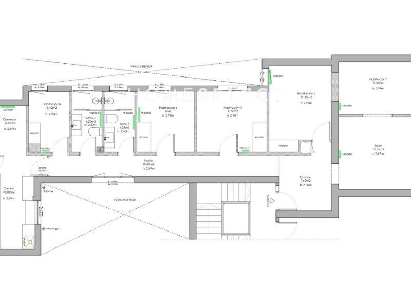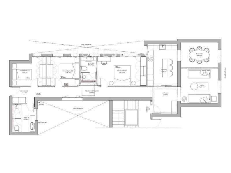 La vivienda, situada en una preciosa finca clásica con portal amplio y accesible, destaca por sus techos de tres metros, orientación sureste y fachada exterior que aporta luminosidad durante todo el día. Sus estancias, abiertas a la fachada principal y a dos patios interiores, ofrecen amplitud y confort, mientras que la visibilidad desde la intersección realza su exclusividad.