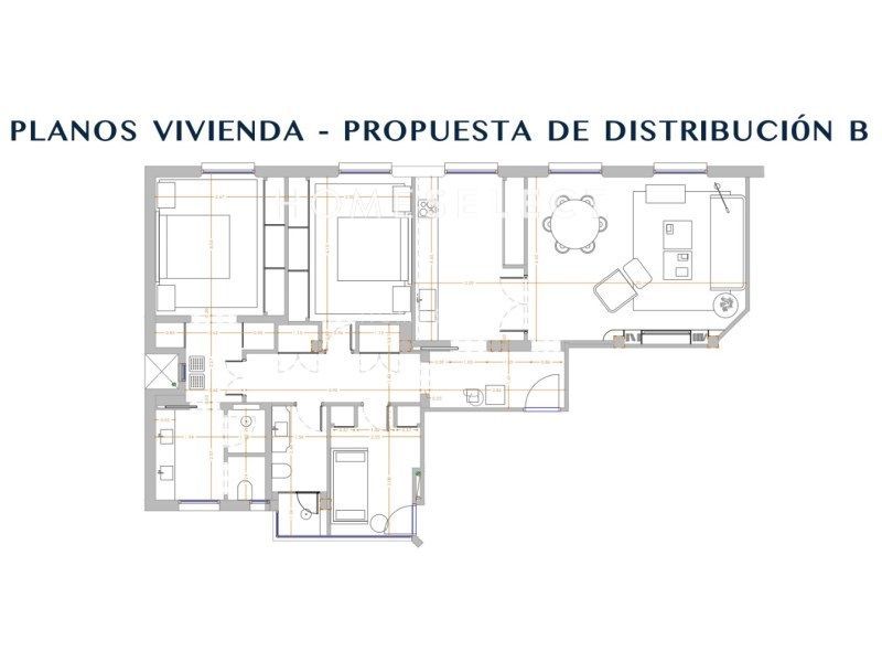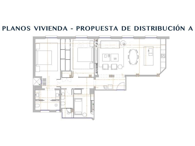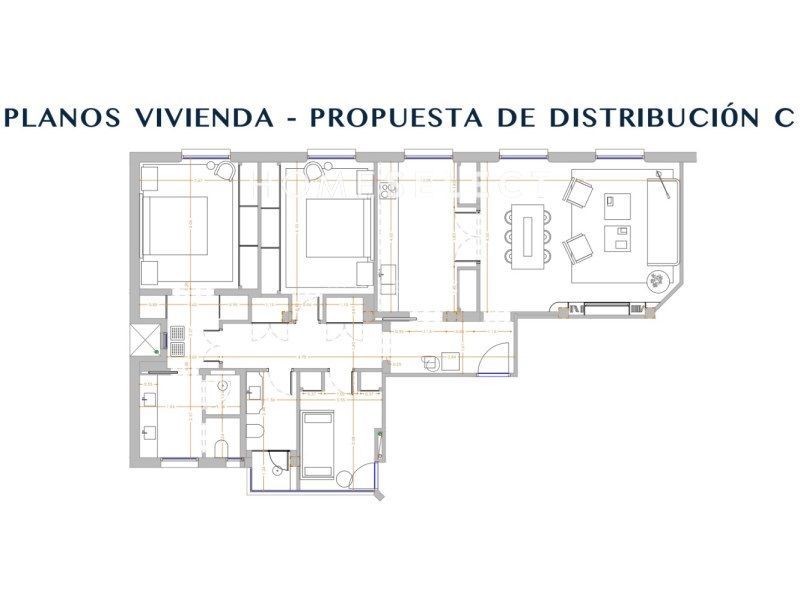 Se trata de una vivienda con una superficie de 165m2 construidos. Actualmente se encuentra en estado de demolición, y se entregará una vez finalizada la reforma para que el futuro comprador, entre con todo a estrenar. Hay tres propuestas de distribución, aunque todas contemplan un gran salón comedor, con la cocina al lado, bien integrada o bien independizada y una zona de noche de tres dormitorios y dos baños.