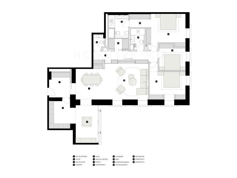 La zona privada se organiza en torno a un pasillo y un distribuidor secundario que conducen a los tres dormitorios. El dormitorio principal destaca por su amplitud y privacidad, e incluye un espacioso vestidor y un elegante baño en suite. Los dormitorios 2 (y 3 comparten un segundo baño completo y disfrutan de excelente luz natural gracias a su orientación exterior.