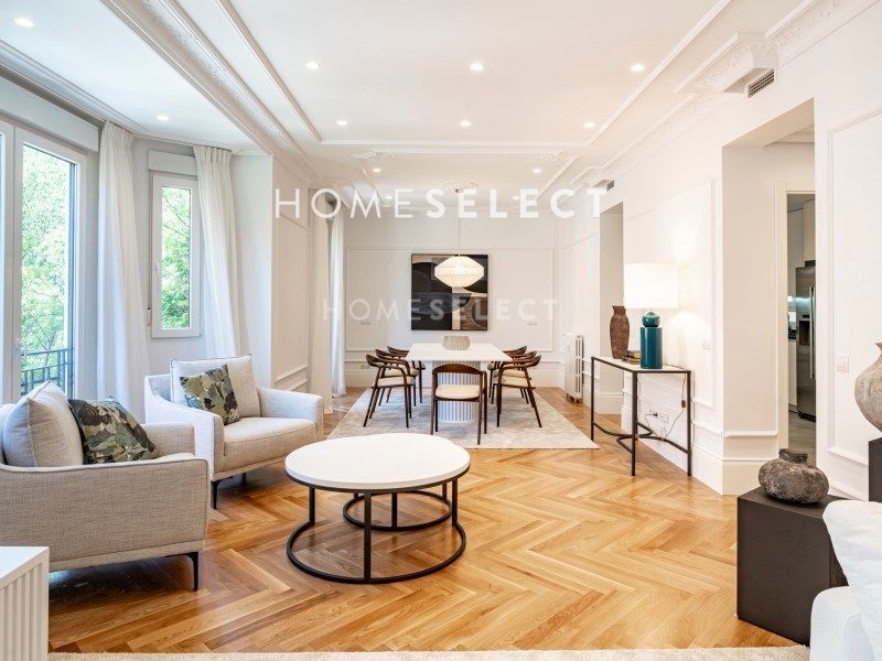Home Select vende vivienda ubicada en Barrio de Salamanca - Castellana, una de las zonas más exclusivas y demandadas de Madrid, esta vivienda reformada de 138 m² construidos se sitúa en la tercera planta de un edificio representativo de la Calle Castelló, a escasos metros de la emblemática Plaza del Marqués de Salamanca.