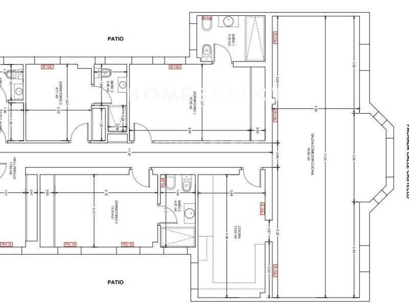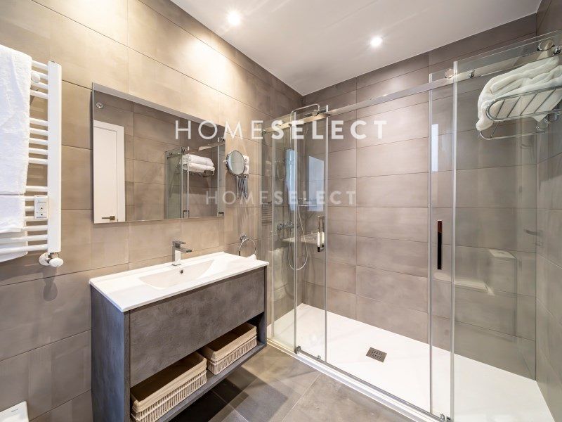La distribución, se articula en torno a un amplio salón-comedor con cocina integrada, con casi 40 m² orientados a la calle Castelló, donde destacan tres grandes balcones que aportan luz natural y carácter representativo, ideal también como zona de espera o recepción en caso de uso profesional. La vivienda cuenta con una segunda cocina independiente, actualmente habilitada como espacio auxiliar. Dispone de cuatro dormitorios dobles, todos con baño en suite, lo que permite una excelente organización. Además, incorpora un total de cinco baños completos, optimizando la funcionalidad, privacidad y comodidad.