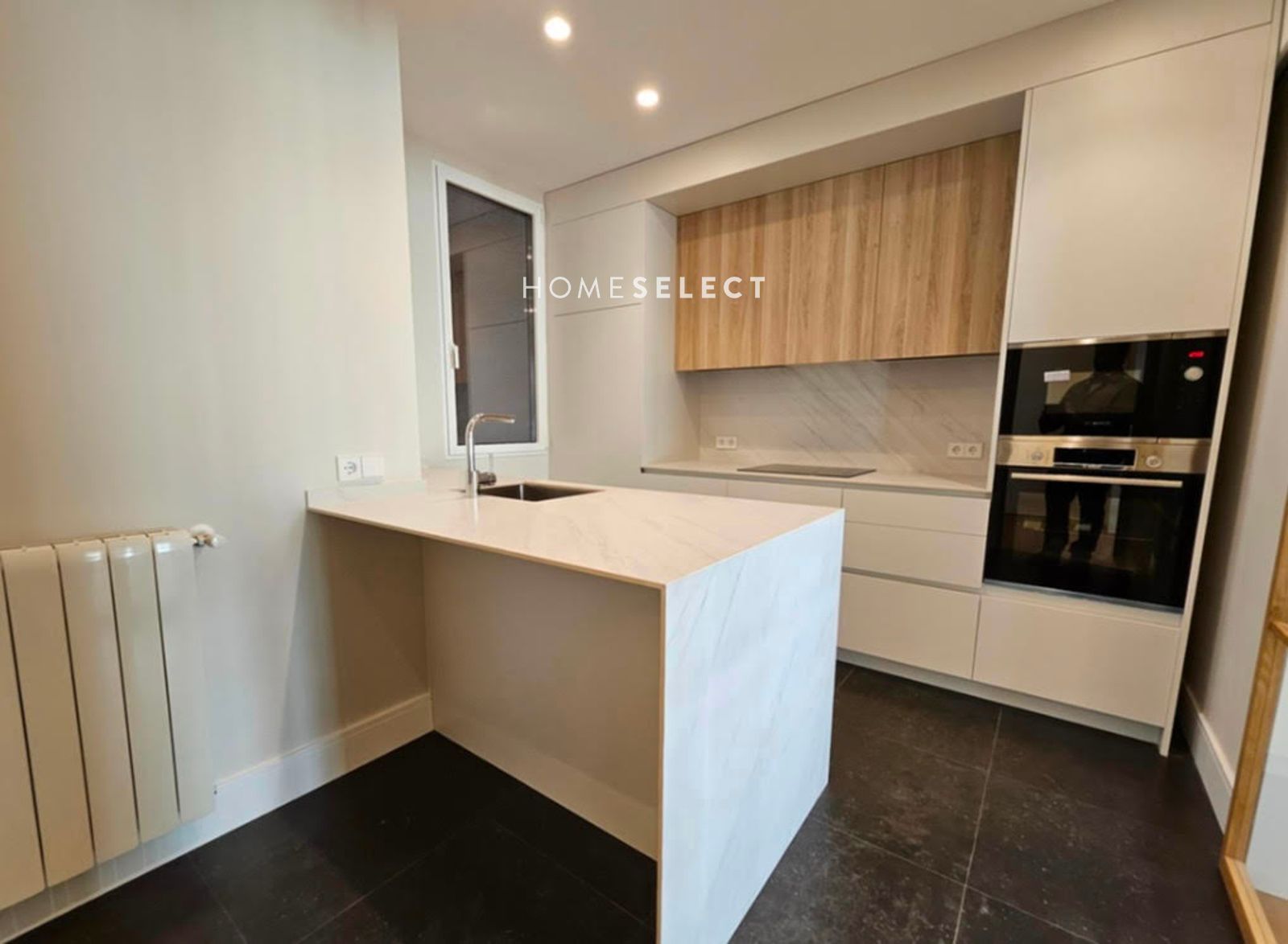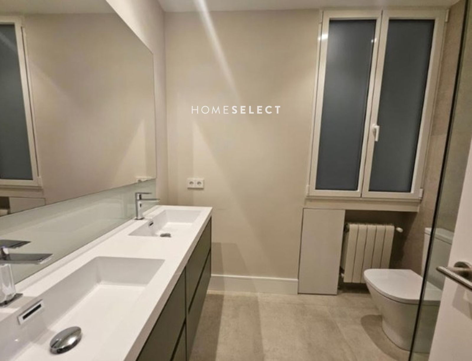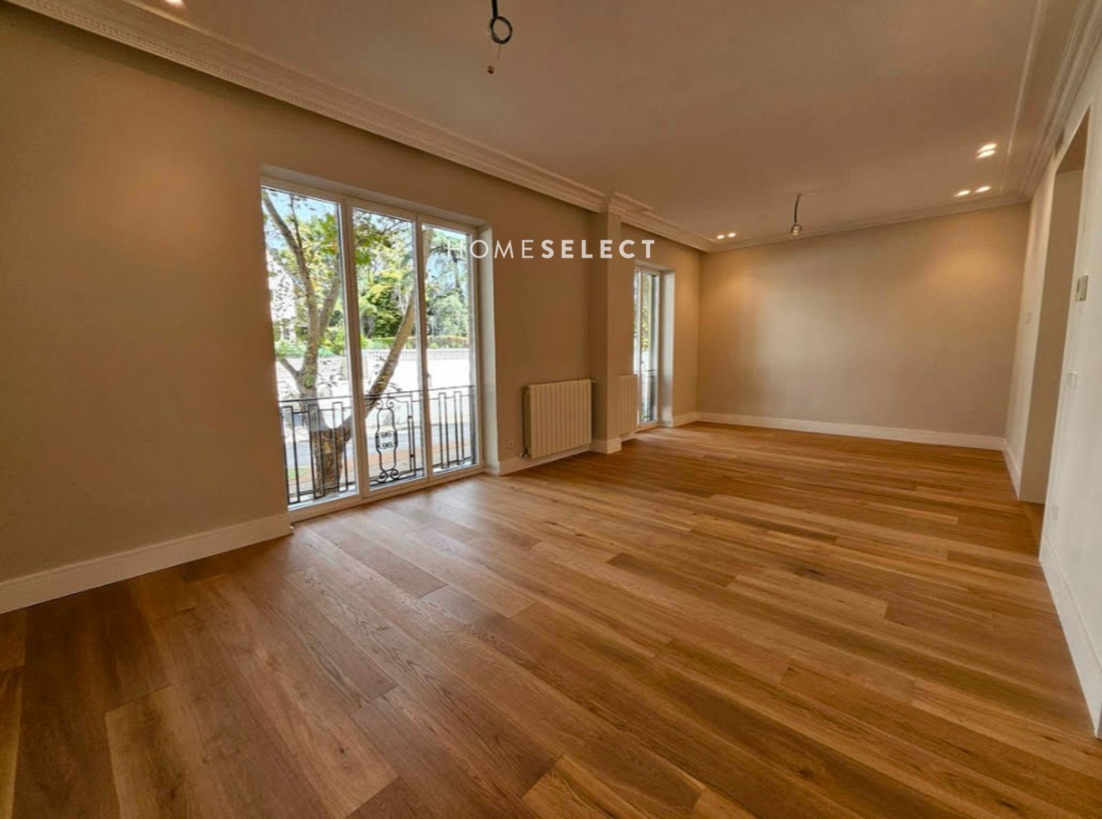 Home Select vende vivienda situada en la calle María de Molina, dentro del barrio de Salamanca, zona Castellana. Se encuentra en una primera planta exterior de un edificio representativo del entorno, con dos balcones que dan a la calle y permiten vistas despejadas.