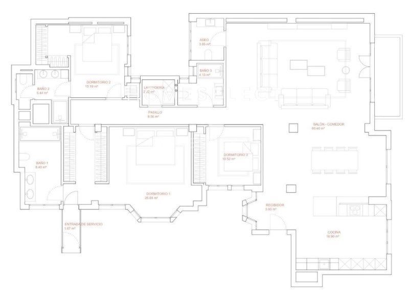 Home Select pone a la venta vivienda totalmente reformada y amueblada de aproximadamente 232 m2. esta vivienda ubicada el el prestigioso barrio del Retiro/Jerónimos. Este barrio es uno de los más emblemáticos de la ciudad de Madrid; a el pertenece el Parque del Buen Retiro, Museo del Prado y la cercanía al centro de la ciudad y los puntos de mayor interés. Jerónimos es un barrio que se caracteriza por ser un barrio residencial y tranquilo, con grandes fachadas.