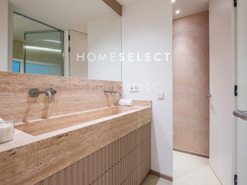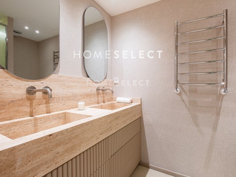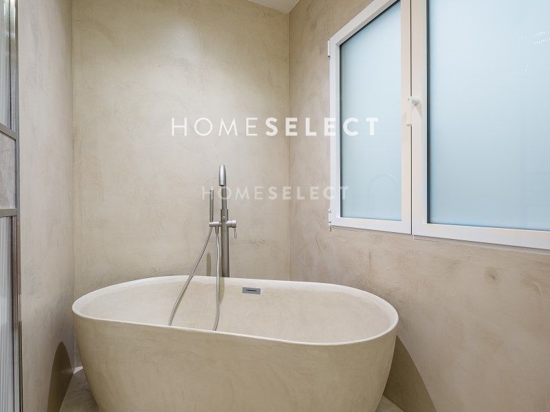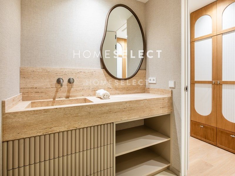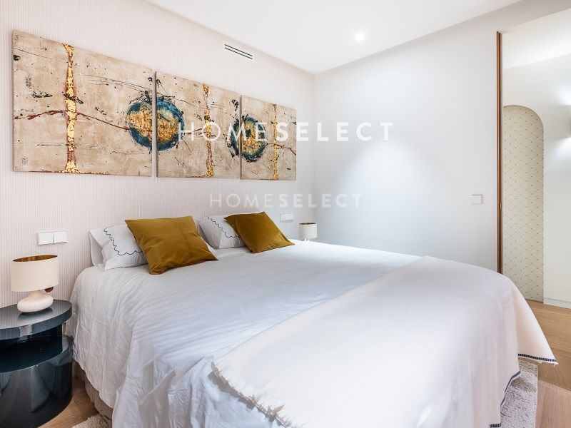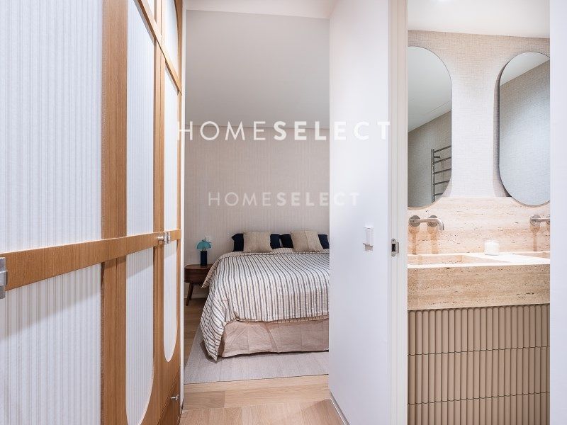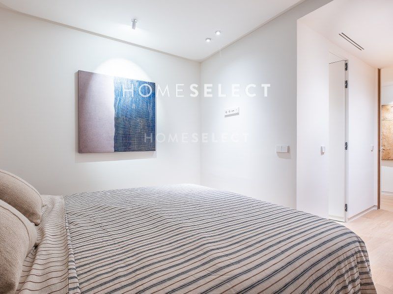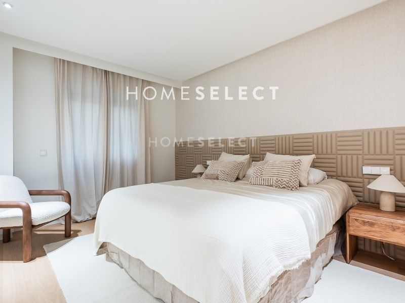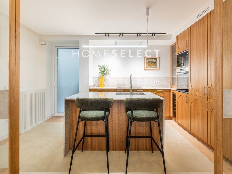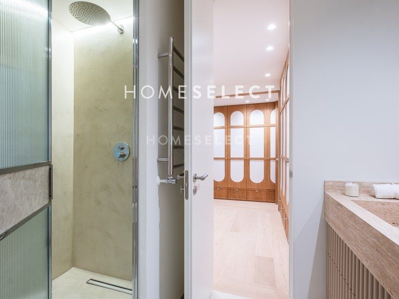 La vivienda, con una superficie de 194 m², ha sido completamente reformada por el reconocido arquitecto Juan Bengoa, quien ha logrado un equilibrio perfecto entre diseño contemporáneo y funcionalidad. Se han empleado materiales de la más alta calidad, como suelos de madera y microcemento, y la carpintería ha sido diseñada en exclusiva para esta propiedad. Además, las ventanas de perfil minimalista potencian la luminosidad y la sensación de amplitud.